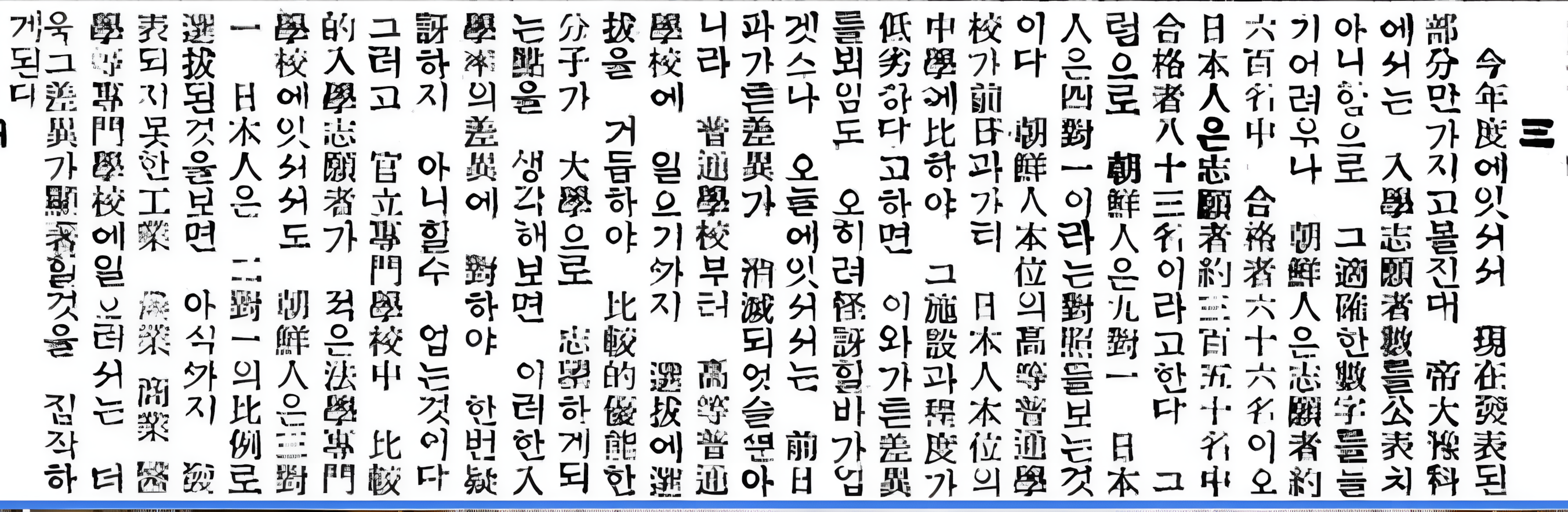 일제시대 20년대 중반이 넘어가면 조선에도 제국대학이 만들어지고 전문학교들이 설립되어 학생을 뽑기 시작했기 때문에 각종 신문에는 입학률에 대한 기사가 많이 나온다.