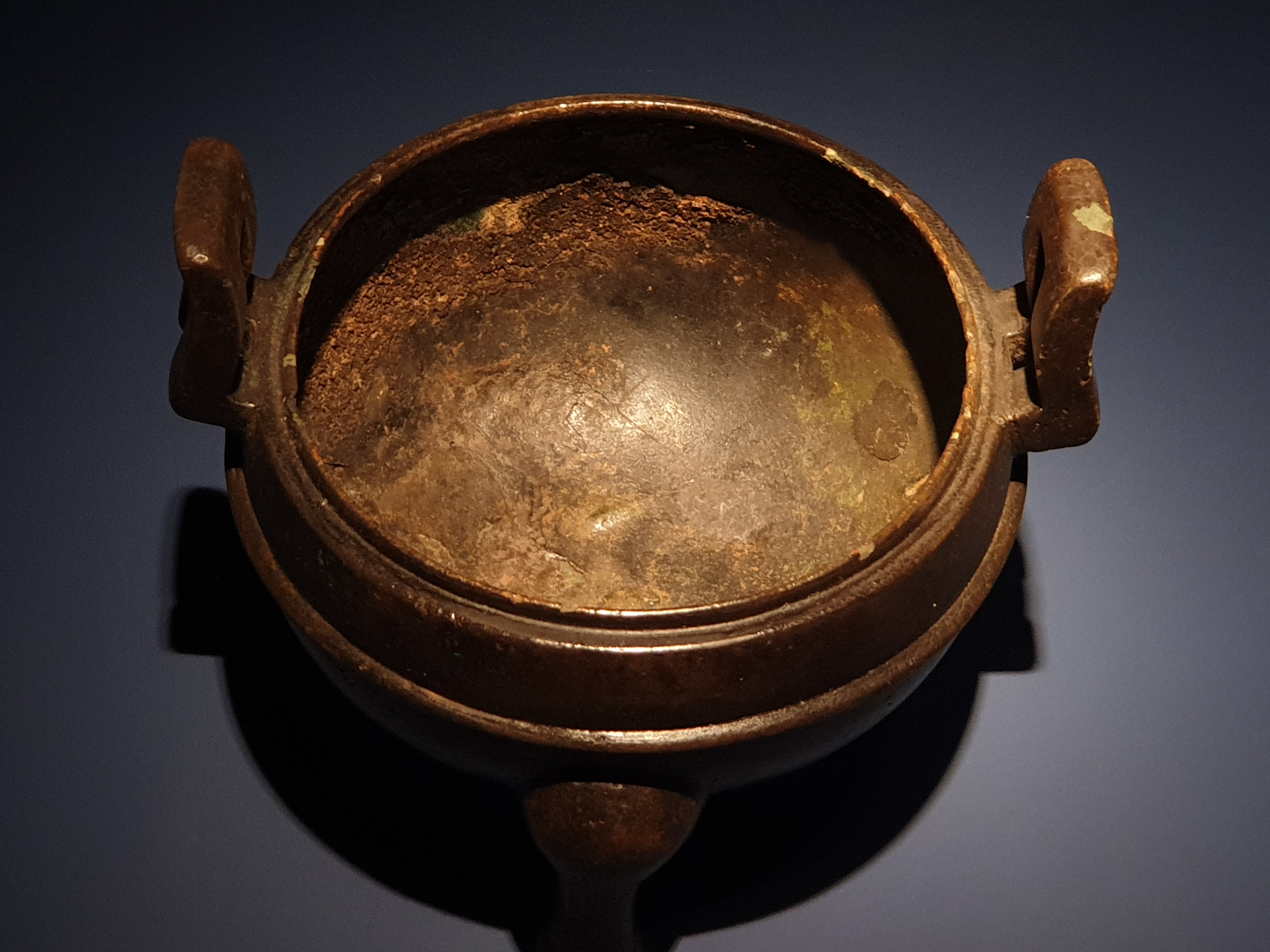 그 바닥이 잘 드러나진 않으나 밑바닥은 상당한 불안감을 주니 주조 청동이 녹아내리거나 흘러내린 흔적이 완연하니 저것이 주조 단계에서 일어난 현상인지 아니면 후대 잦은 사용 불땜에서 유래한 것인지는 내가 단안하지 못하겠다.