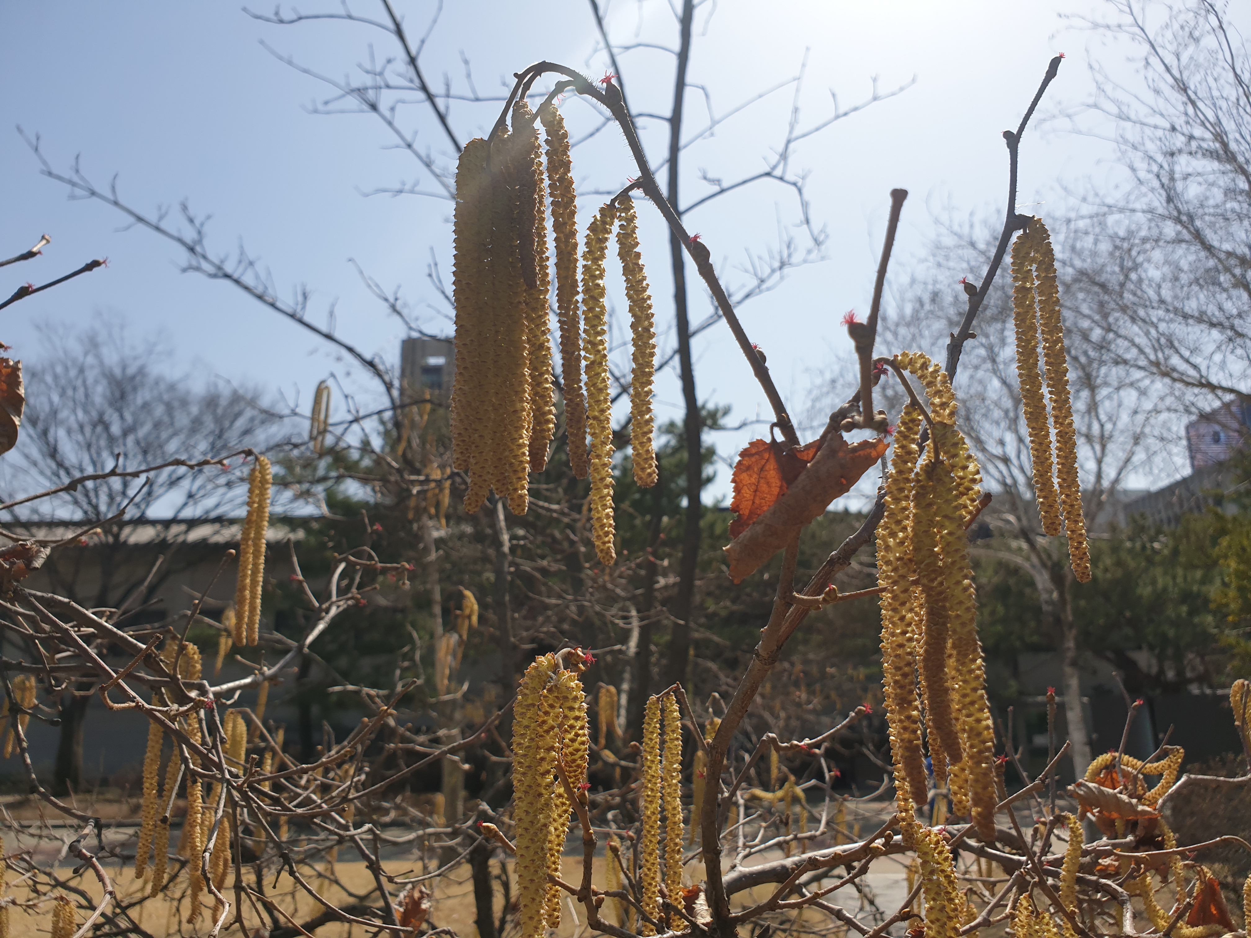 활엽낙엽수인 이 개암나무는 봄이면 저 수염 같은 것이 먼저 오뉴월 소불알처럼 늘어진다. 지금이 한창 그럴 무렵이다. 디셉티콘 수염 같다.