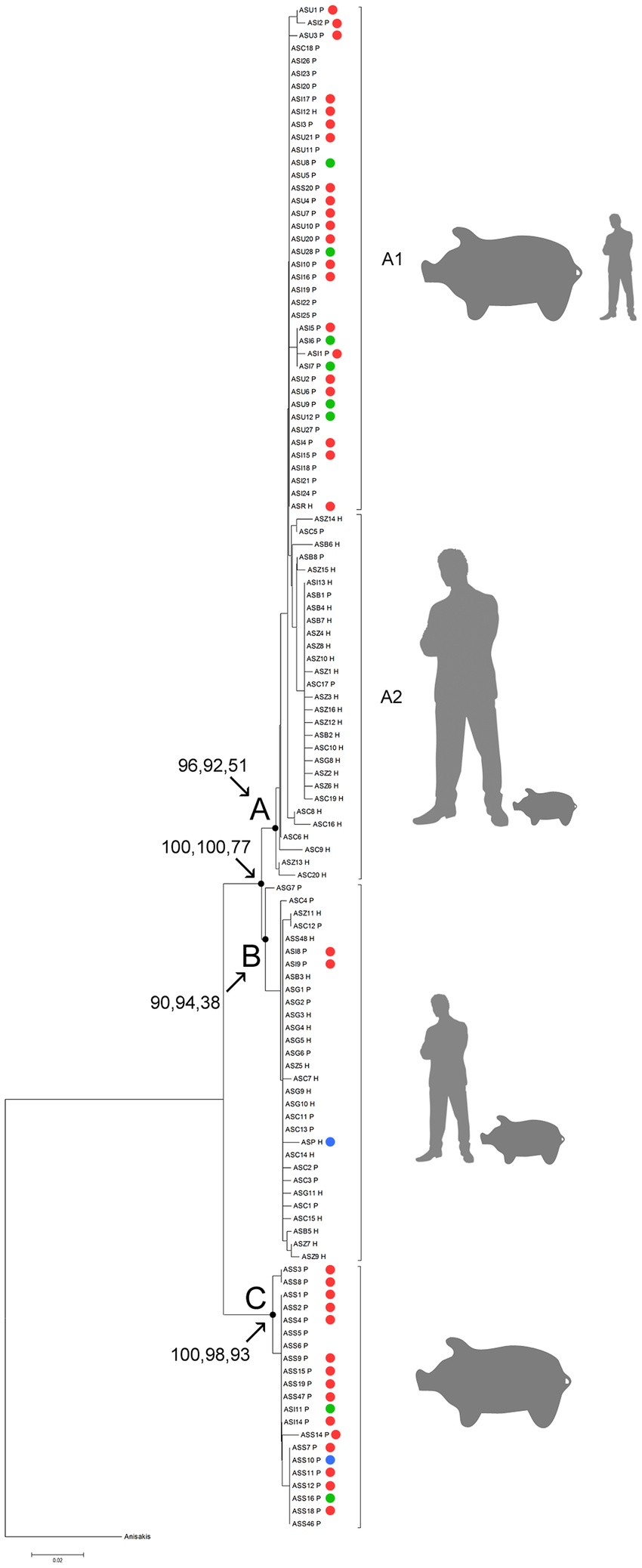 돼지 회충 중에는 다른 돼지회충보다 특정 사람 회충에 더 가까운 녀석이 있다.