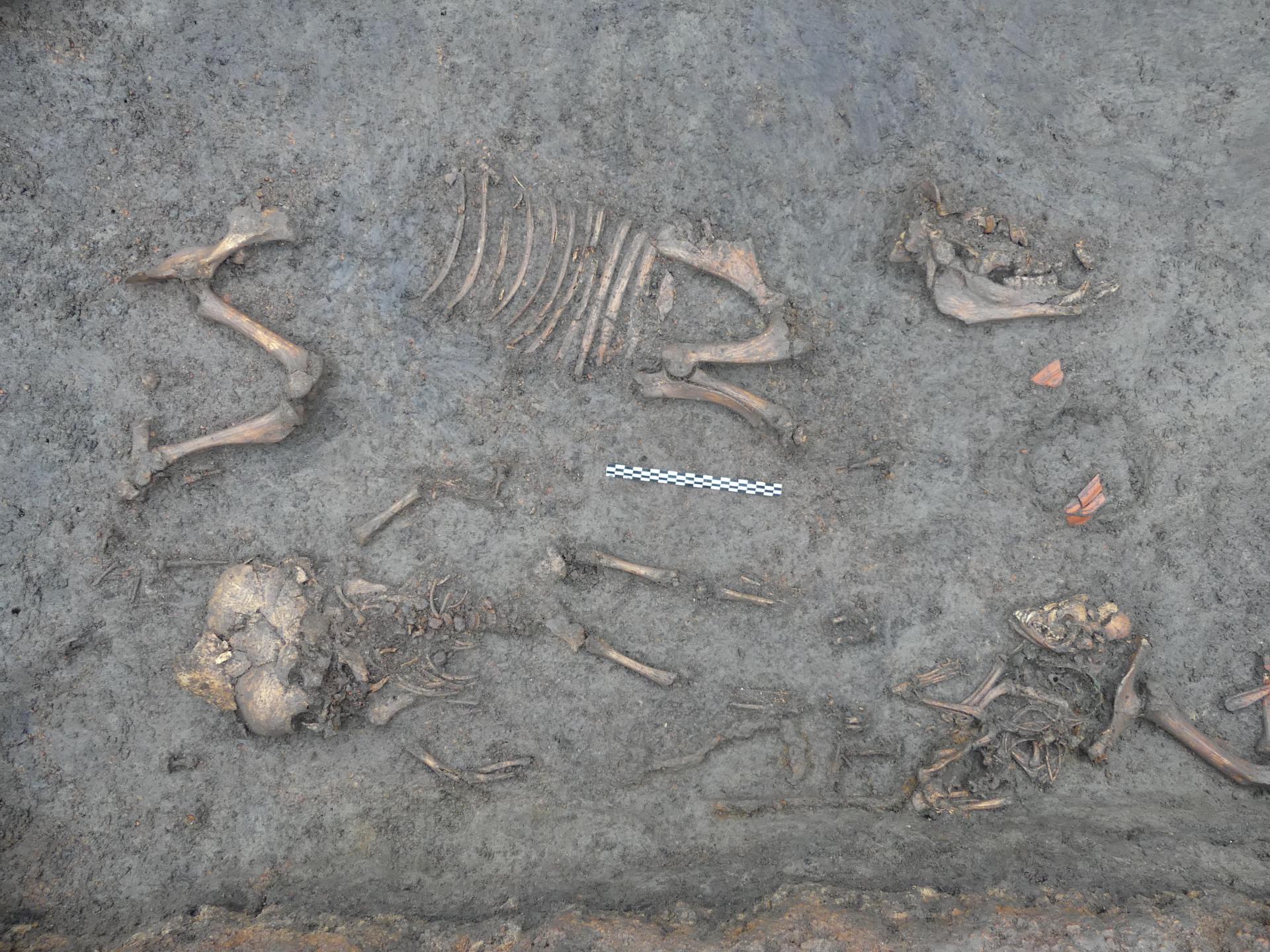In Aulnat, Inrap unearthed the tomb of a very young child dating from the Augusto-Tibetan era. The deceased is accompanied by a young dog and an exceptional profusion of furniture, a burial without comparison in the region and for the period.