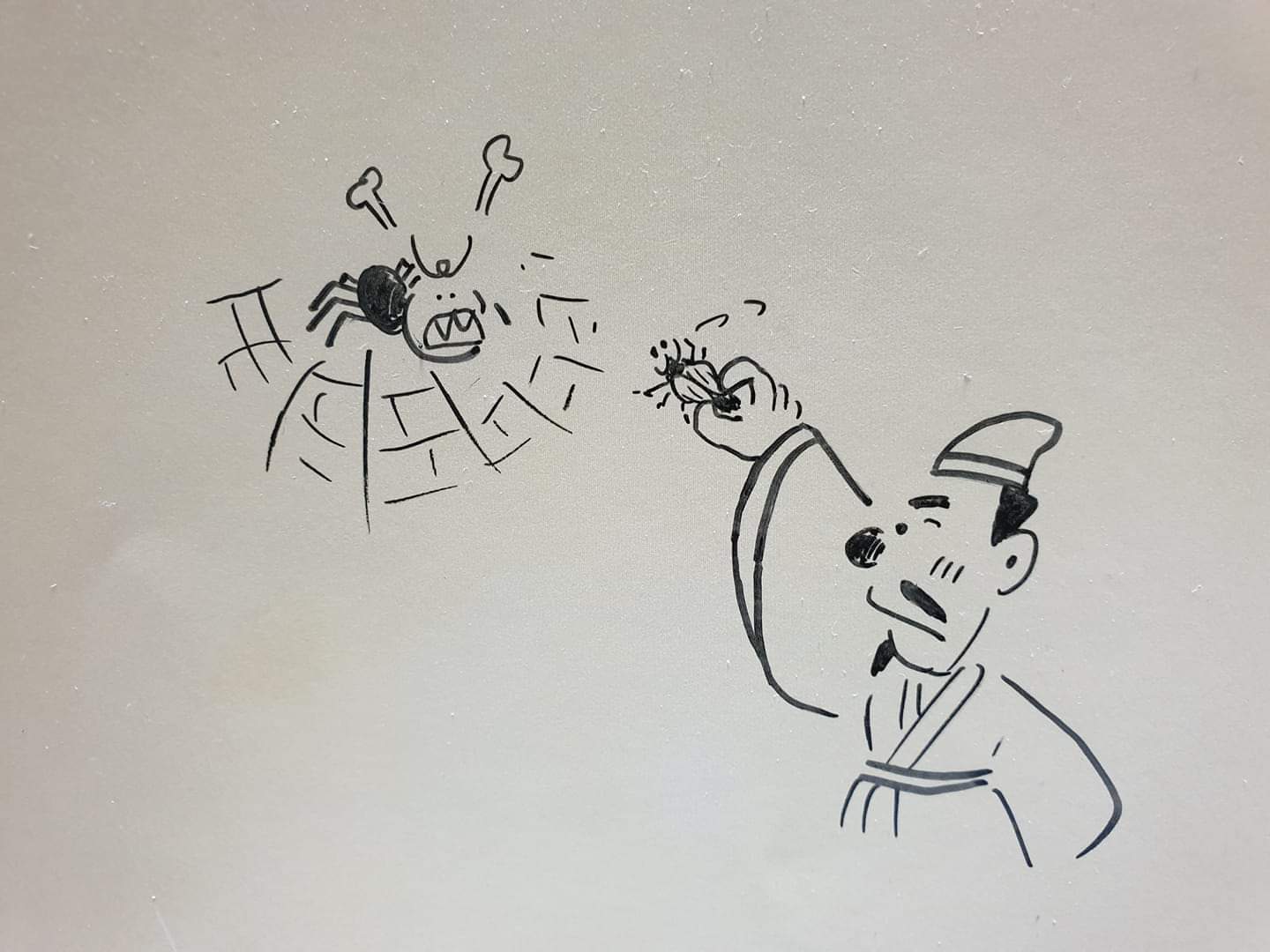 “오직 이 두 미물微物은 다 같이 하찮은 벌레들인데 거미가 자네에게 무슨 손해를 끼쳤으며 매미는 자네에게 무슨 이익을 줬기에 오직 매미만 살리고 거미는 그만 굶겨 죽이려 하느냐? 이 매미는 자네를 고맙게 여길지라도 저 거미는 반드시 억울하게 생각할 것이다. 매미를 놓아 보낸 것에 대해서 누구든 자네를 지혜롭다 하겠는가?”