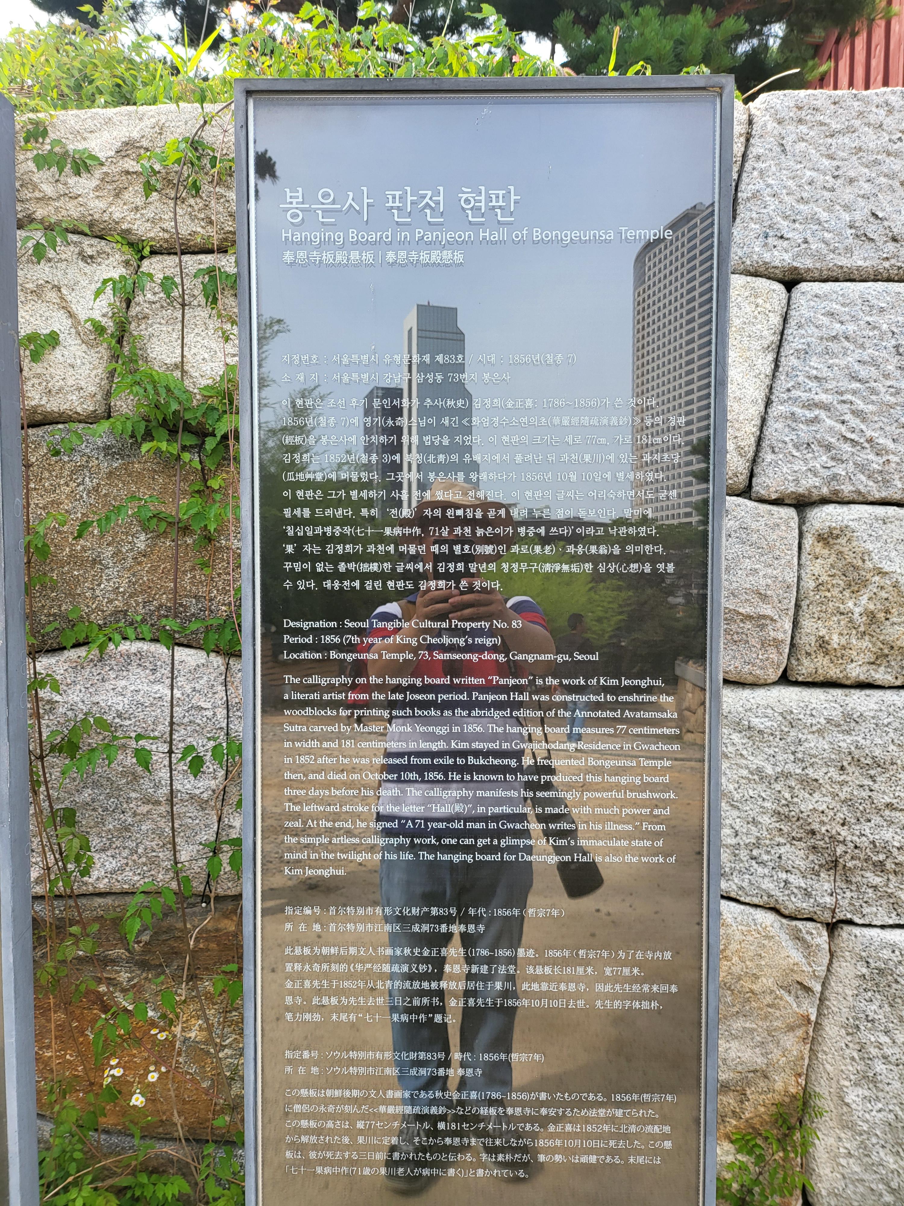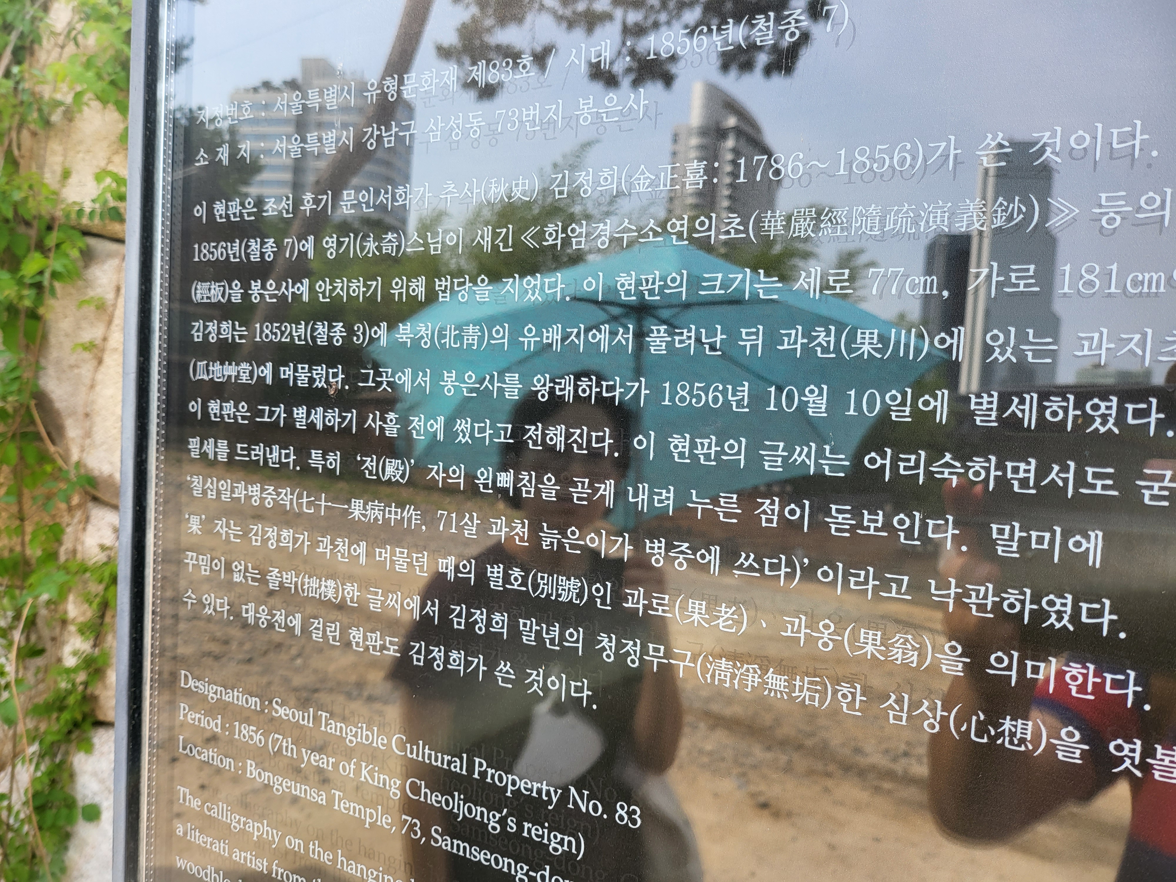 이곳 봉은사는 현직 대통령도 한두 번 간 곳으로 알고는 있는데 이 안내판은 못 보신듯.