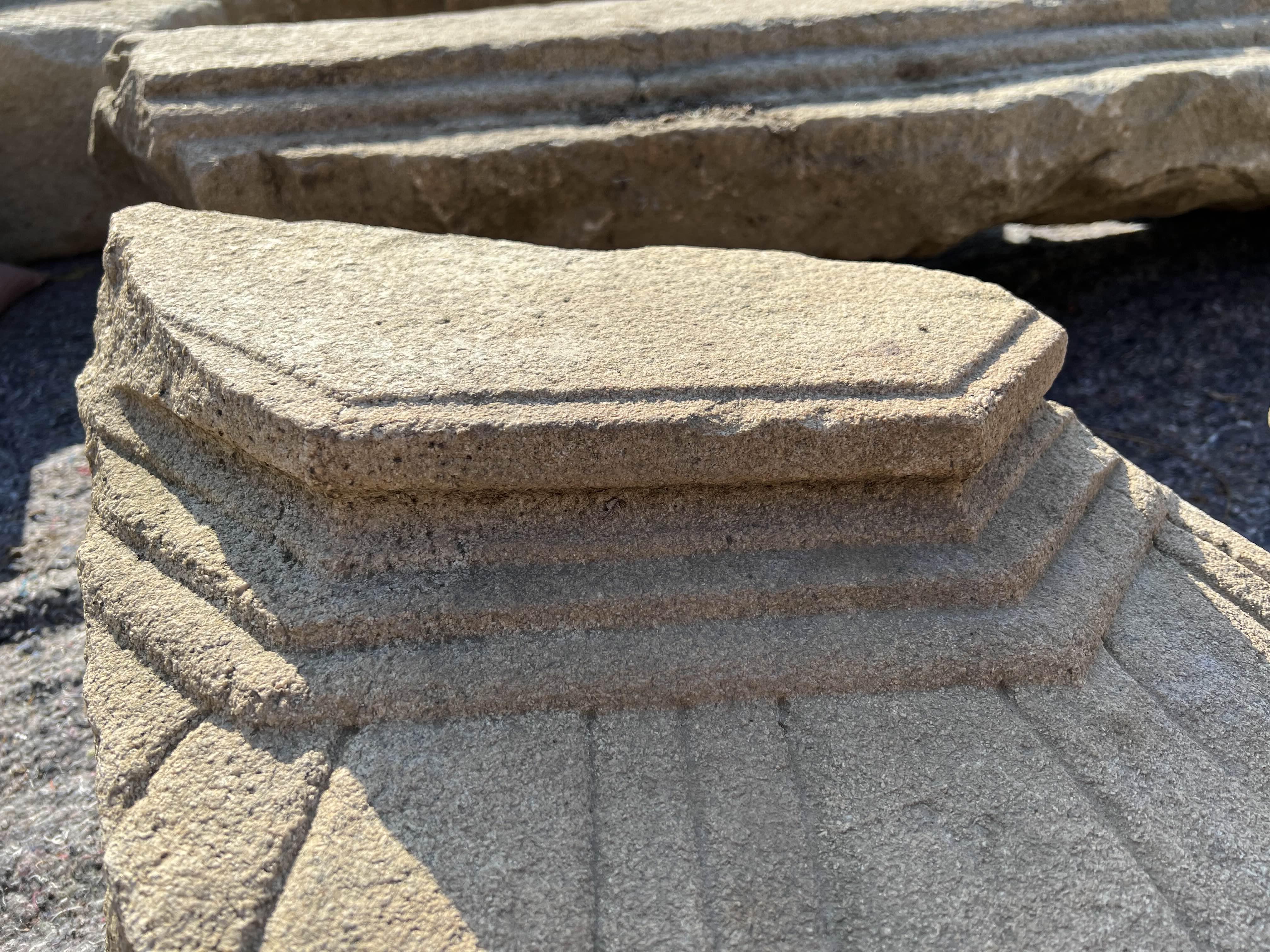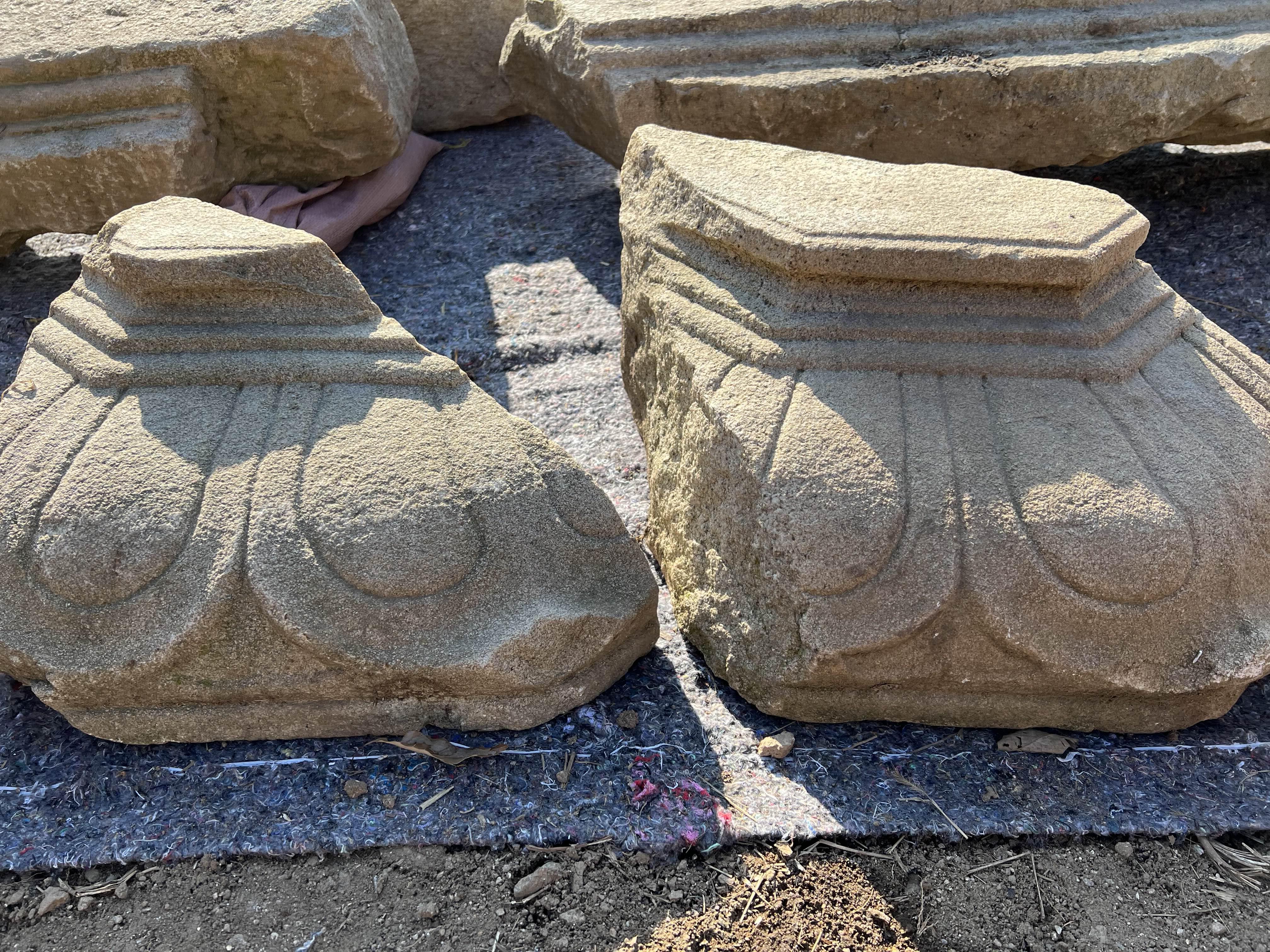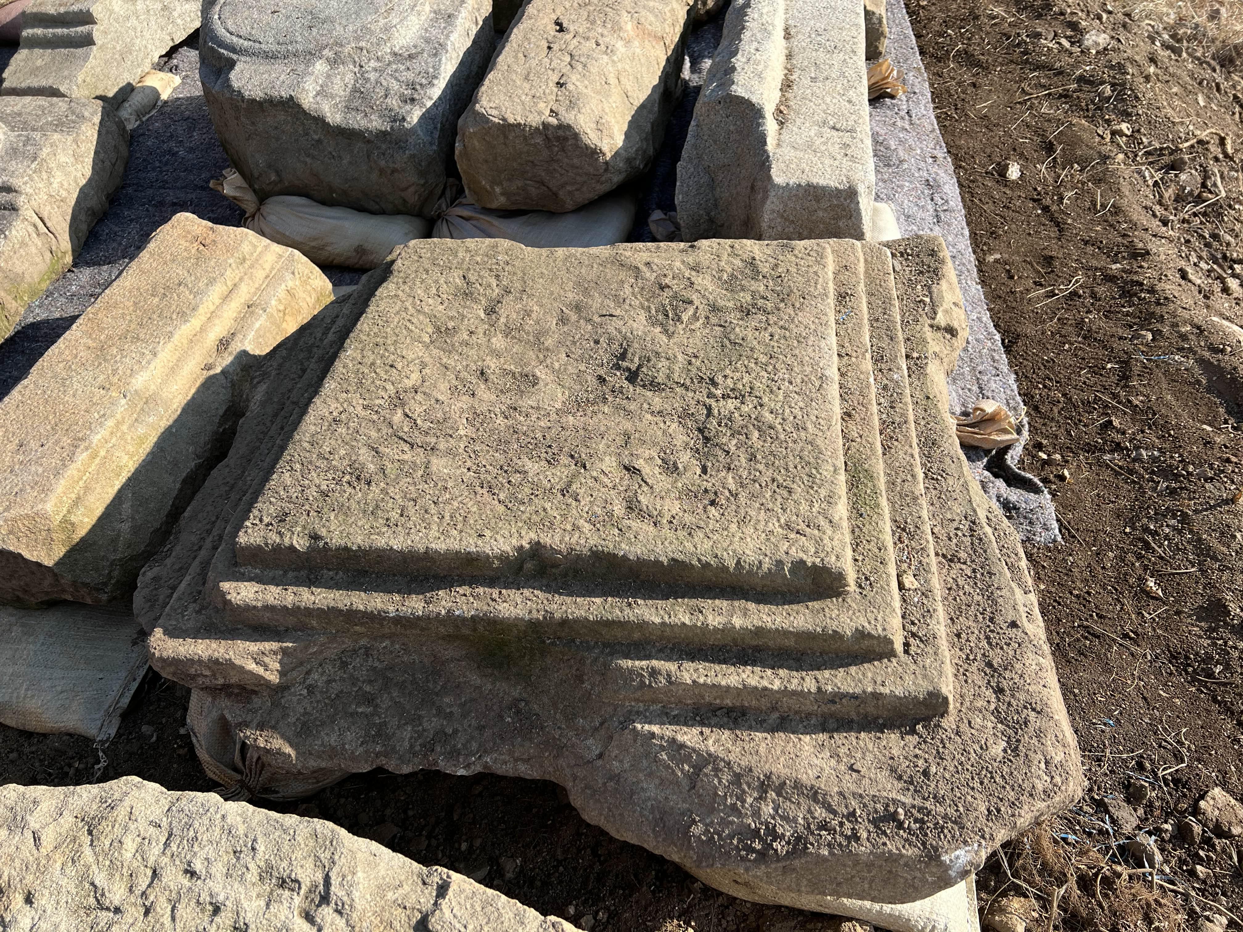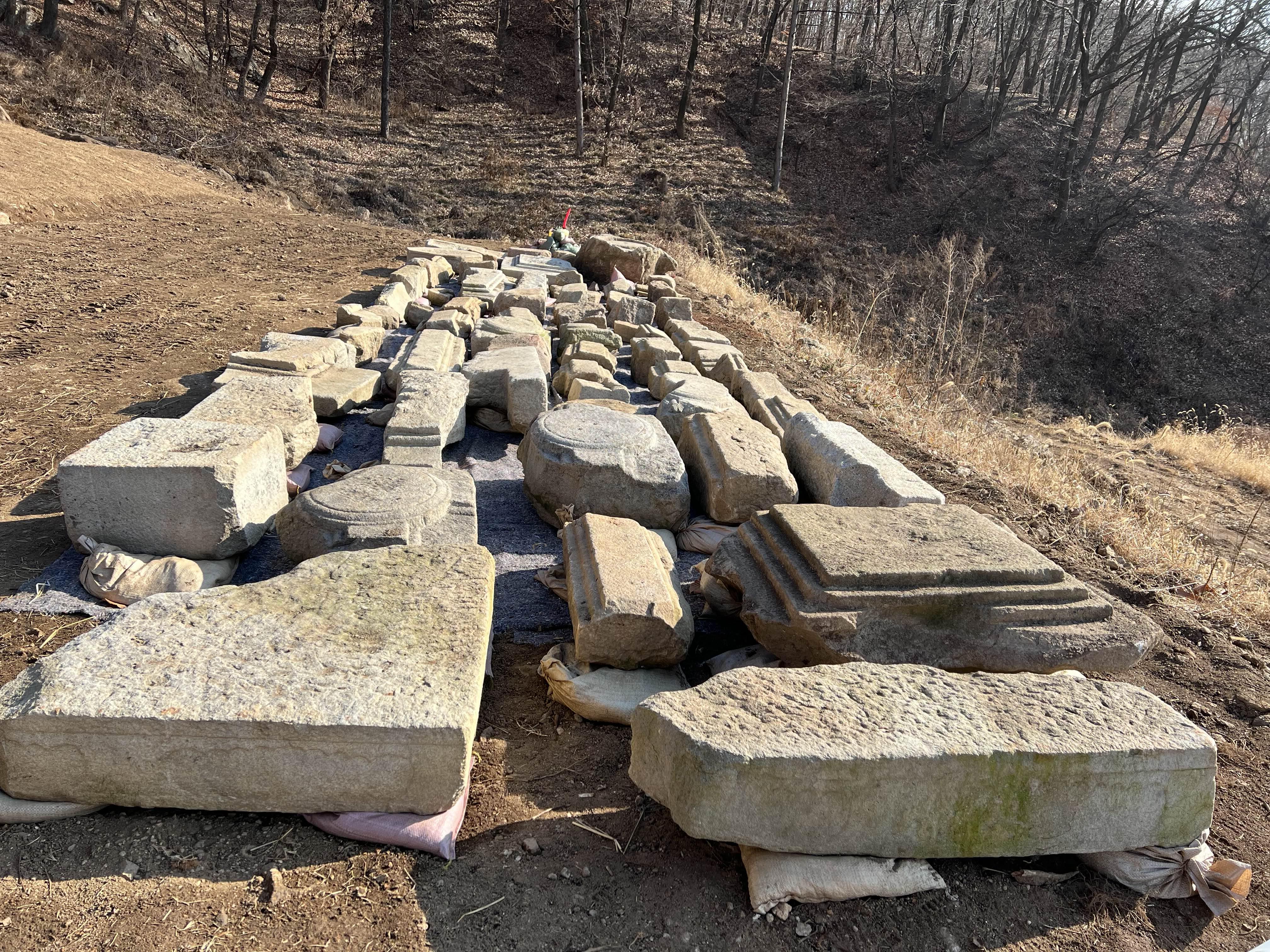 발굴 중 3단에서 발견된 여러 석조물들을 그동안 묻어서 보존해놨다가 이번에 1단으로 올려 자리를 잡아 놨다.