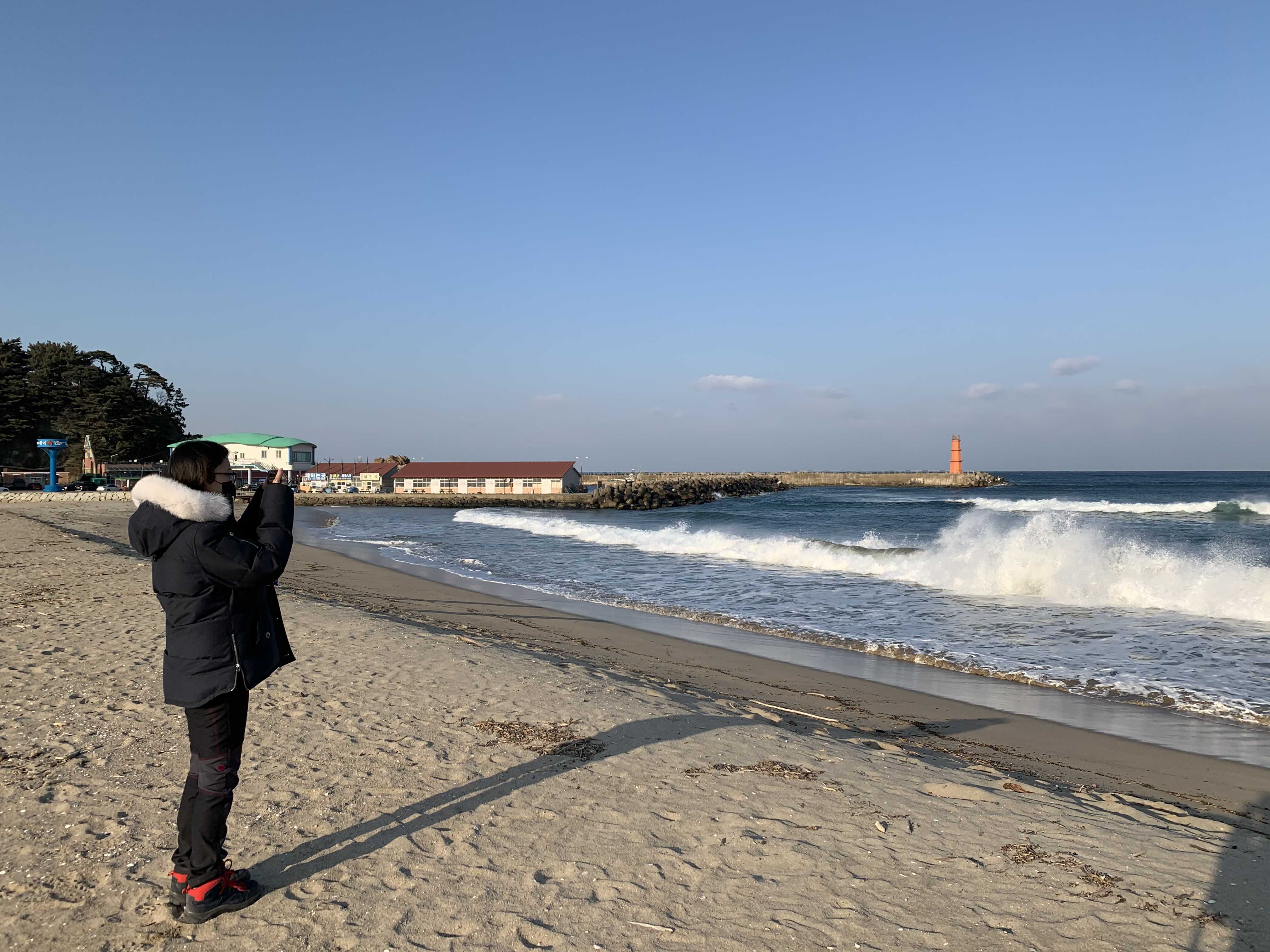 이 겨울에 내가 양양 해변가를 걷고 있을 줄이야!