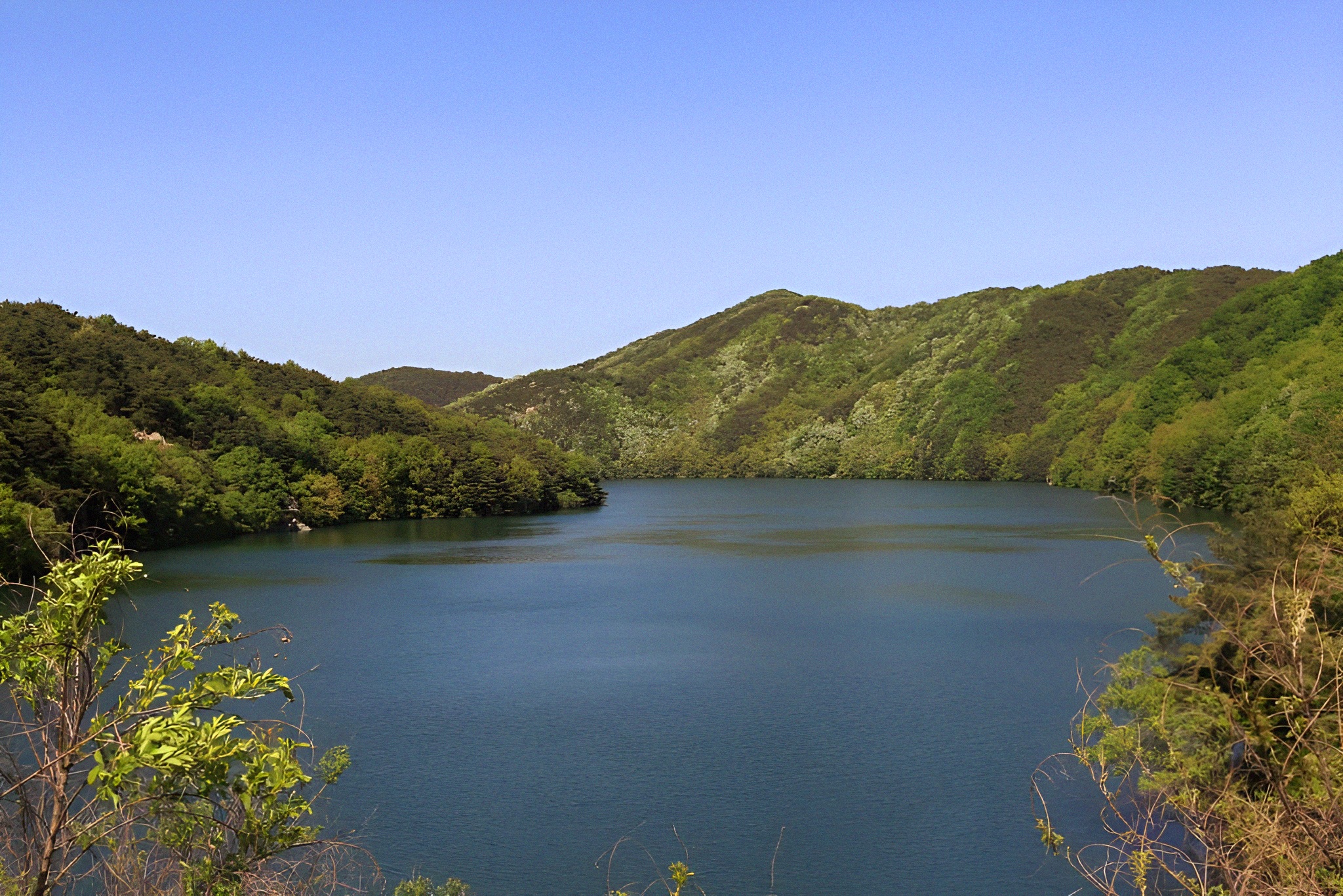 저수지 자체도 그렇고 저 무성한 수풀도 실은 사방공사 산림녹화라는 인위가 빚어낸 그림이다.