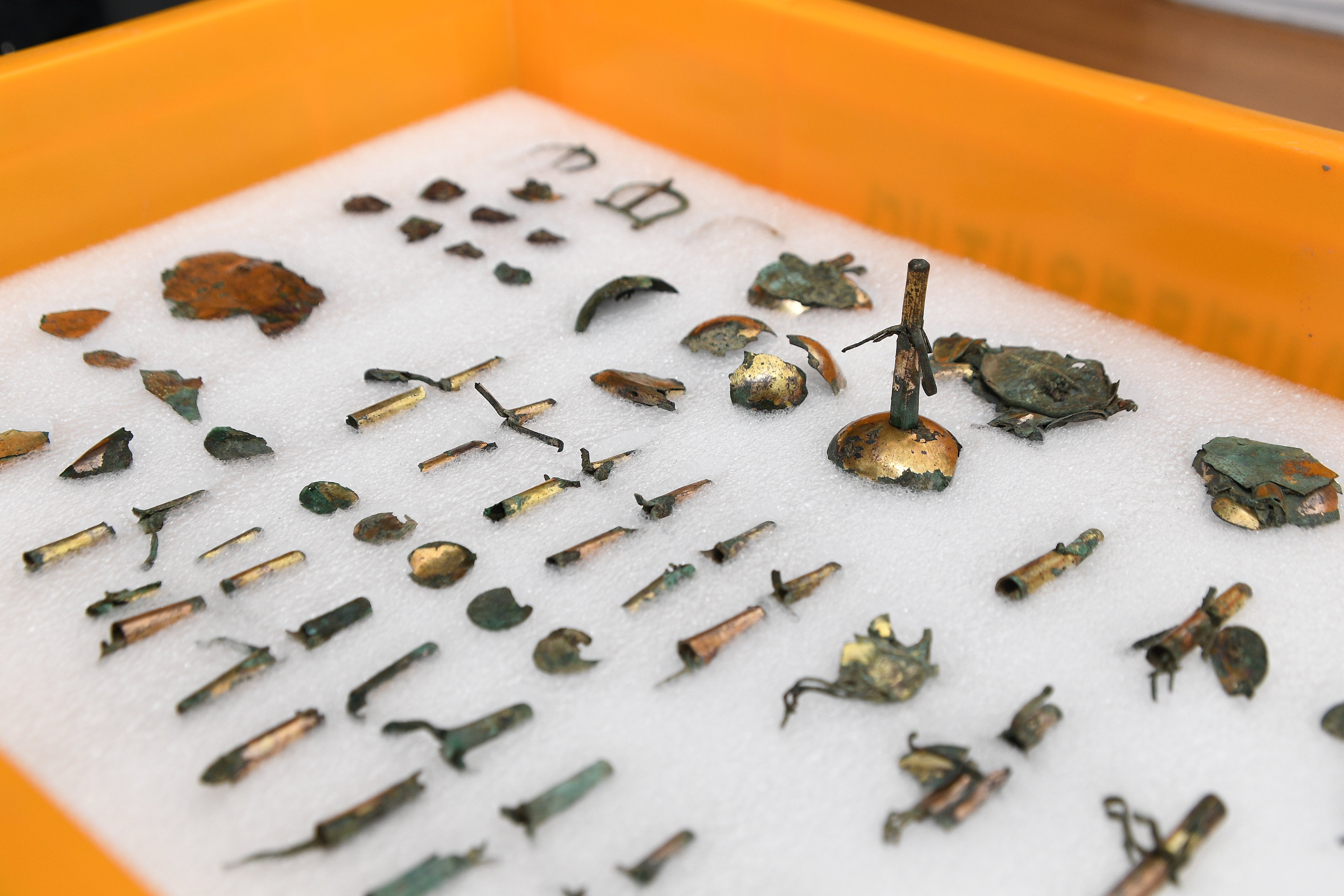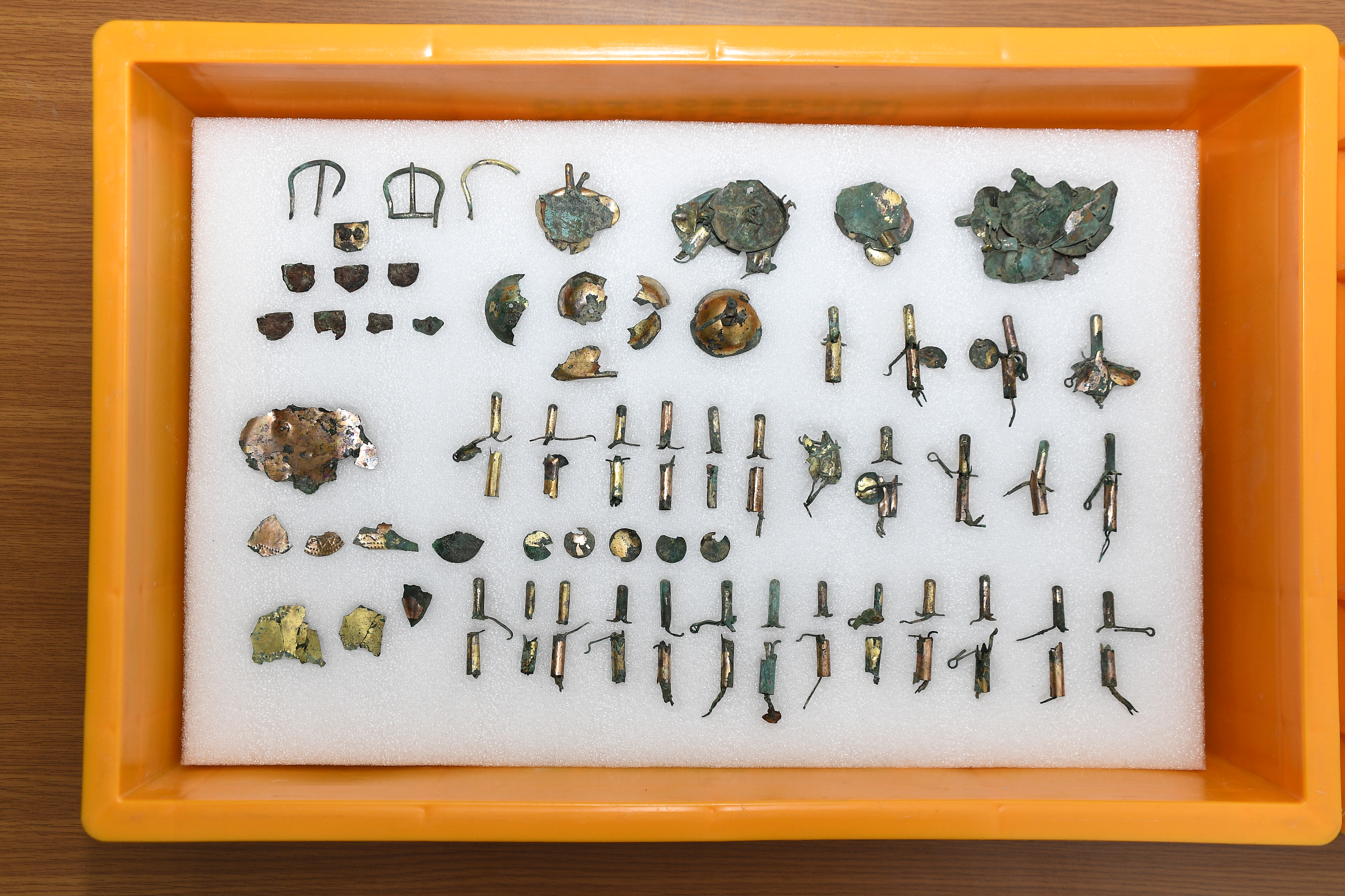 120호분 남쪽 가장자리에 후축, 금동제 신발, 추정 관모, 마구장식, 청동 다리미 등 |