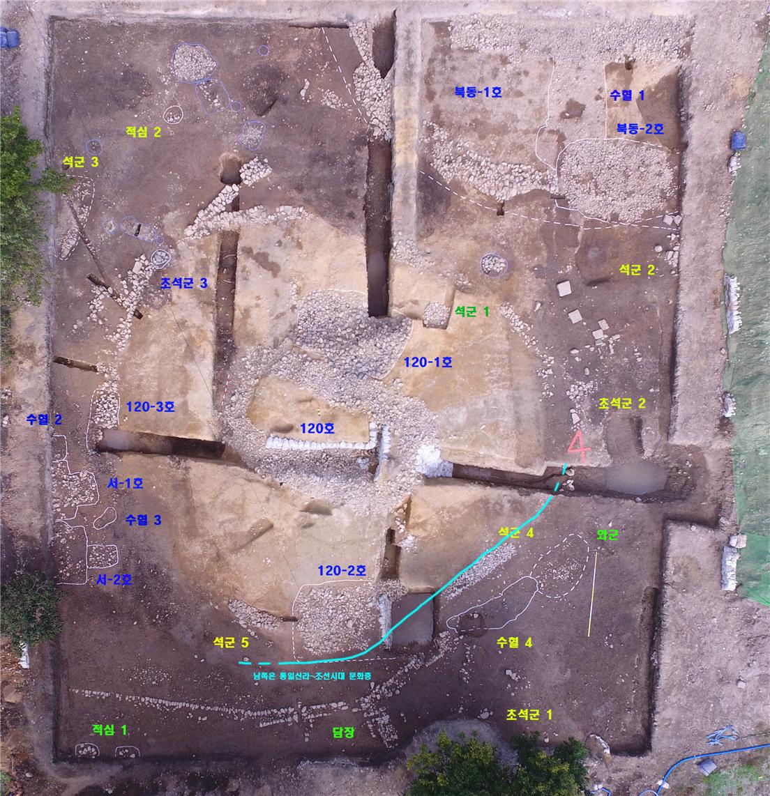 5. 아직 조사의 초기단계가 진행 중임에도 불구하고 이번 조사가 많은 성과를 내고 있는 것으로 평가된다. 일제강점기에 번호가 부여된 120호분의 정확한 위치가 확인되었으며, 굴착・정지・주제(周堤) 등의 하부시설과 매장주체부(적석부)・봉분토・호석・제사토기(대호) 등 그 구조 및 성격이 파악되고 있다. 특히 120호분의 경우 마사토를 1차 봉토 및 봉분토로 사용한 점, 봉분의 일부를 굴착하고 후대 고분이 들어선 점, 이 고분들의 일부를 절삭하면서 통일신라시대 왕경관련 유구가 조성된 점 등 신라 중심고분의 구조와 성격을 비롯하여 고분에 대한 후대 사람들의 인식을 엿볼 수 있는 자료가 확보되고 있다는 점에서 의미가 크다.