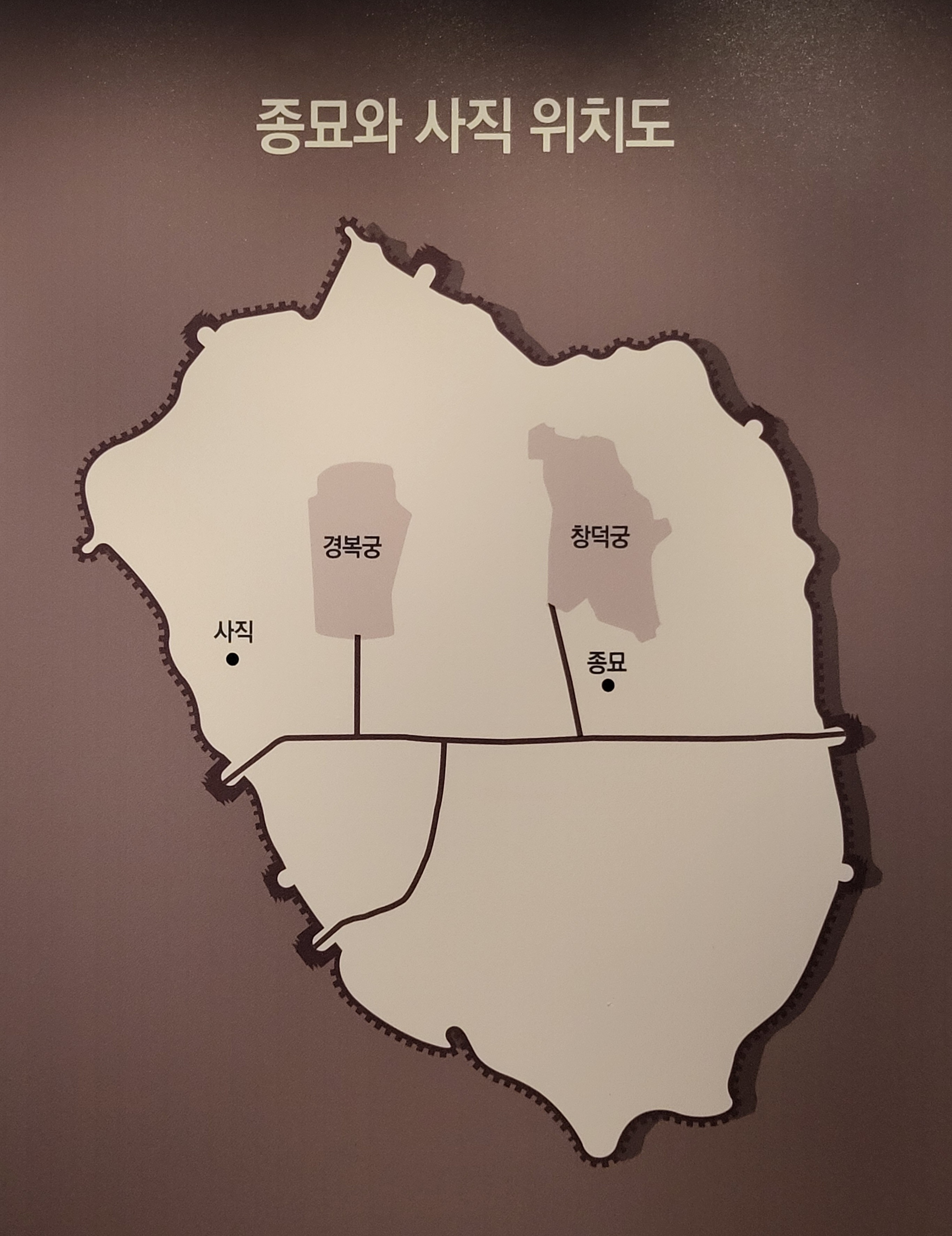 이때 고려한 것이 유교적 전통과 풍수지리였습니다. 유교적 전통에서 도읍을 건설할 때 중시된 것은 왕이 거주하는 궁궐, 종묘·사직과 같은 제사 시설, 관청 그리고 백성들이 상품을 거래하는 시장입니다.