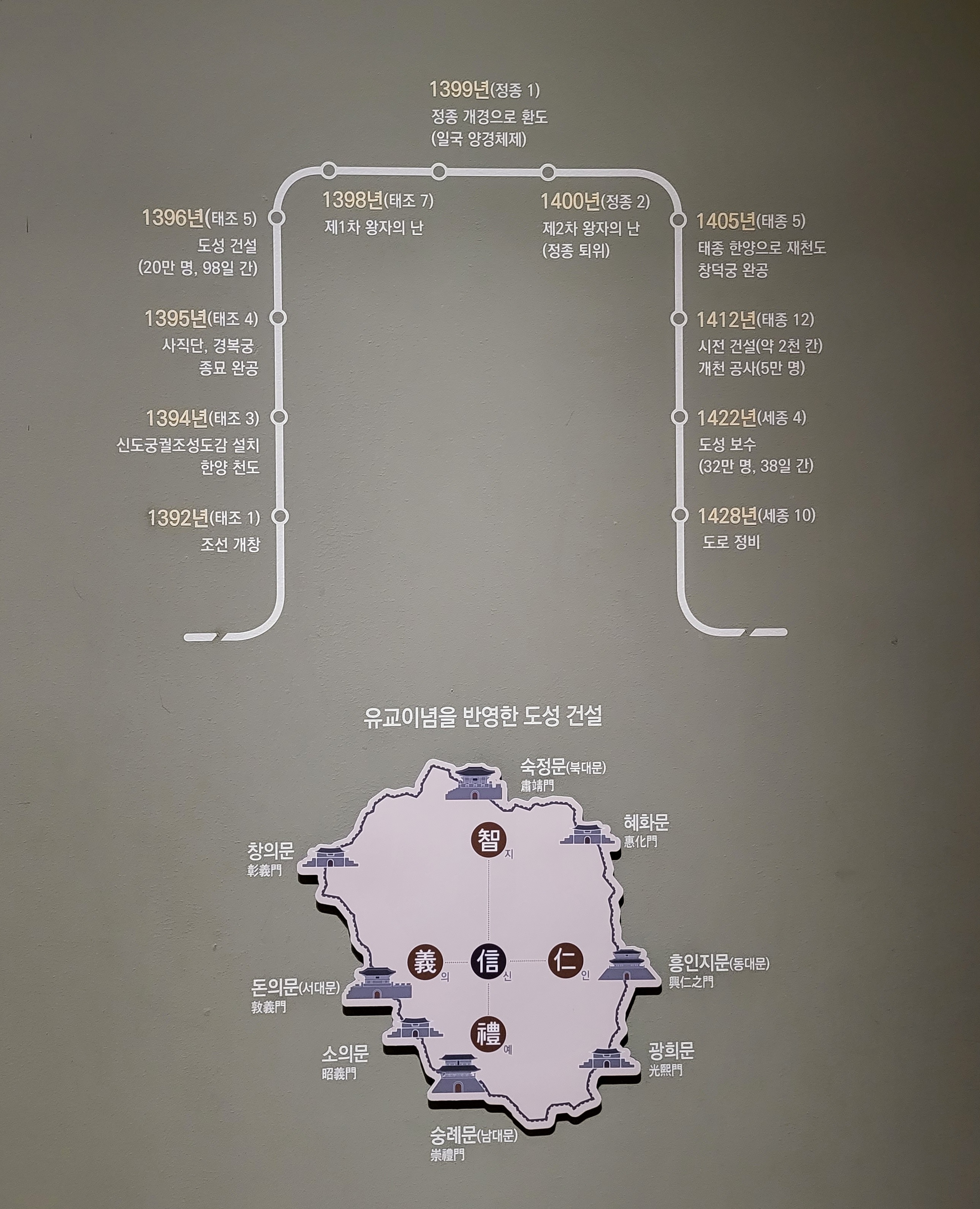 신도궁궐조성도감新都宮闕造成都監과 도성조축도감都城造築都監 등이 설치되고 정도전을 비롯한 유학자들을 중심으로 면밀한 계획하에 새로운 수도가 완성되었습니다.