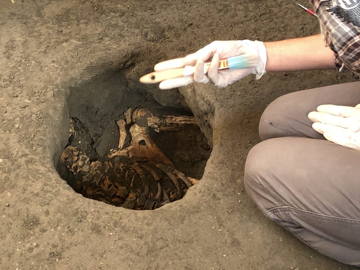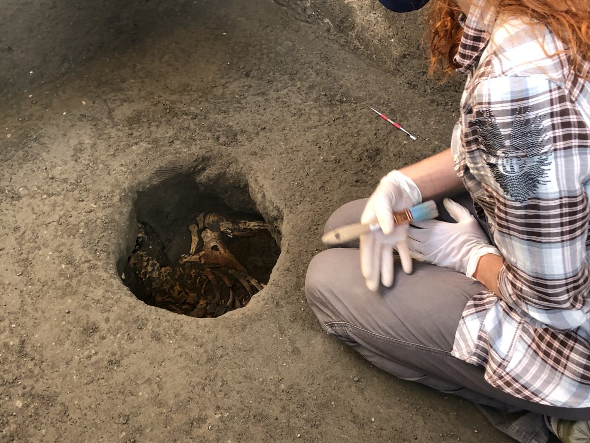유적관리소 고인골 전문가가 그 뼈 대부분을 수거해 분석하는 한편, 회반죽을 그 구멍에다 부었으니, 이는 주세페 피오렐리 Giuseppe Fiorelli 가 1867년에 발명한 바로 그 회반죽 붓기 기술이다. 신동훈 교수 전언에 의하면, 이는 폼페이유적 발굴에서 적용하는 전형적인 수법으로, 화산재에 유해 대부분이 녹아 없어지고 뼈 일부만 남으니, 그 빈공간에다가 회를 부어서 본래 모습을 유추하는 기술이라 한다.
