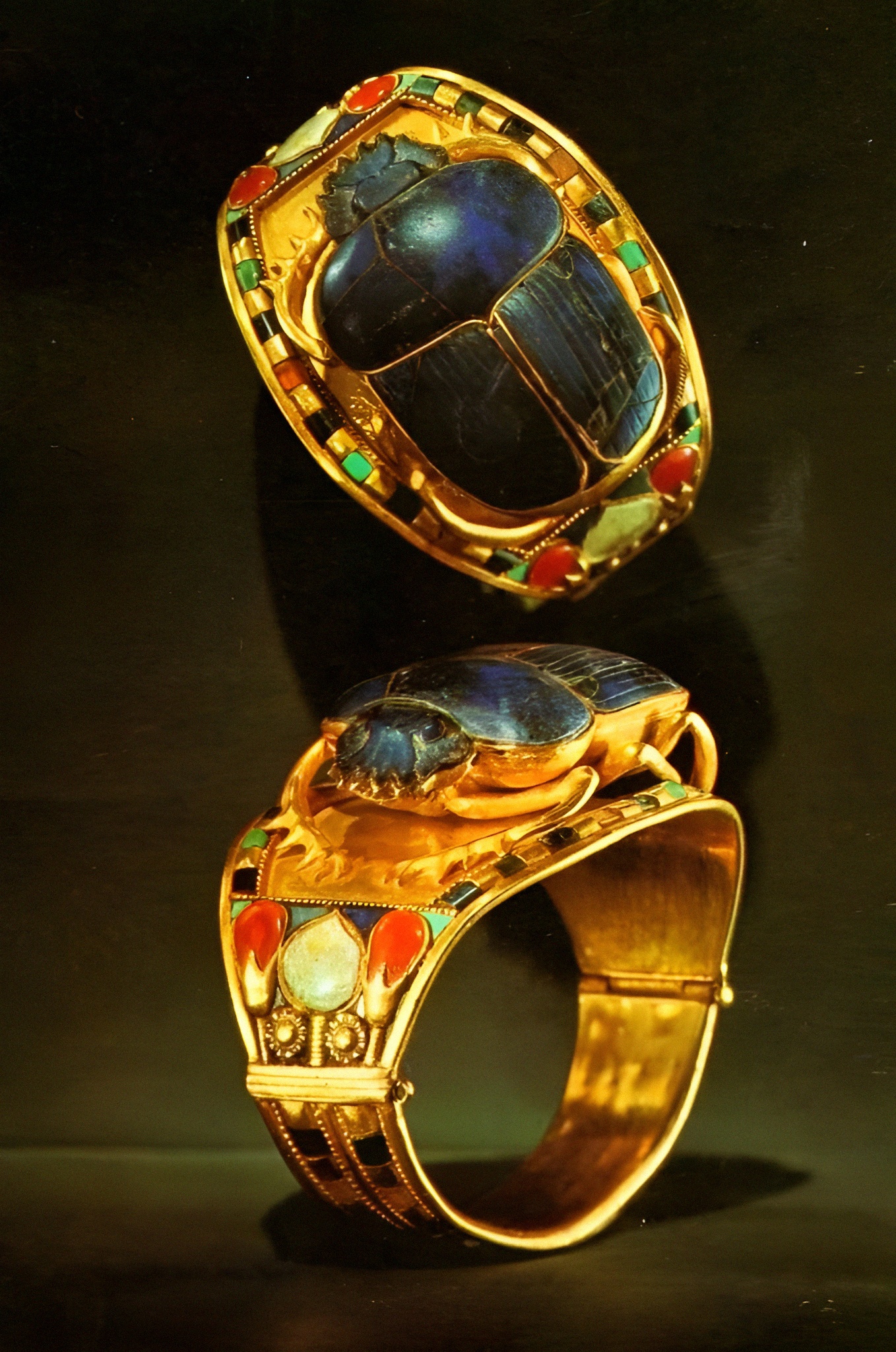 고대 이집트 제18왕조 투탕카멘 Tutankhamun 무덤 출토 Scarab bracelet, 곧 풍댕이 반지다.