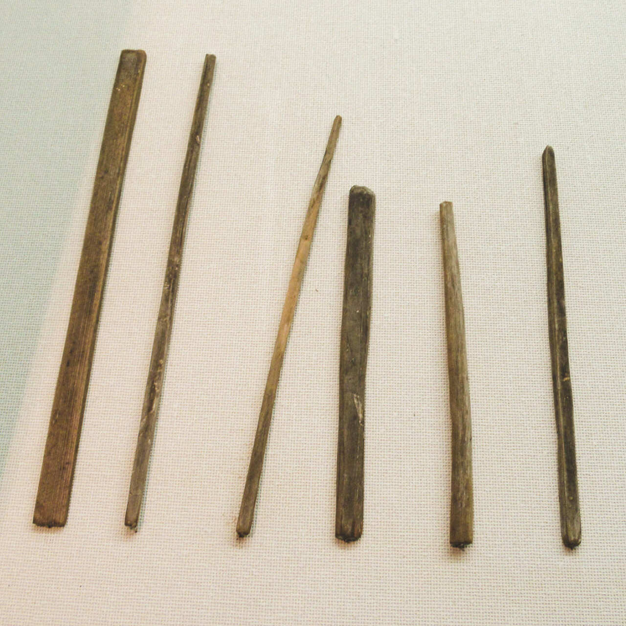 이것이 뭔고 하니 바로 당시 목간들이다. 목간을 깎아 쓰고 또 쓰고 하다가 결국 더 못 쓸 정도가 되면 이걸 화장실로 들고가 밑처리 용으로 쓴다.