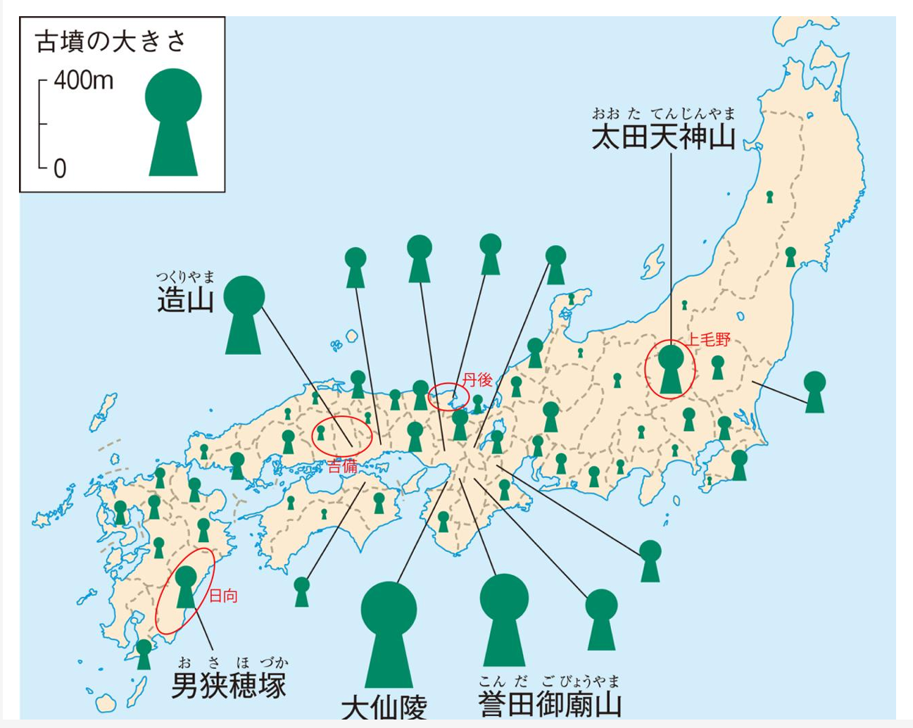 일본 고분시대 전방후원분 분포다.