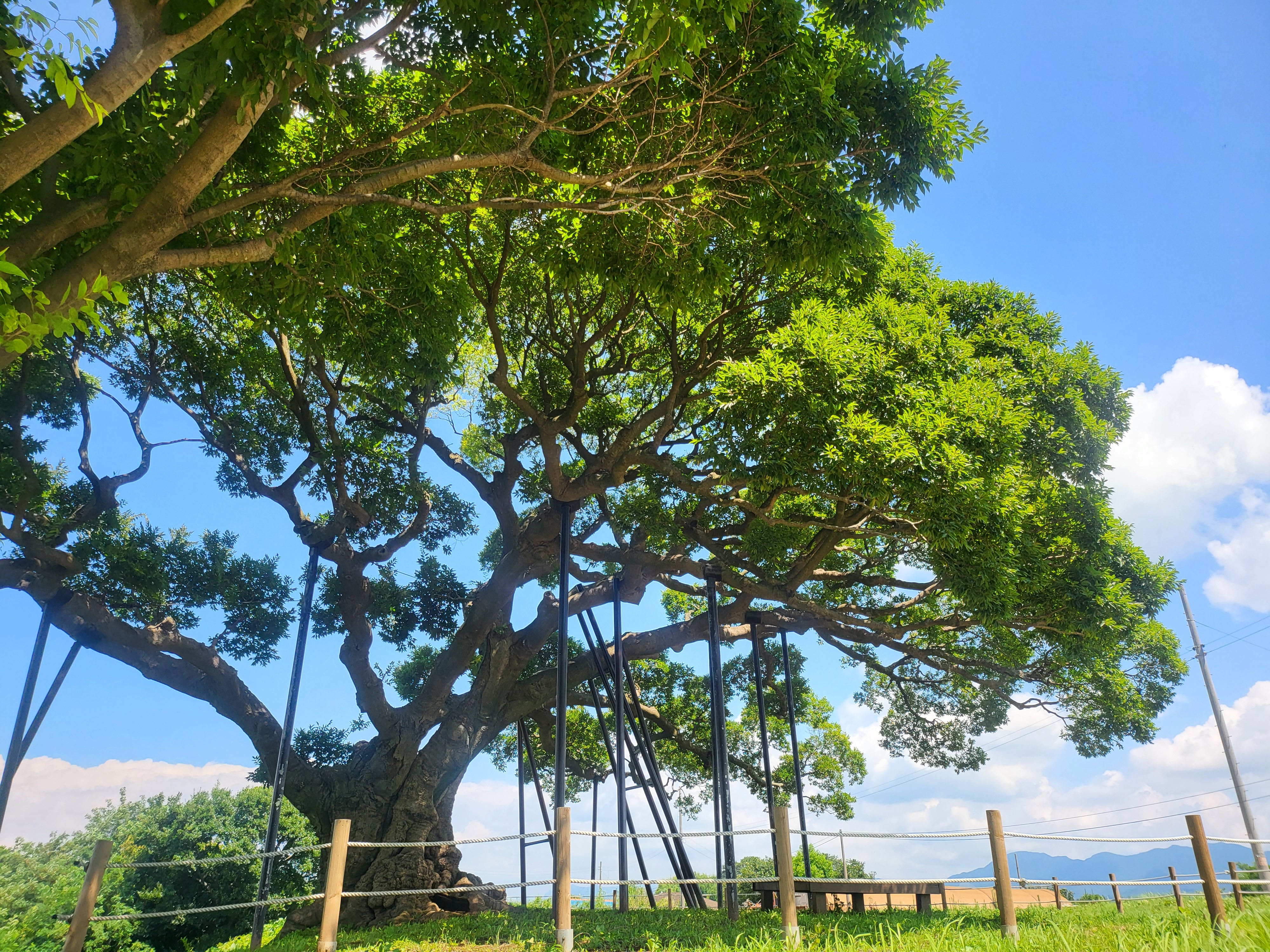 The crown of the tree measures 22.7 m in diameter from east to west, and 26 m from south to north.
