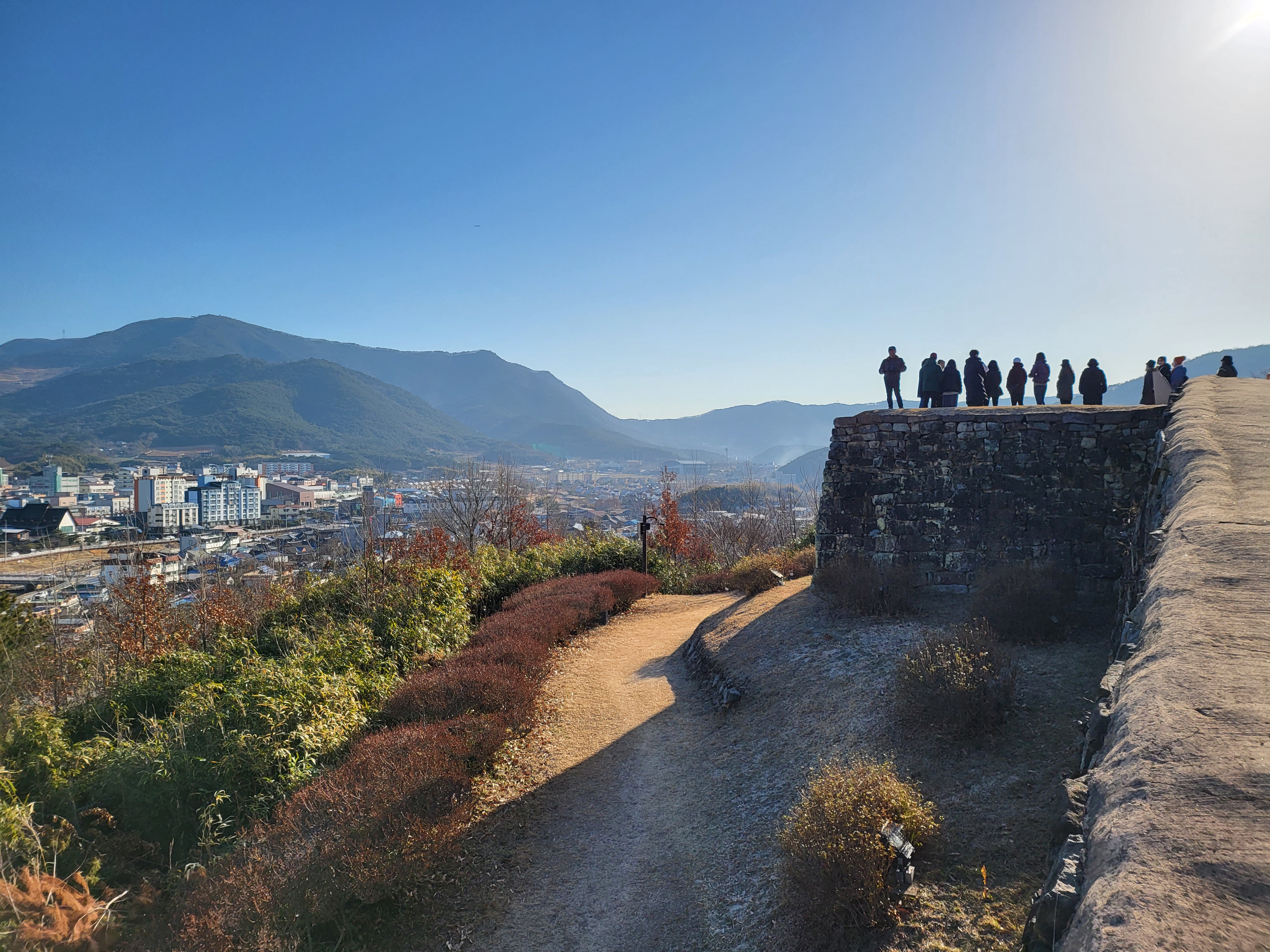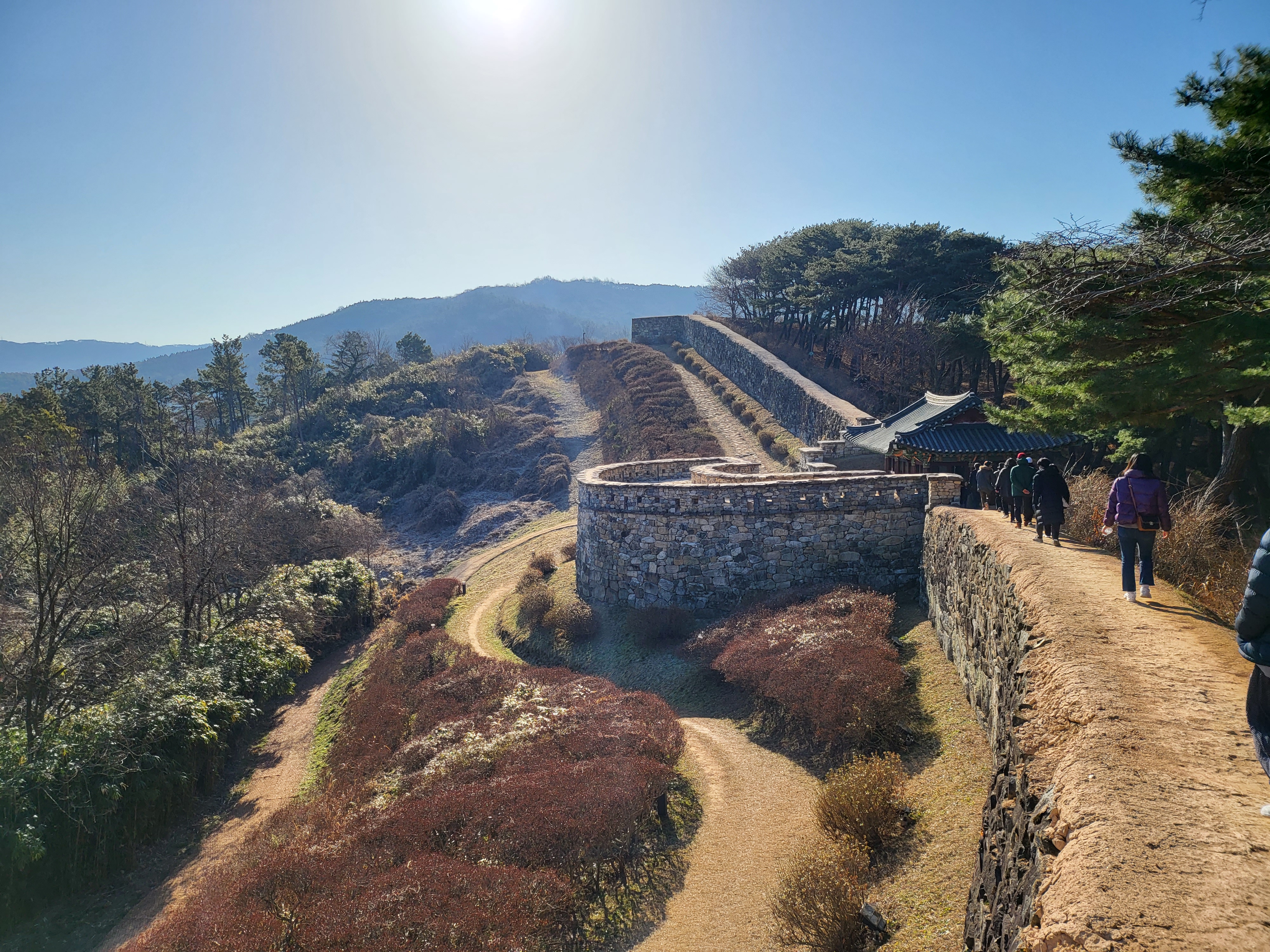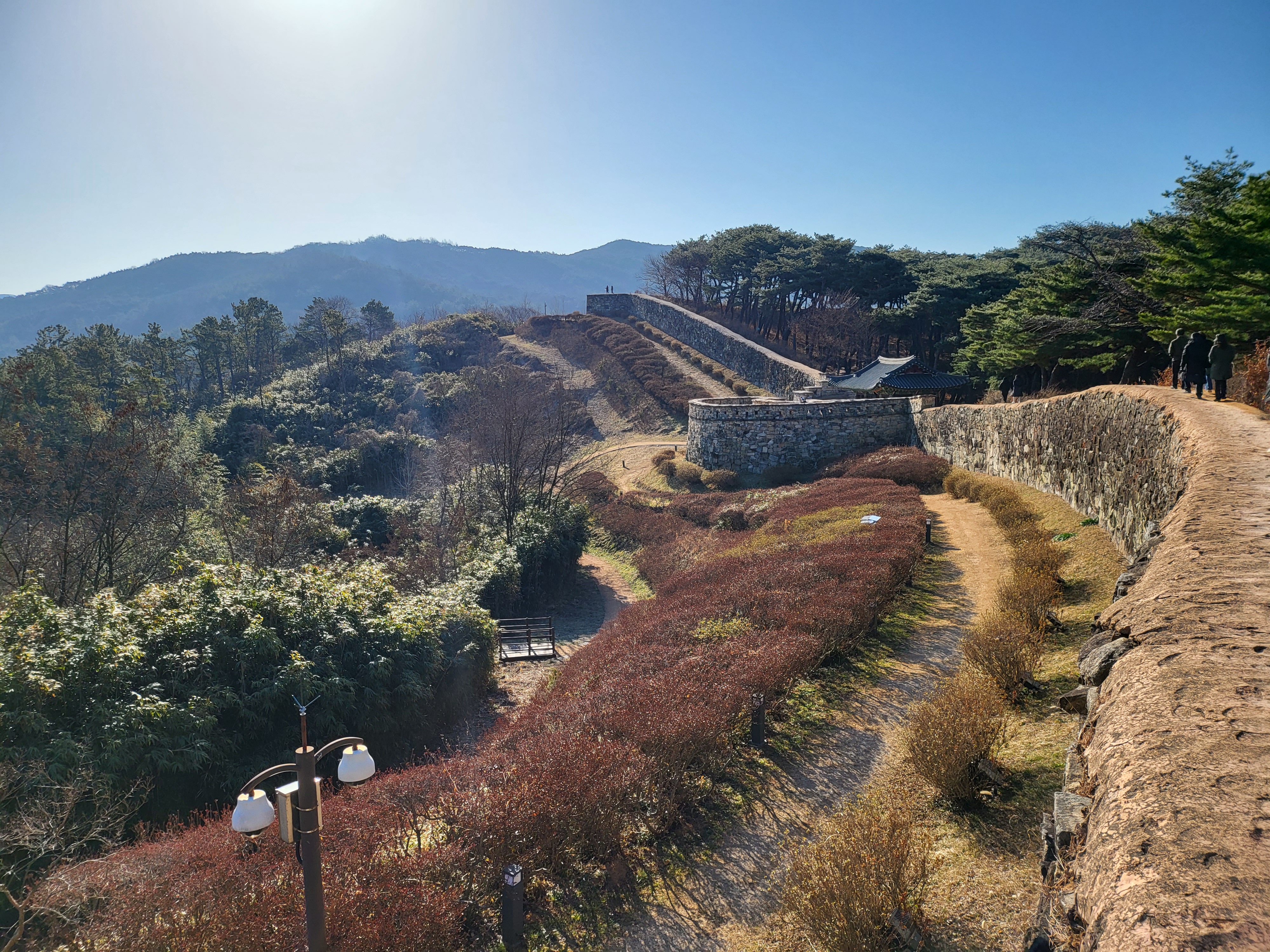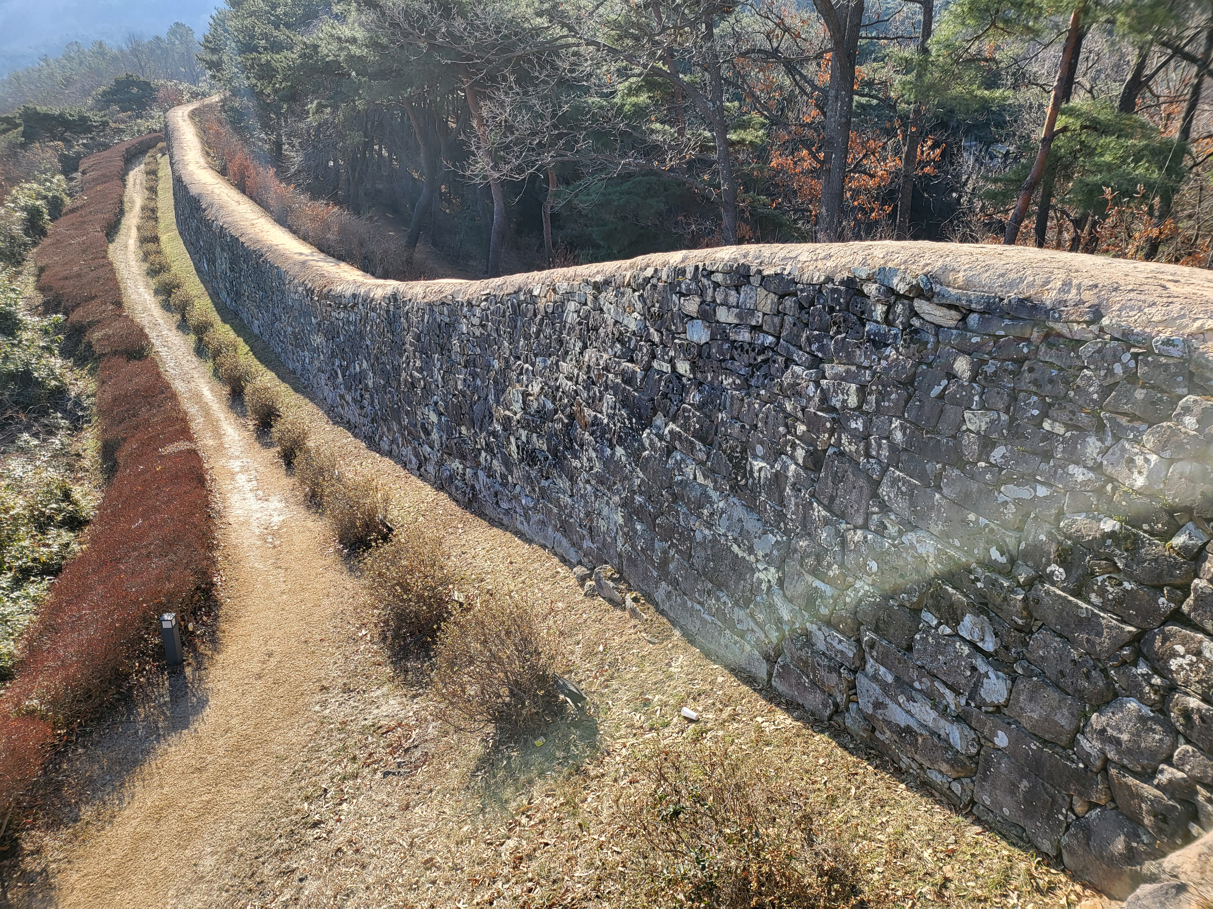 남벽을 따라 걷다 성에서는 해발 고도 가장 높은 지점에 복원한 성황사를 끼고선 아래로 질주하니 하긴 이곳이 산성이라 해도 비교적 평탄한 산곡을 끼고 객사와 부속 건물들을 배치한 읍성은 전체 둘레 1.6킬로미터라 완주가 어렵지는 아니하니 그래서 이곳을 찾는 사람이 더 많을지 모른다.