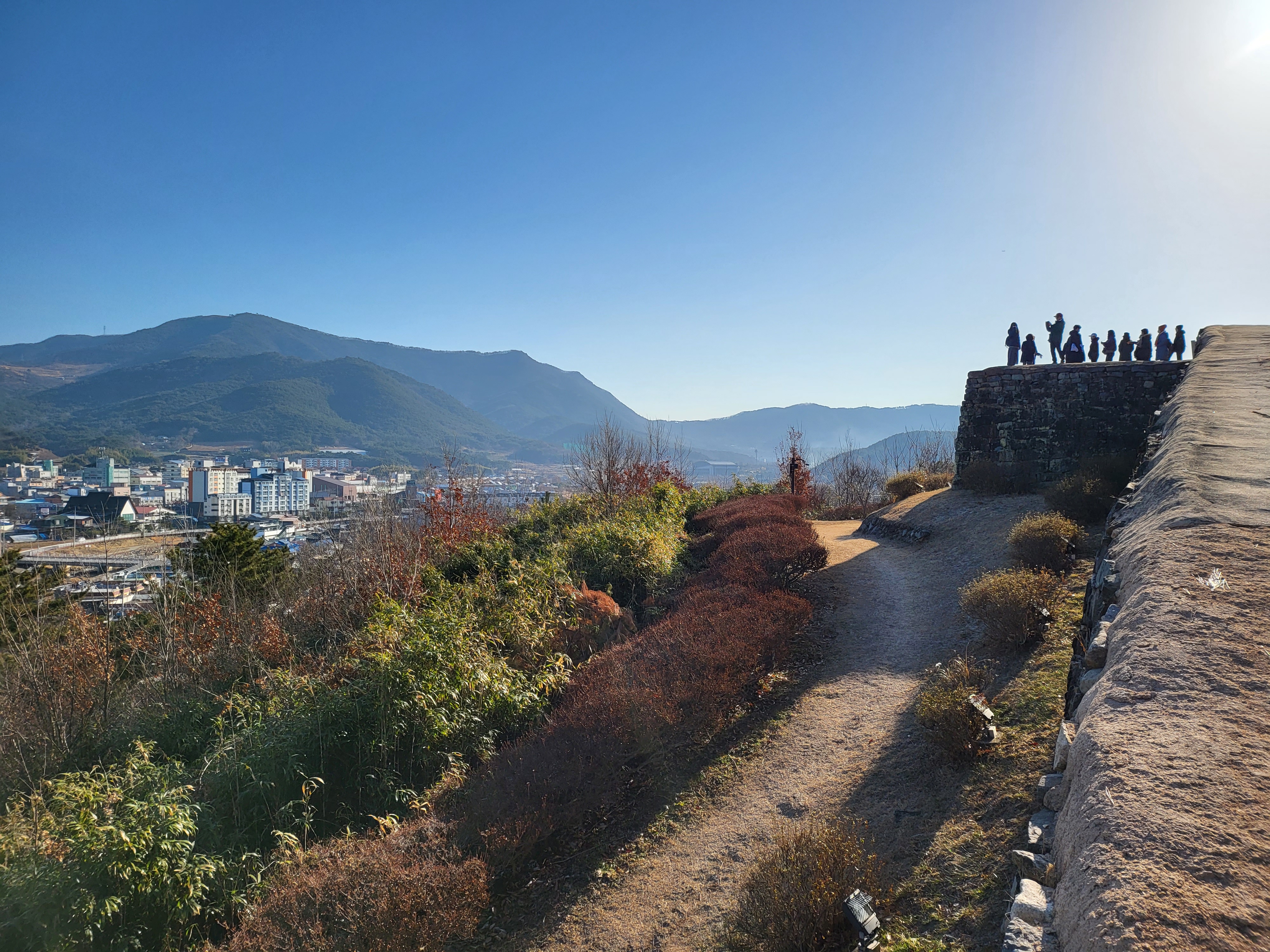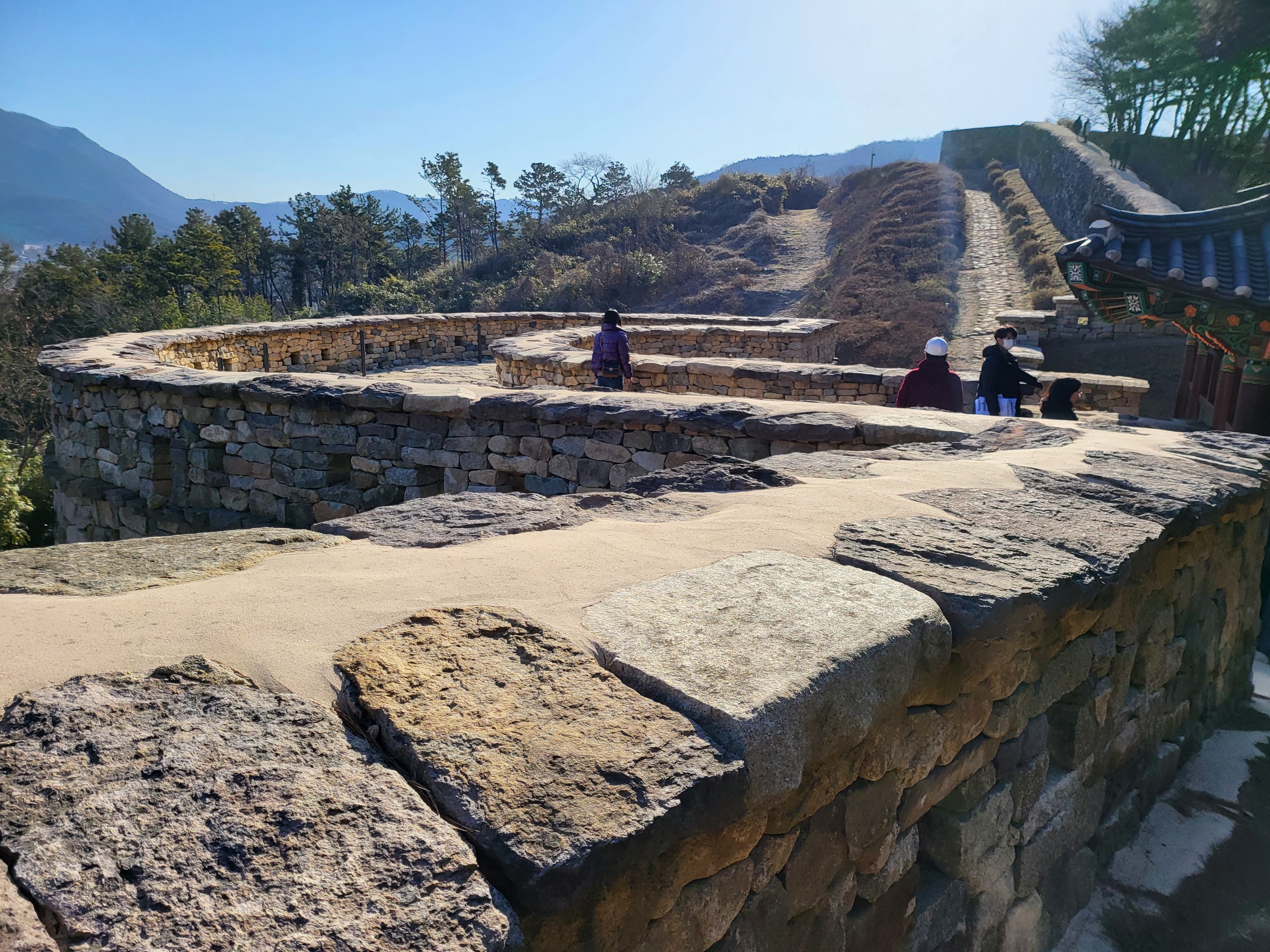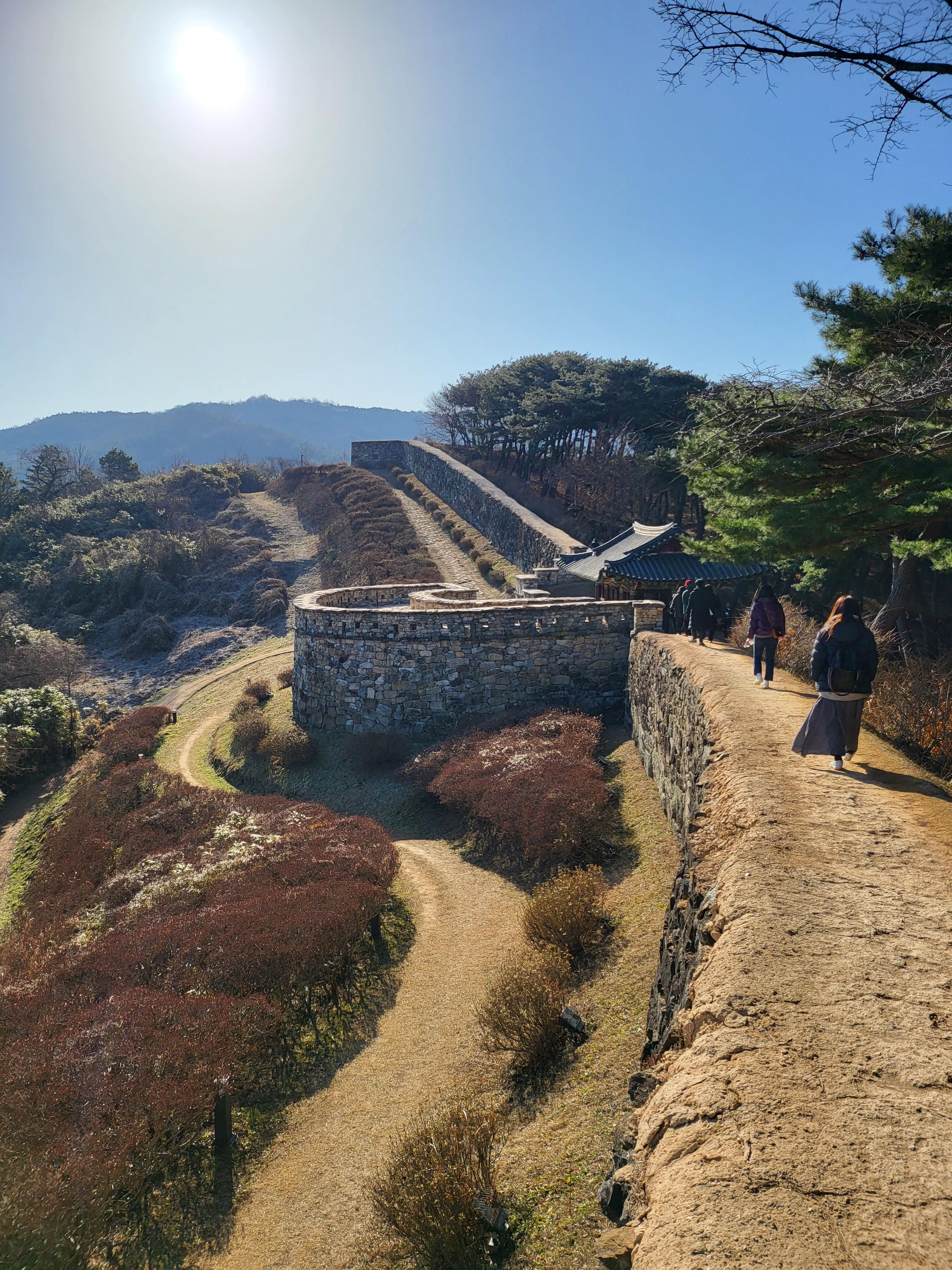 남벽을 따라 걷다 성에서는 해발 고도 가장 높은 지점에 복원한 성황사를 끼고선 아래로 질주하니 하긴 이곳이 산성이라 해도 비교적 평탄한 산곡을 끼고 객사와 부속 건물들을 배치한 읍성은 전체 둘레 1.6킬로미터라 완주가 어렵지는 아니하니 그래서 이곳을 찾는 사람이 더 많을지 모른다.
