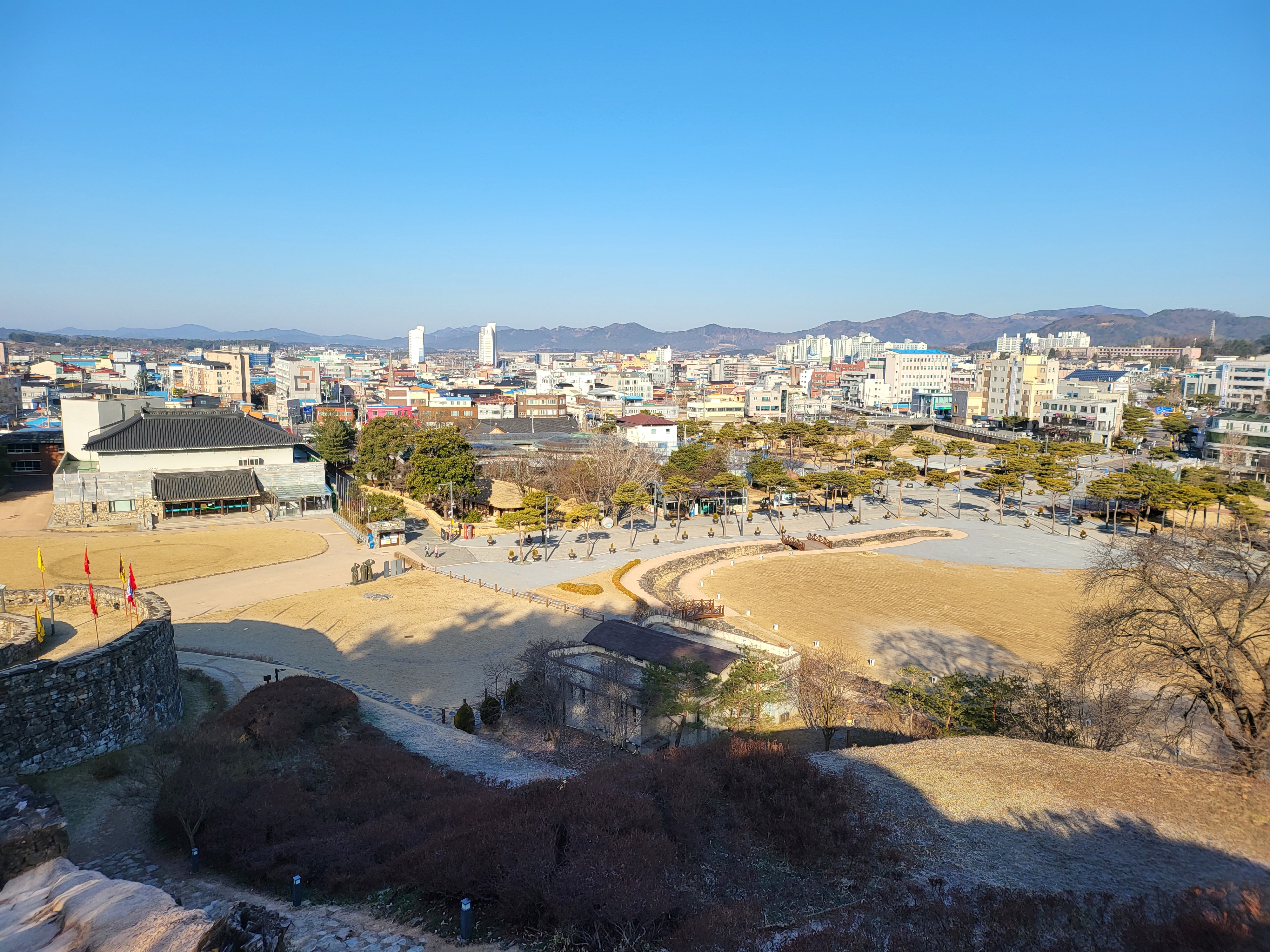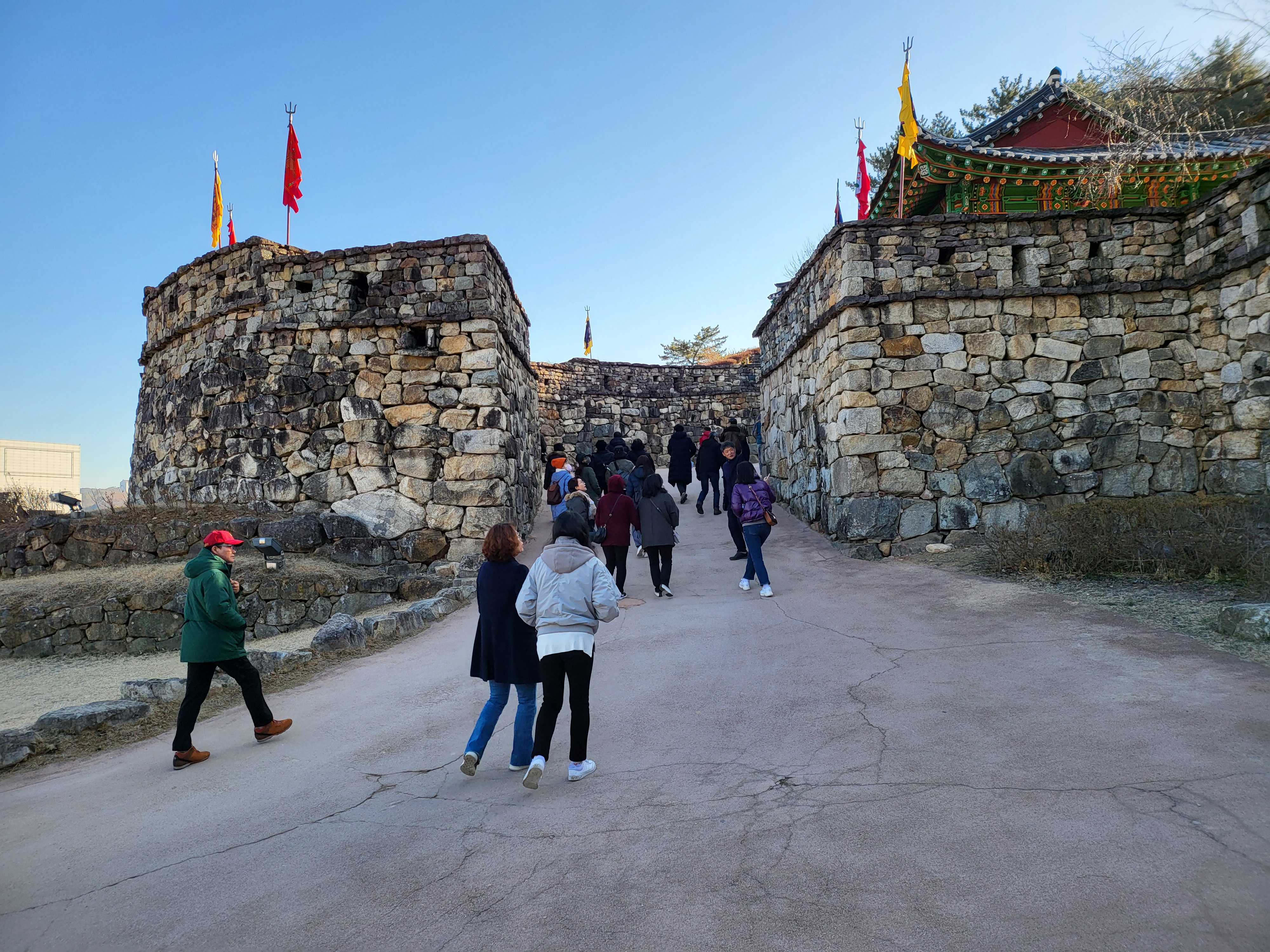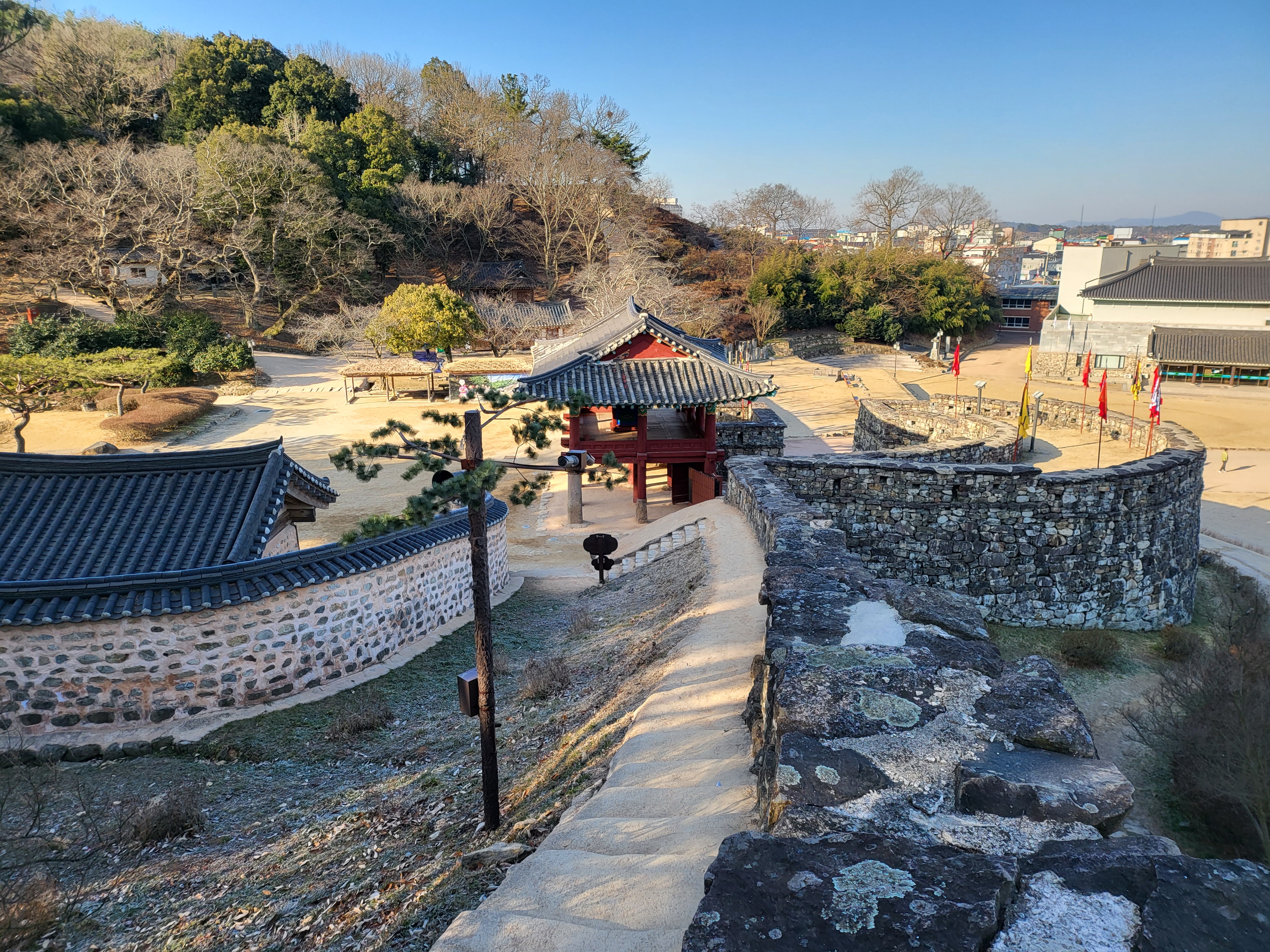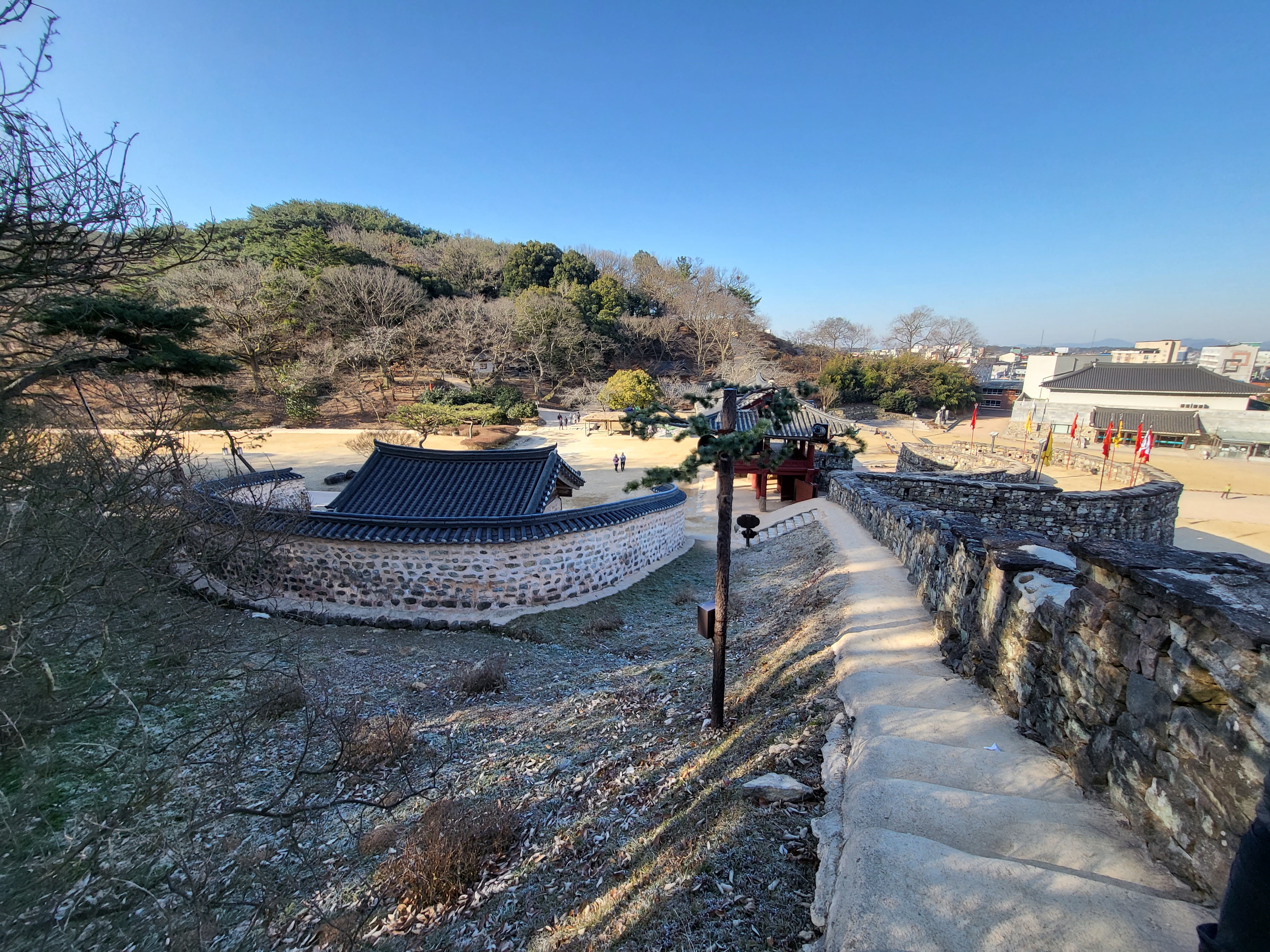 남벽을 따라 걷다 성에서는 해발 고도 가장 높은 지점에 복원한 성황사를 끼고선 아래로 질주하니 하긴 이곳이 산성이라 해도 비교적 평탄한 산곡을 끼고 객사와 부속 건물들을 배치한 읍성은 전체 둘레 1.6킬로미터라 완주가 어렵지는 아니하니 그래서 이곳을 찾는 사람이 더 많을지 모른다.