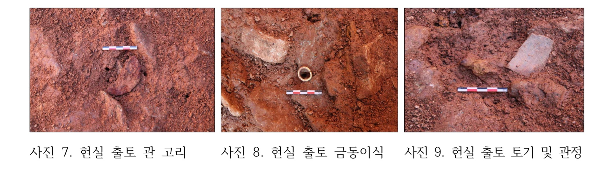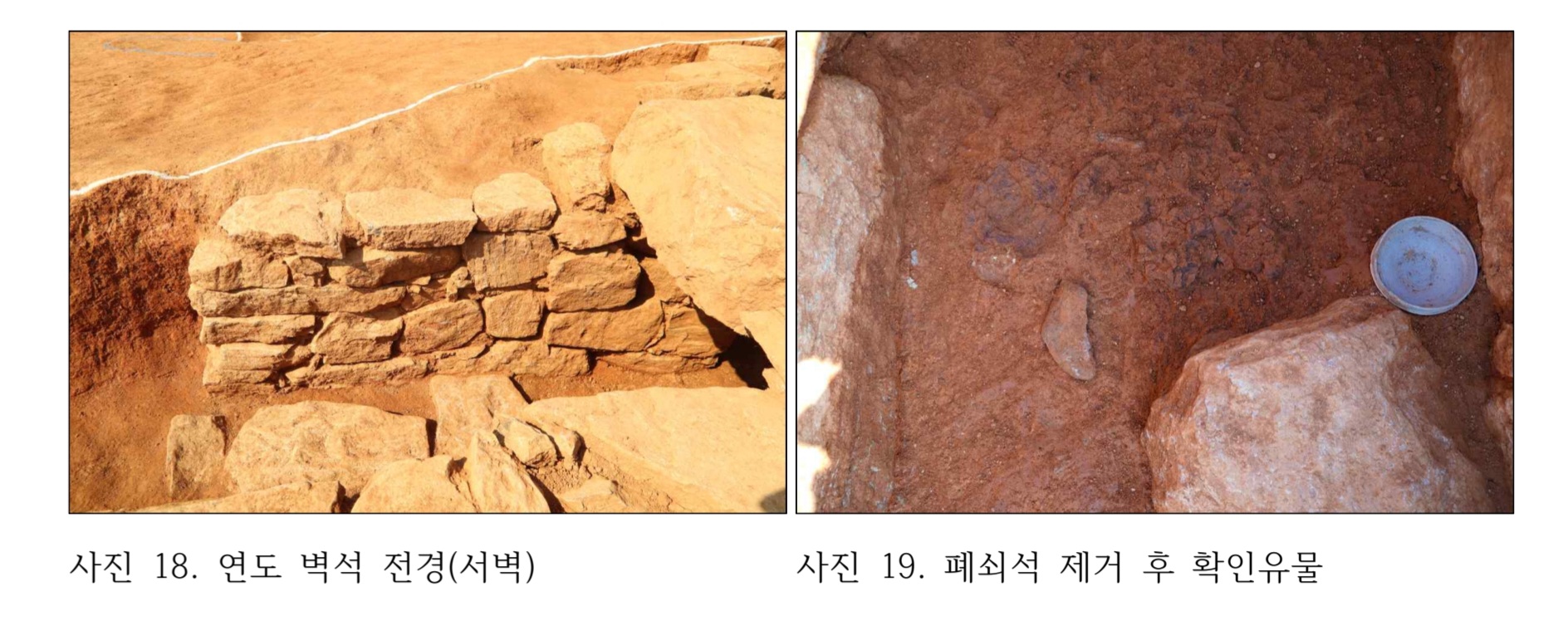 또한, 주변으로 형태를 알 수 없는 유기물흔이 분포하는 양상으로 보아 시신을 매납하고 현실 입구를 폐쇄하는 전 제의행위가 일부 이루어진 것으로 추정된다.