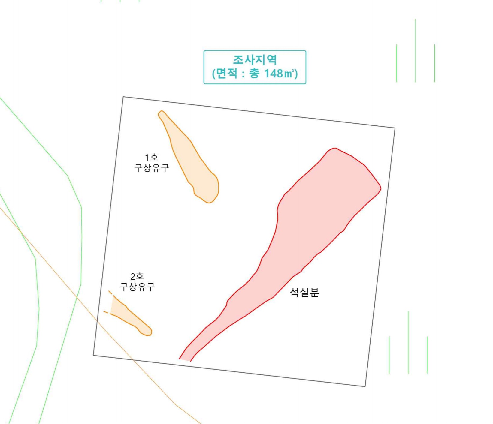 ∎ 조사결과, 석실분 1기, 구상유구 2기가 확인됨.