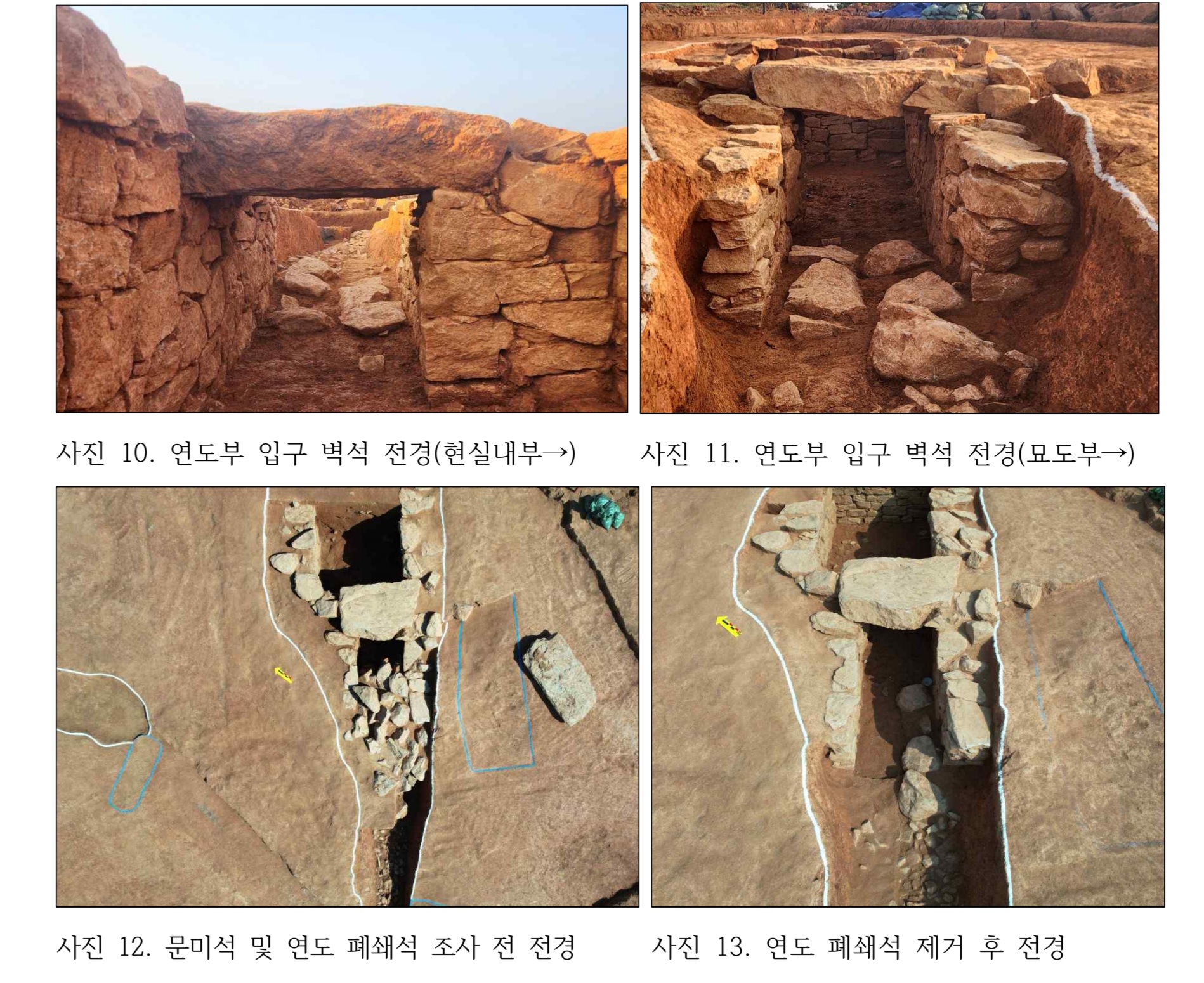 현실과 연도가 만나는 지점에는 문미석 1매가 확인되었다. 그리고 최초 노출된 개석은 연도 개석으로 경작과정에서 이동된 것을 확인하고 발굴조사 과정에서 드러내었다.