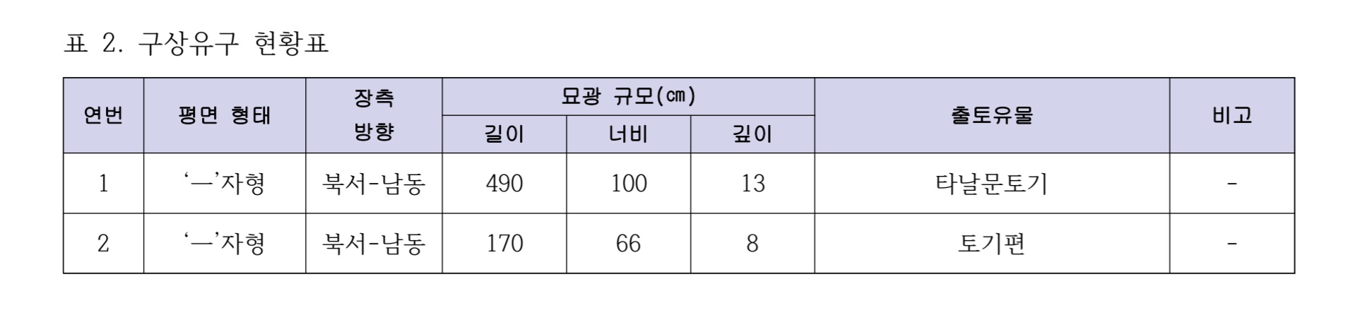 ∎ 조사결과, 석실분 1기, 구상유구 2기가 확인됨.
