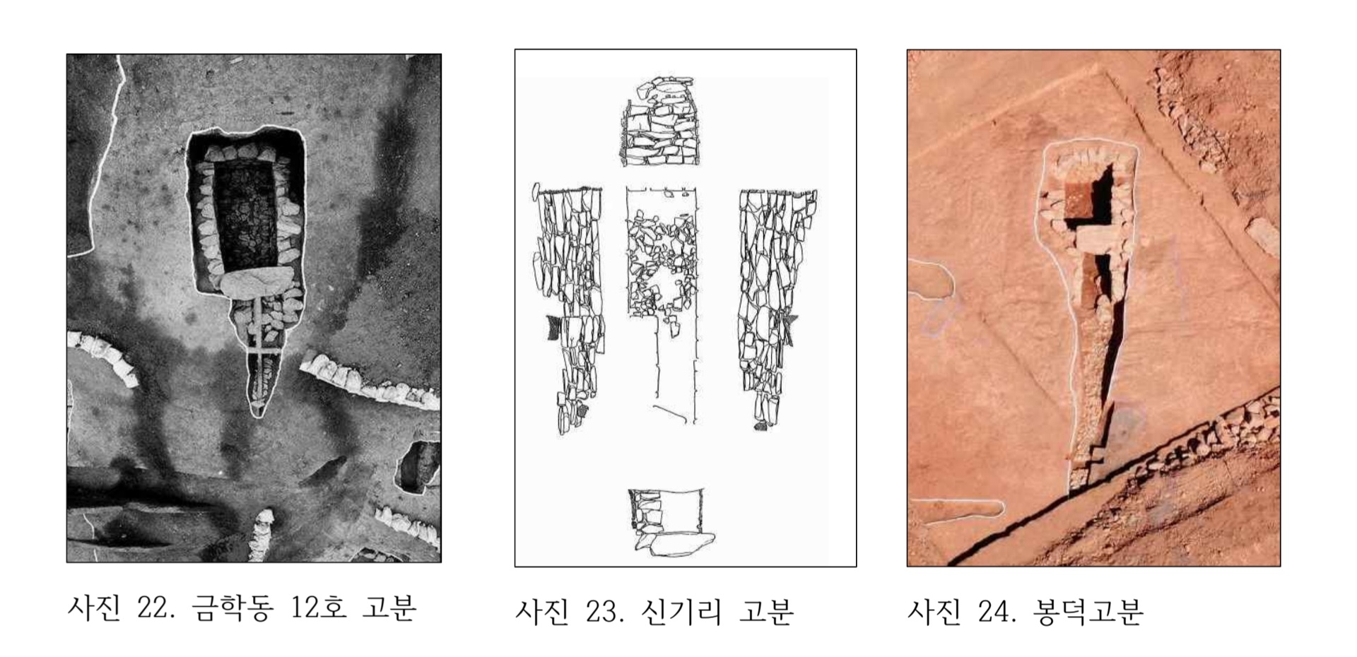 ∎ 즉, 백제 중앙묘제라고 일컫어지는 편재된 연도의 변형궁륭천정 석실분 구조인 점은 일맥 상통하나 출토된 토기나 바닥면에서 수습된 옥 등은 고창 지역의 마한 문화의 맥락을 하고 있은 것으로 판단됨.