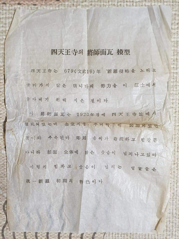 언제인지는 모르겠지만 아마 경주시청과 경주경찰서에서 방문자들에게 선사할 기념품조로 선생께 두 작품을 대량으로 주문한 모양이다. '신라의 미소' 쪽 끈이 삭아 떨어진 걸 보나, 같이 남은 해설문 글투를 보나 연대가 그래도 꽤 올라감직 하다.