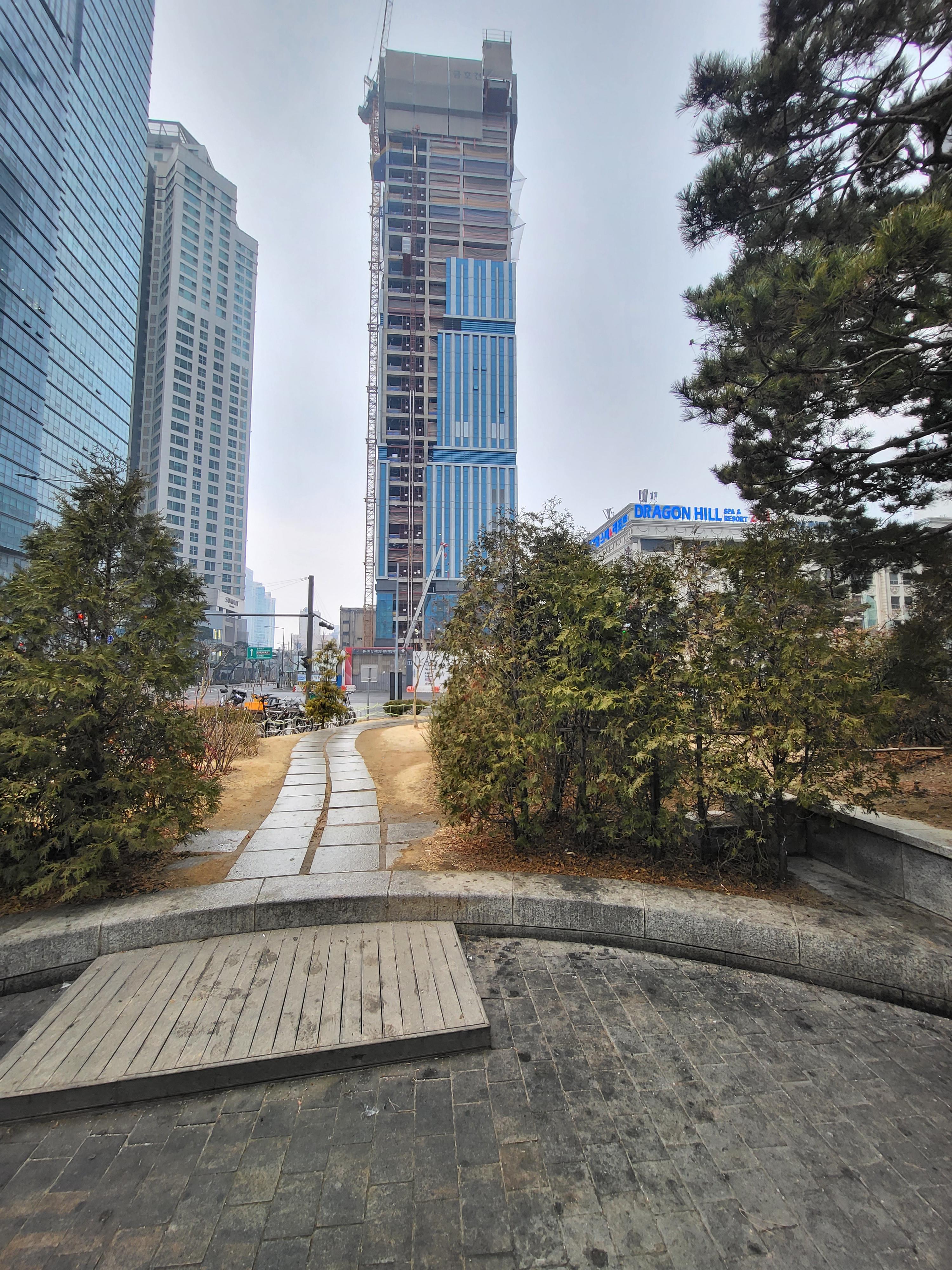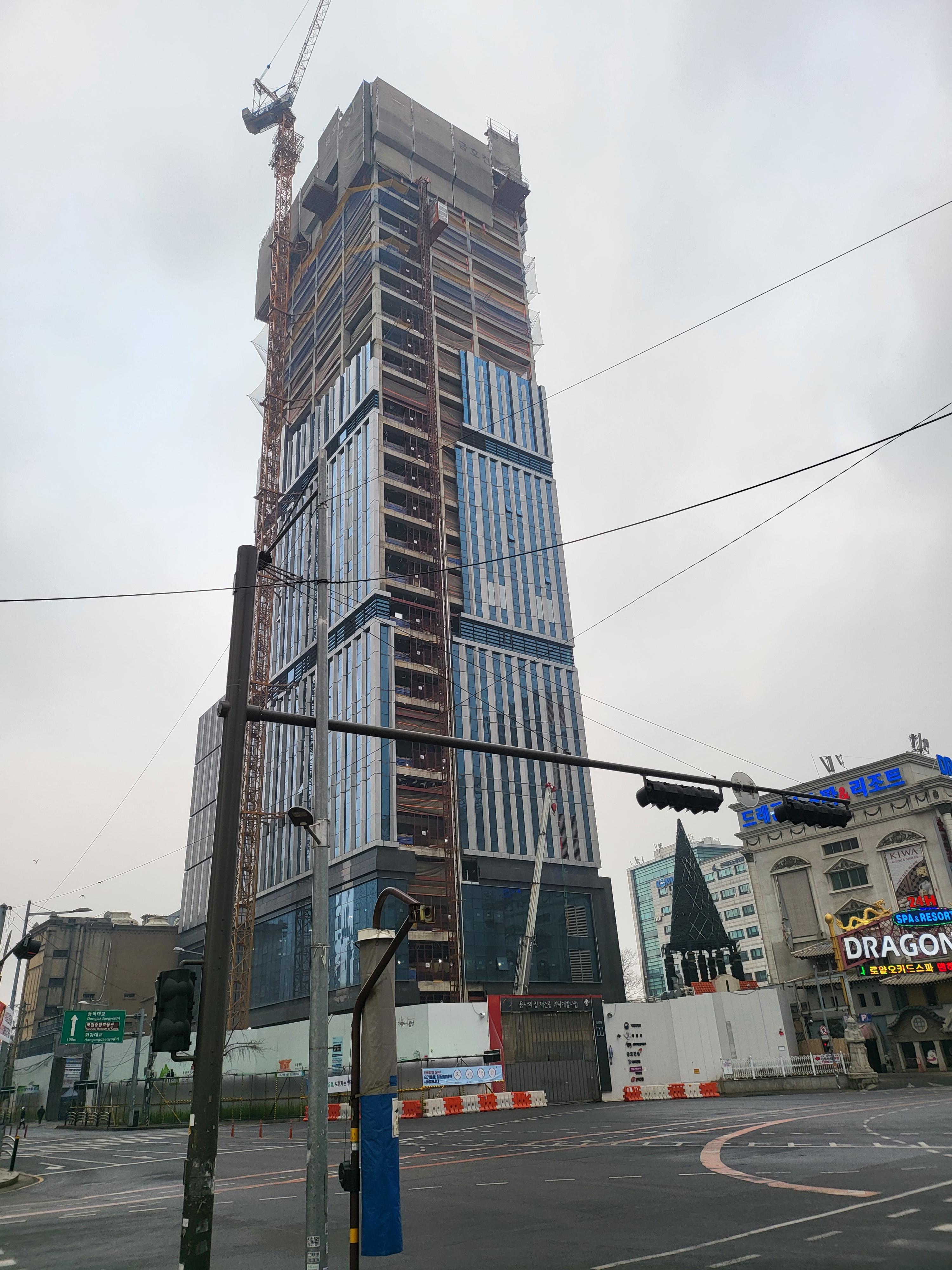 기억에 2층 혹은 3층 정도 아담 사이즈였던 이곳이 재건축에 들어간다더니 저리 모습이 바뀌는 중이다.
