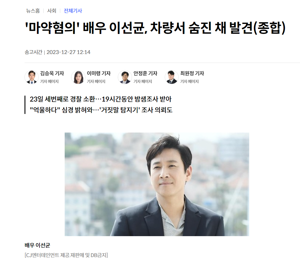 그래 설사 이선균이 마약을 했다 하자, 흘러나오는 소리로는 억울함을 주장했다 하며, 본인도 속았다고 하는데, 그렇다고 저렇게 세 번인가를 거푸 불러대면서, 일종의 포토라인을 세우게 하니, 설혹 그가 마약을 했다 해서 저리 모욕을 당해도 싸다는 근거는 하늘에도 없고 땅에도 없다.