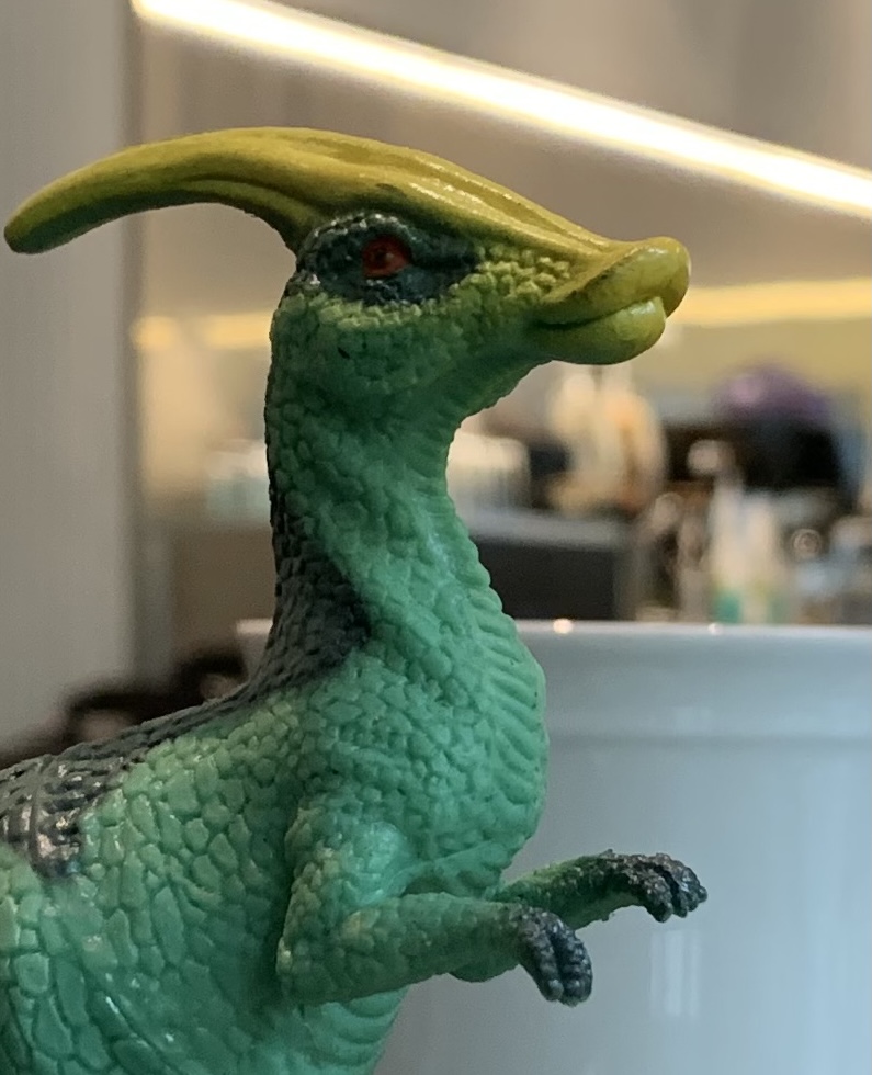 머리에 있는 커다란 볏 때문에 “볏을 가진 도마뱀에 가까운” 뜻을 가진 파라사우롤로푸스 이름을 가지게 되었다고 하네요!