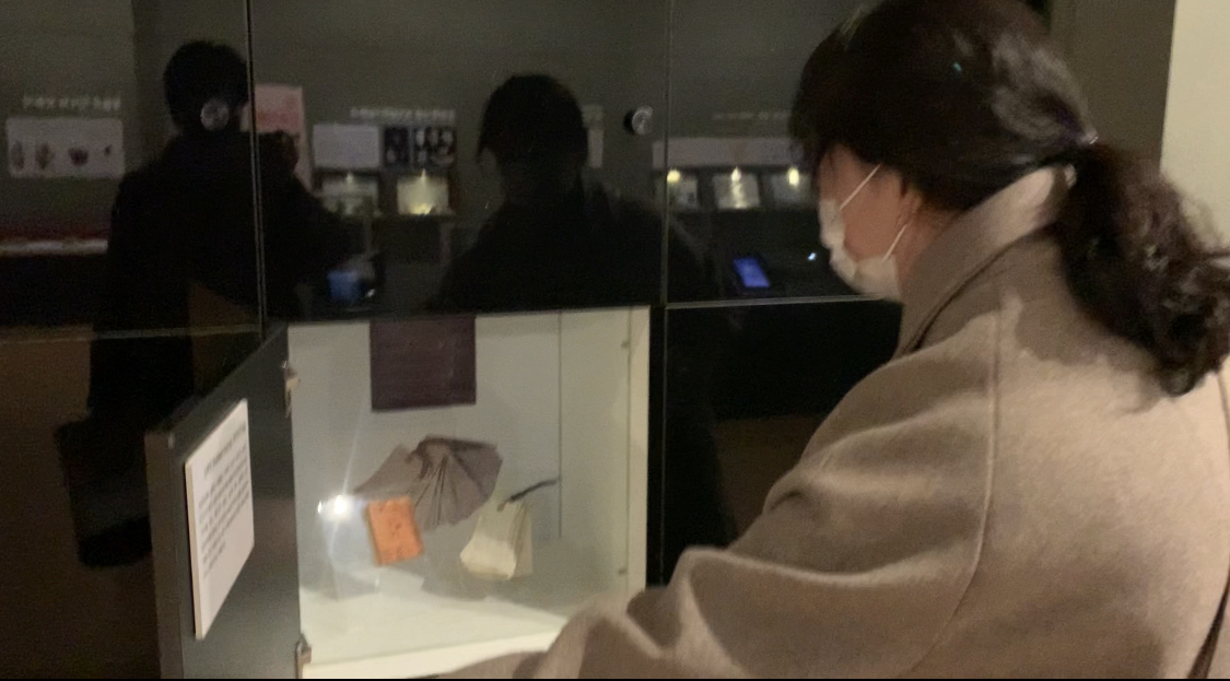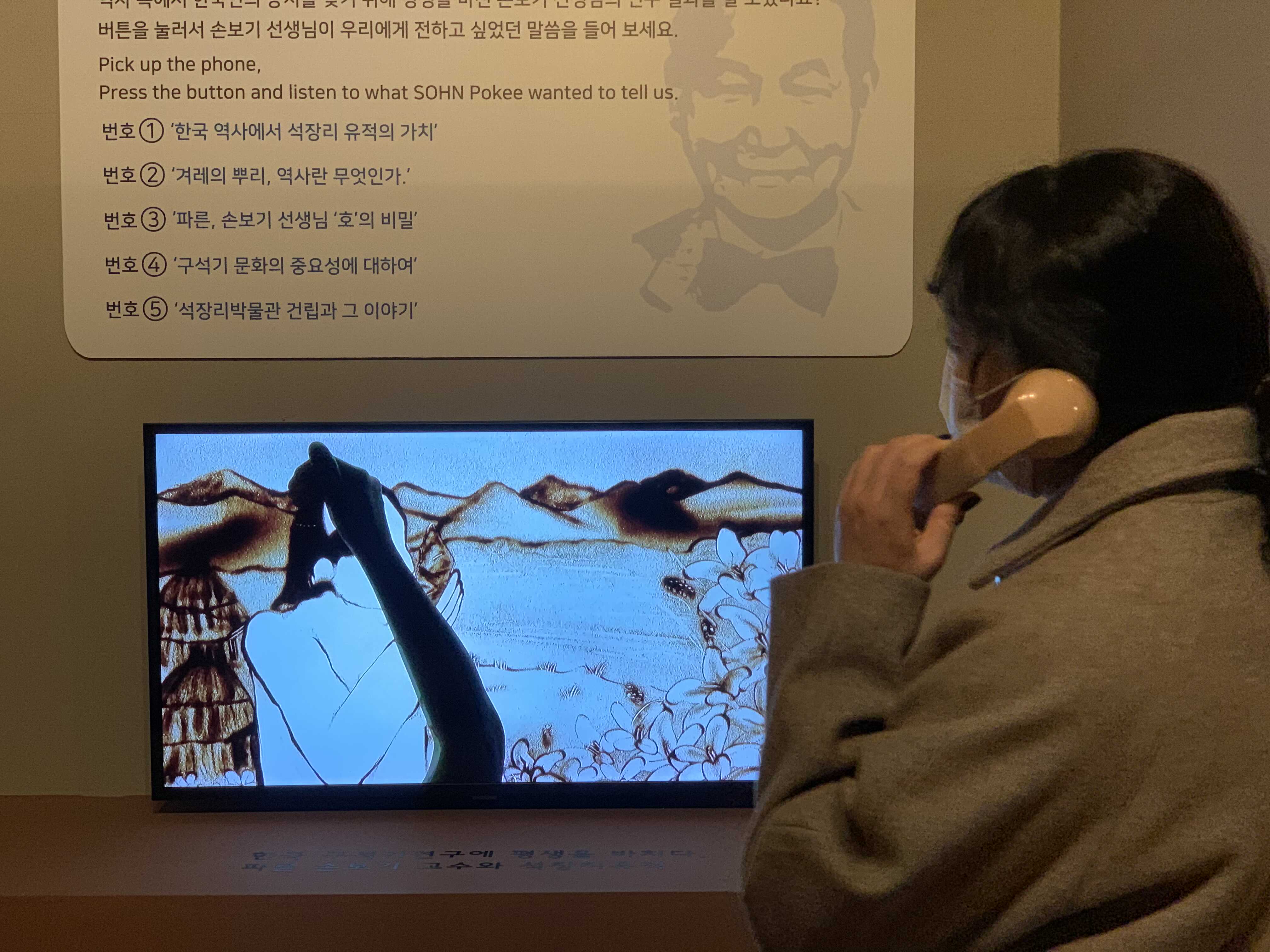 유물 앞에 있는 해드폰을 끼면 할머니 목소리로 정감있게 유물을 설명해 줍니다.