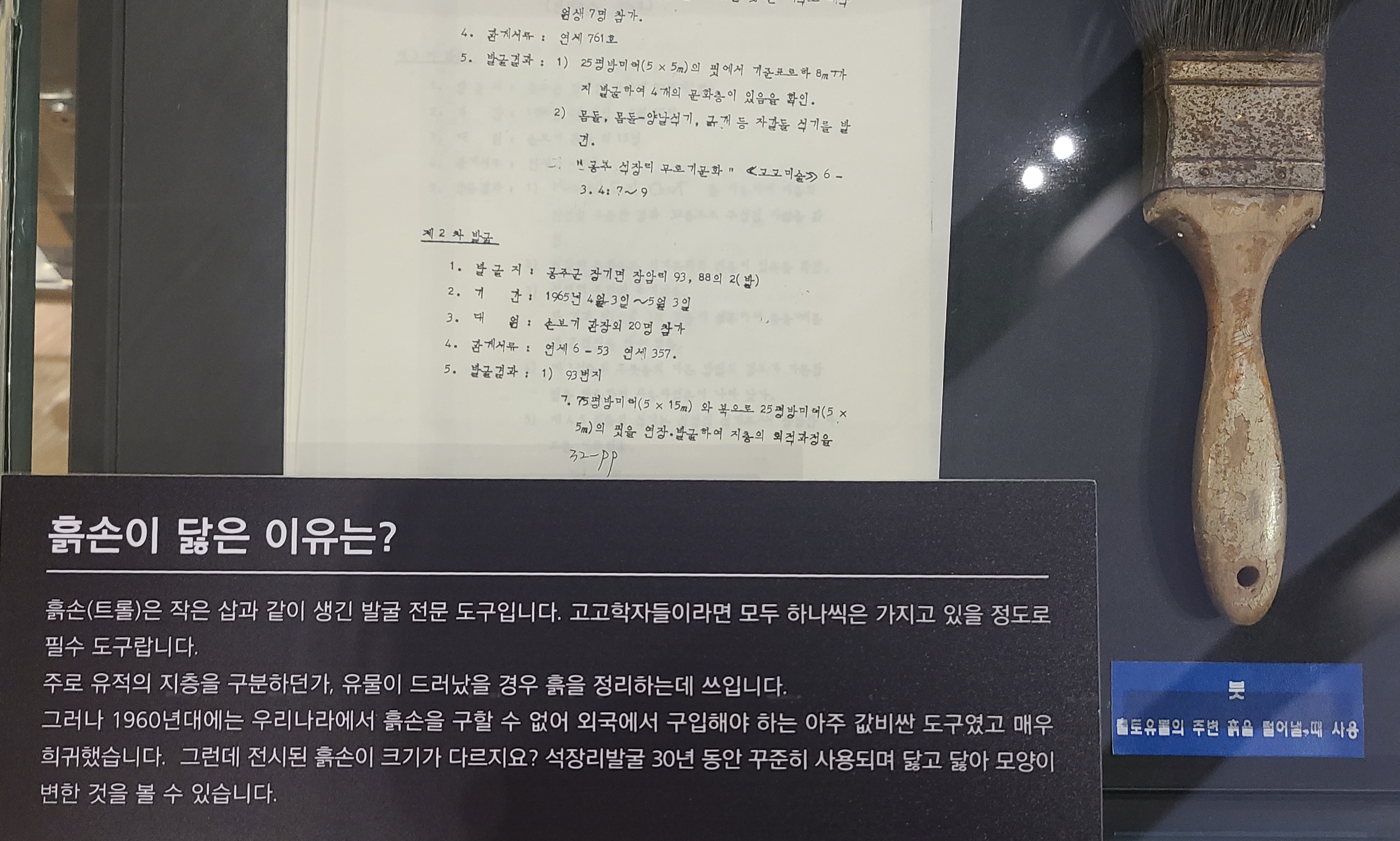 여하튼! 그래서 석장리박물관에는 별도로 <파른 손보기 기념실>이 있습니다. 발굴 당시 모습, 사진 자료 등을 볼 수 있습니다.