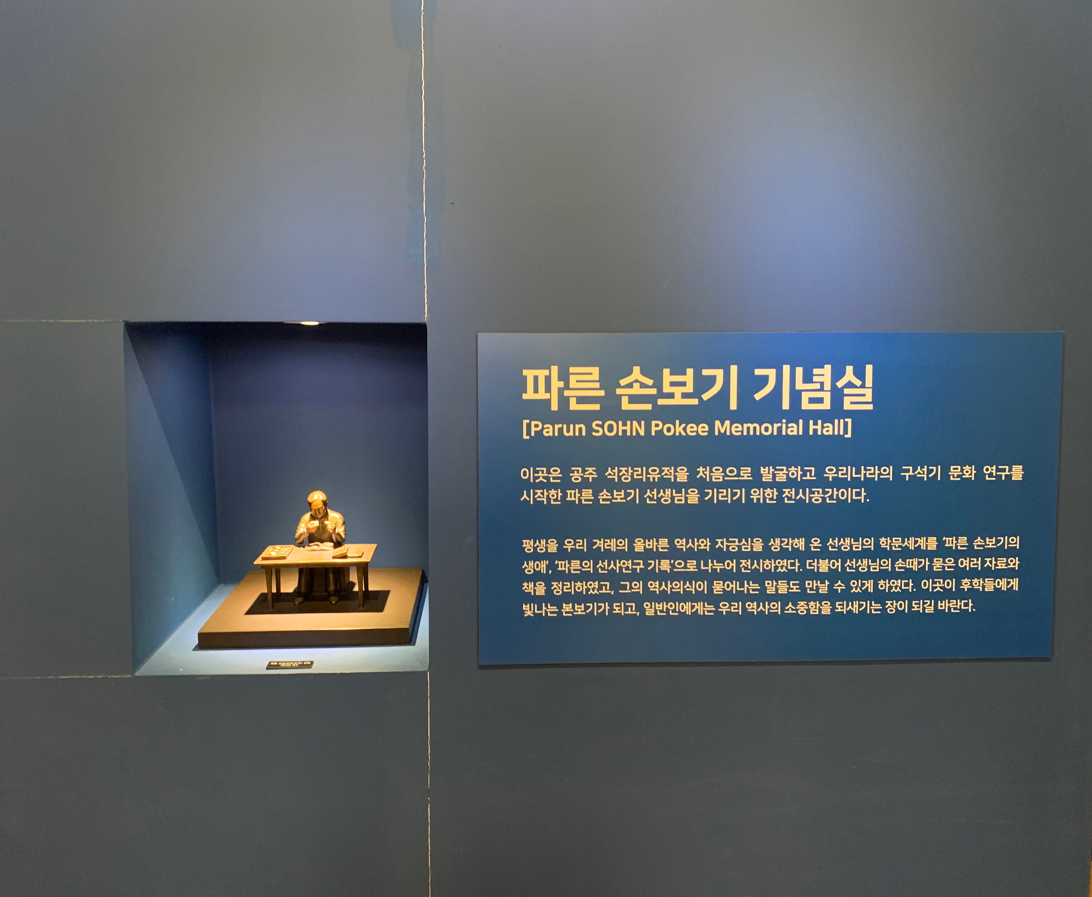 석장리 선사유적 발굴과 관련한 이야기를 하다보니, 마지막 전시실인 <파른 손보기 기념실>부터 소개하게 되었습니다.