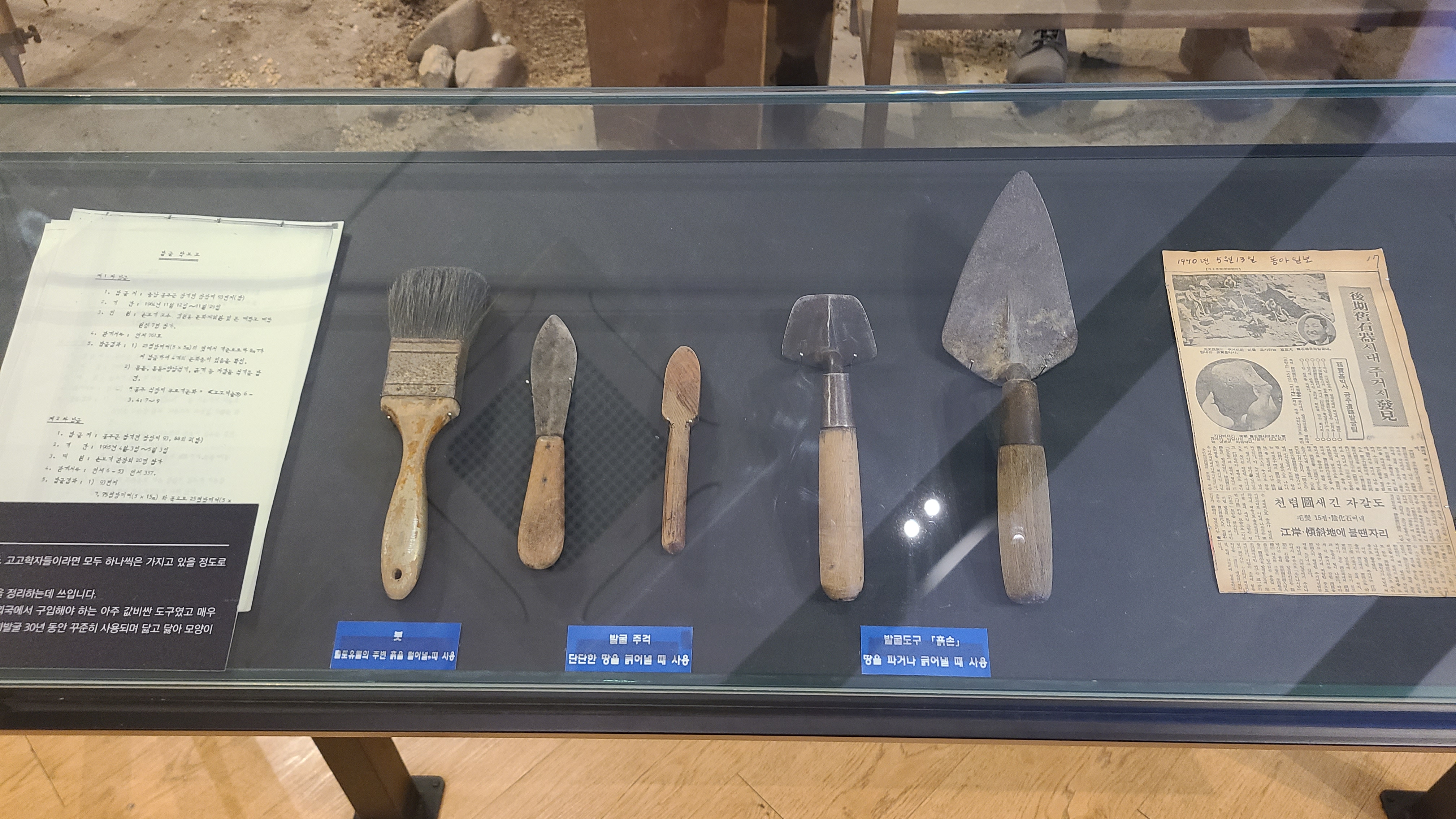 위에 사진은 물품보관함이 아니고, 서랍을 활용한 전시장입니다. 유물과 발굴에 사용했던 도구 그리고 기록 자료가 안에 들어있습니다.
