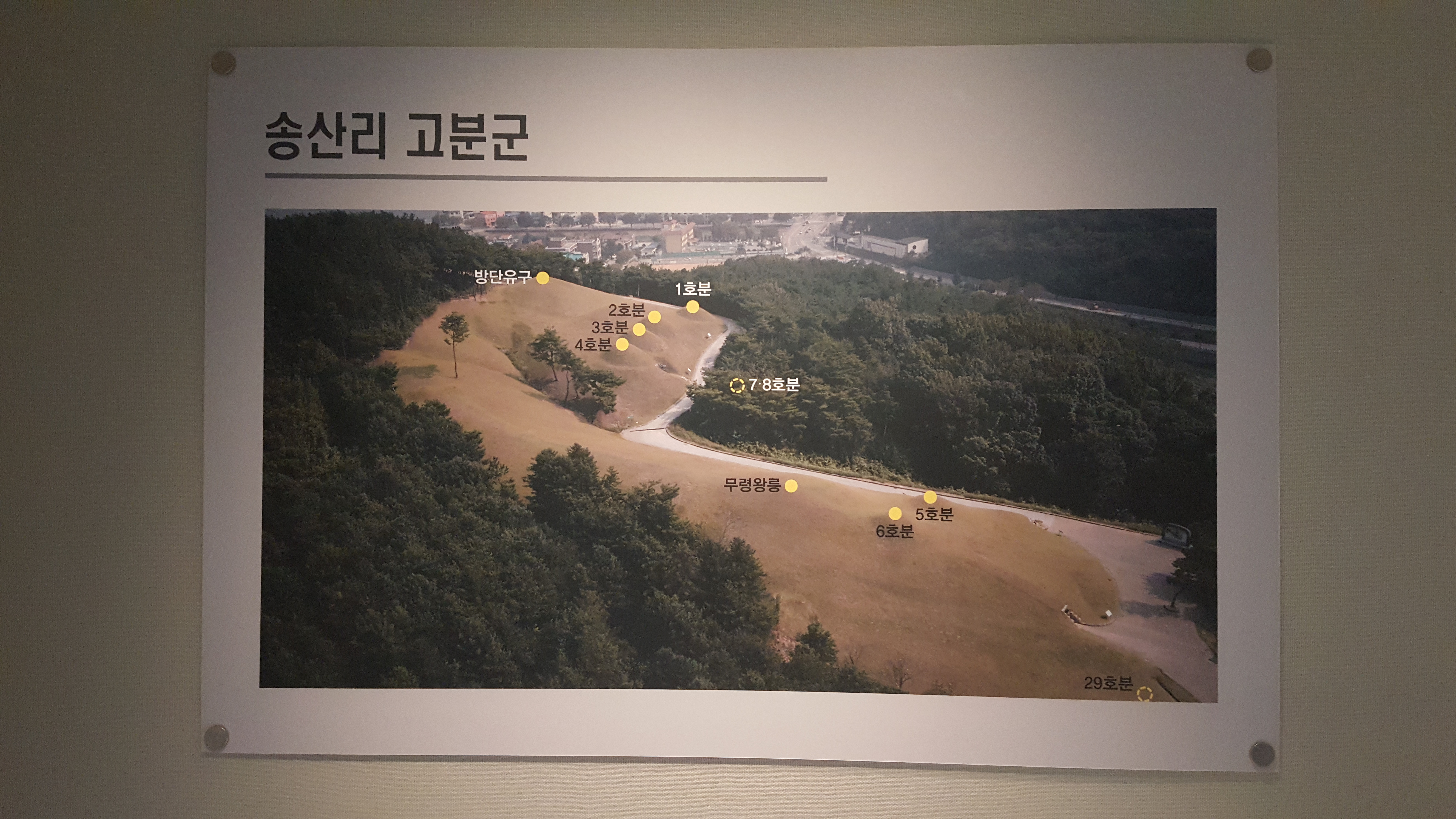 1~4호분 전면 소나무 숲에 7·8호분이 땅속에 묻혀 있고, 나아가 이번에 발굴한 29호분이 무령왕릉 전면에 위치한다. 저 지도를 보면 오른쪽 하단에 29호분이라는 표시가 보인다.
