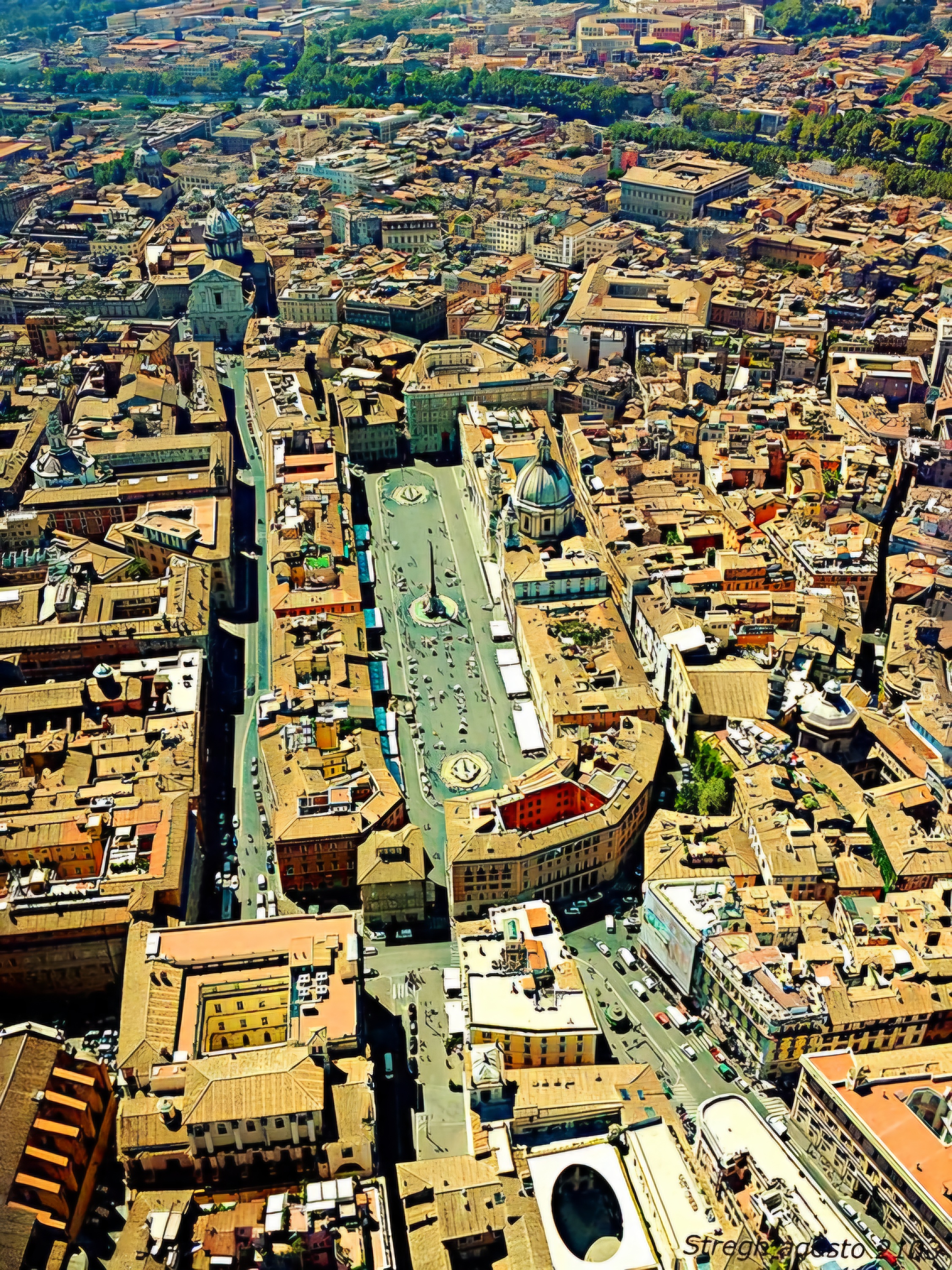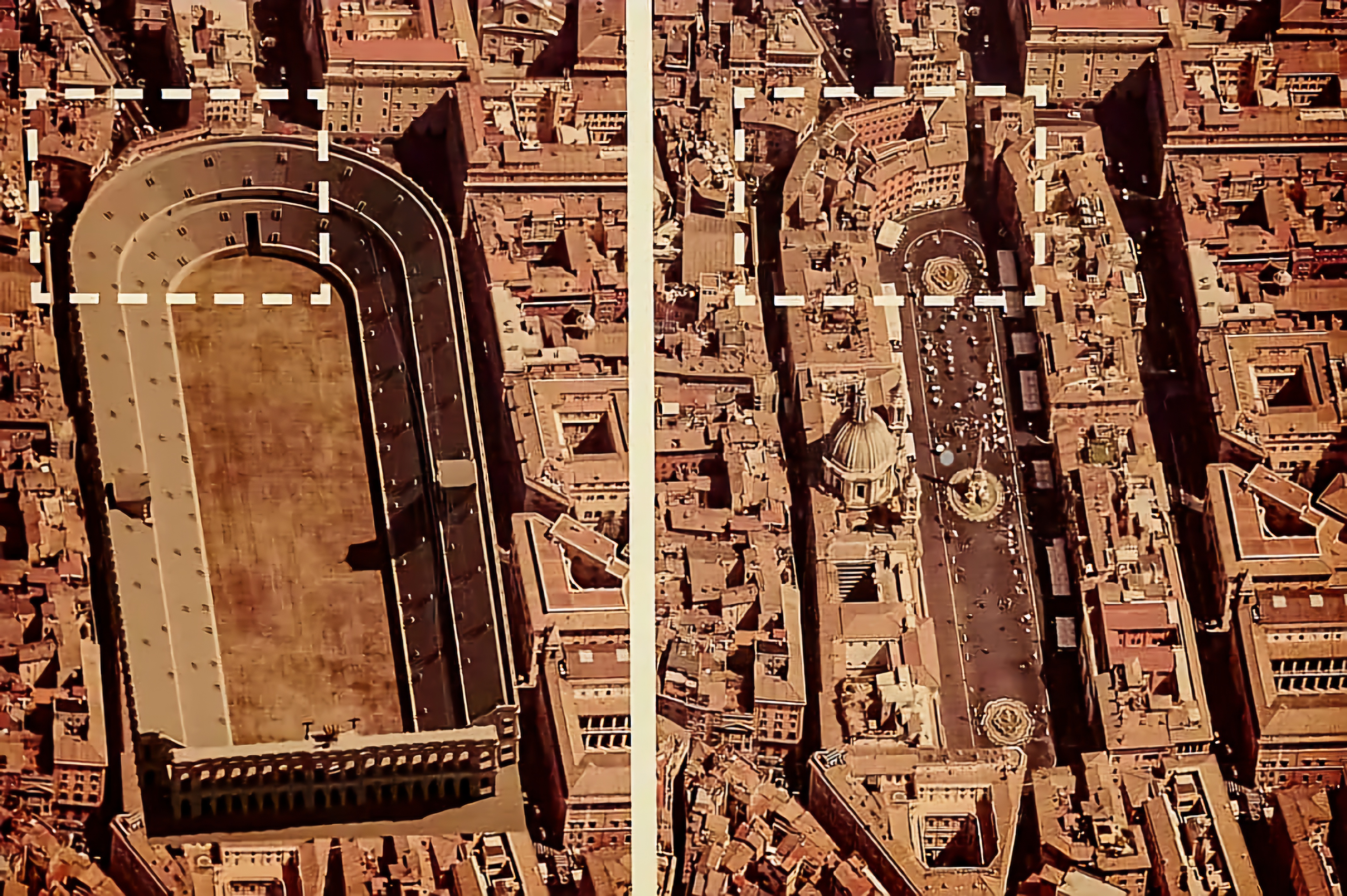 이를 보면 지금 남은 피아짜는 스타디움 운동장이고 관중석 테두리 시설을 따라 모조리 건물이 들어섰음을 본다.