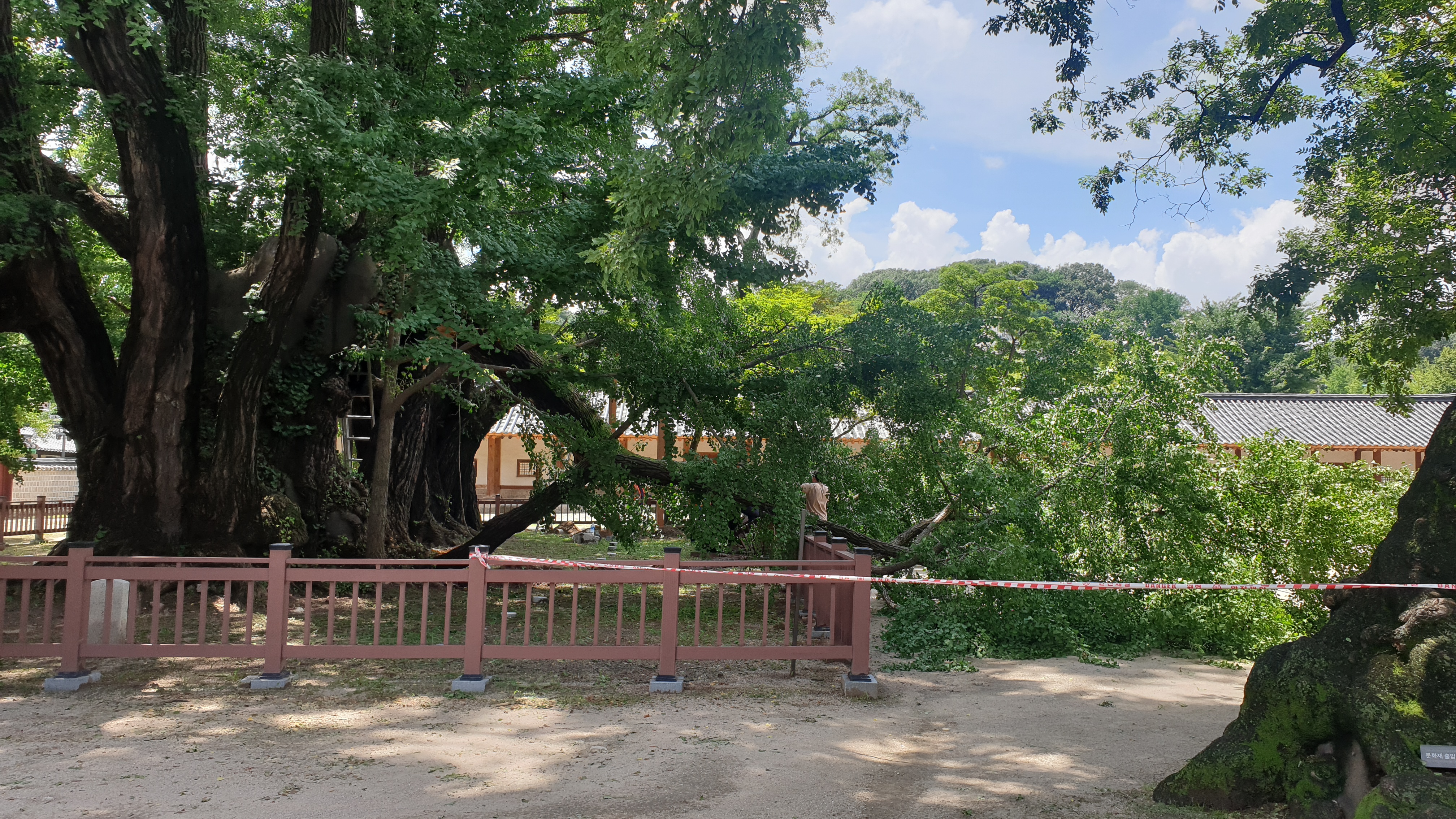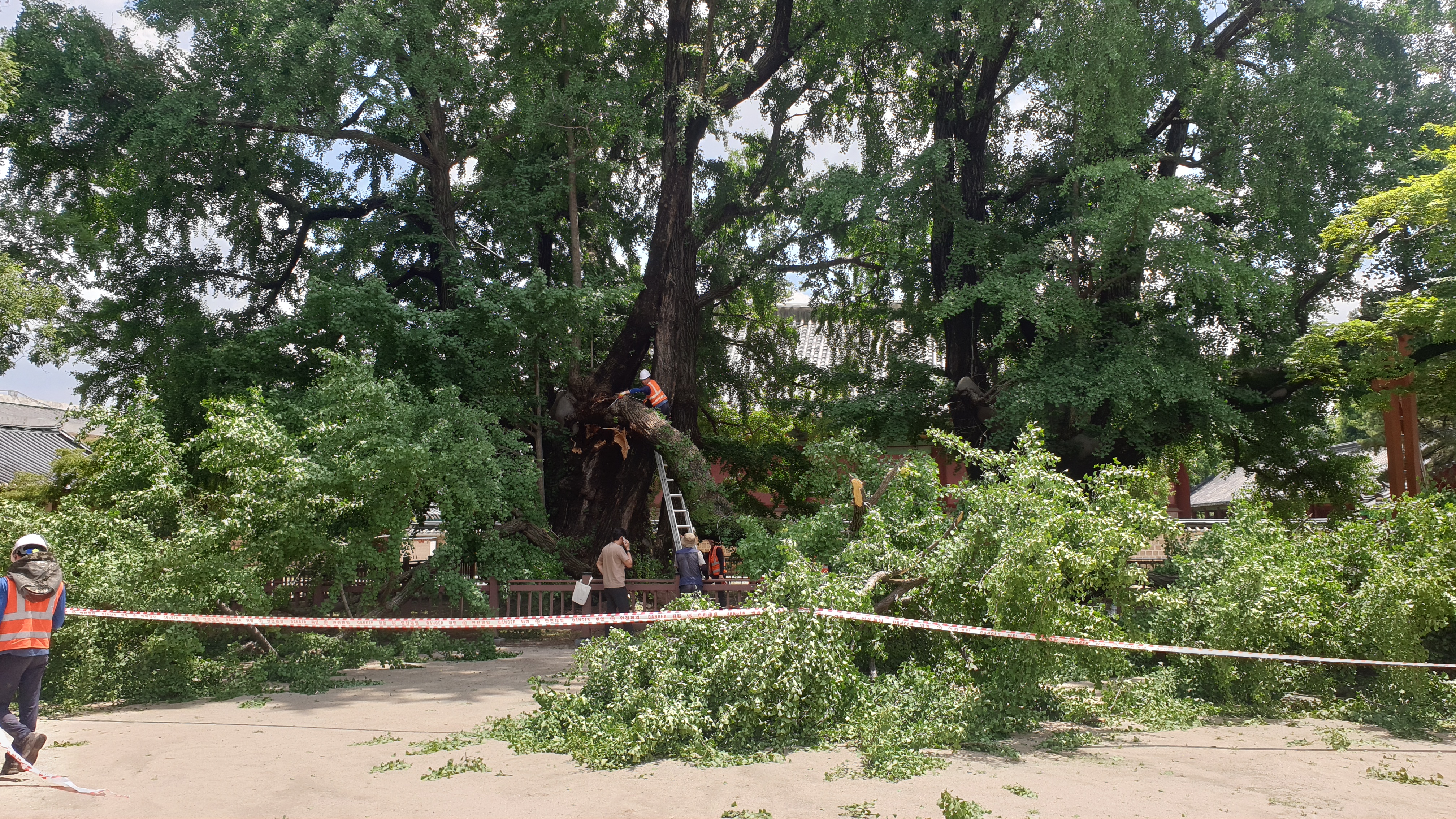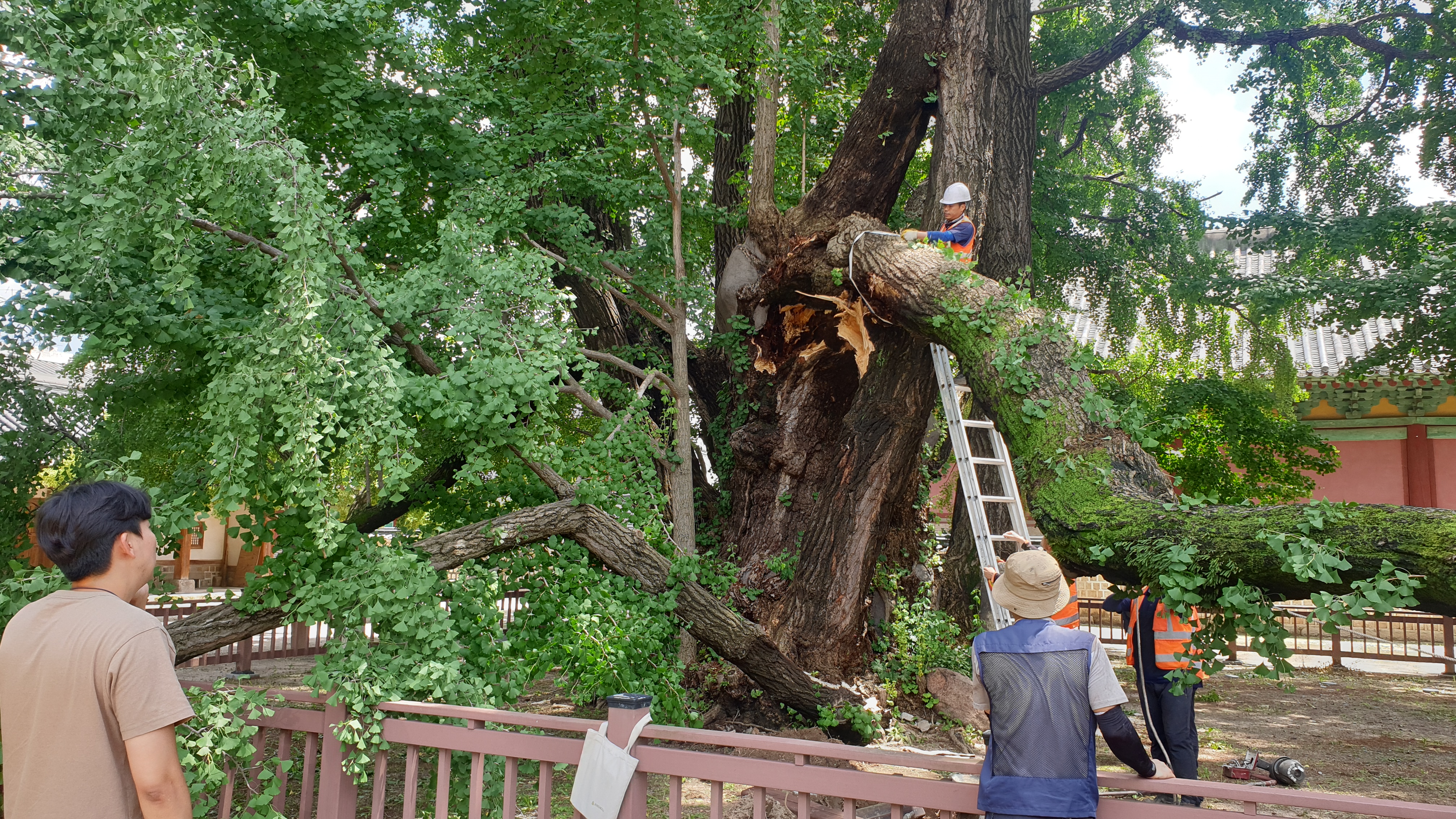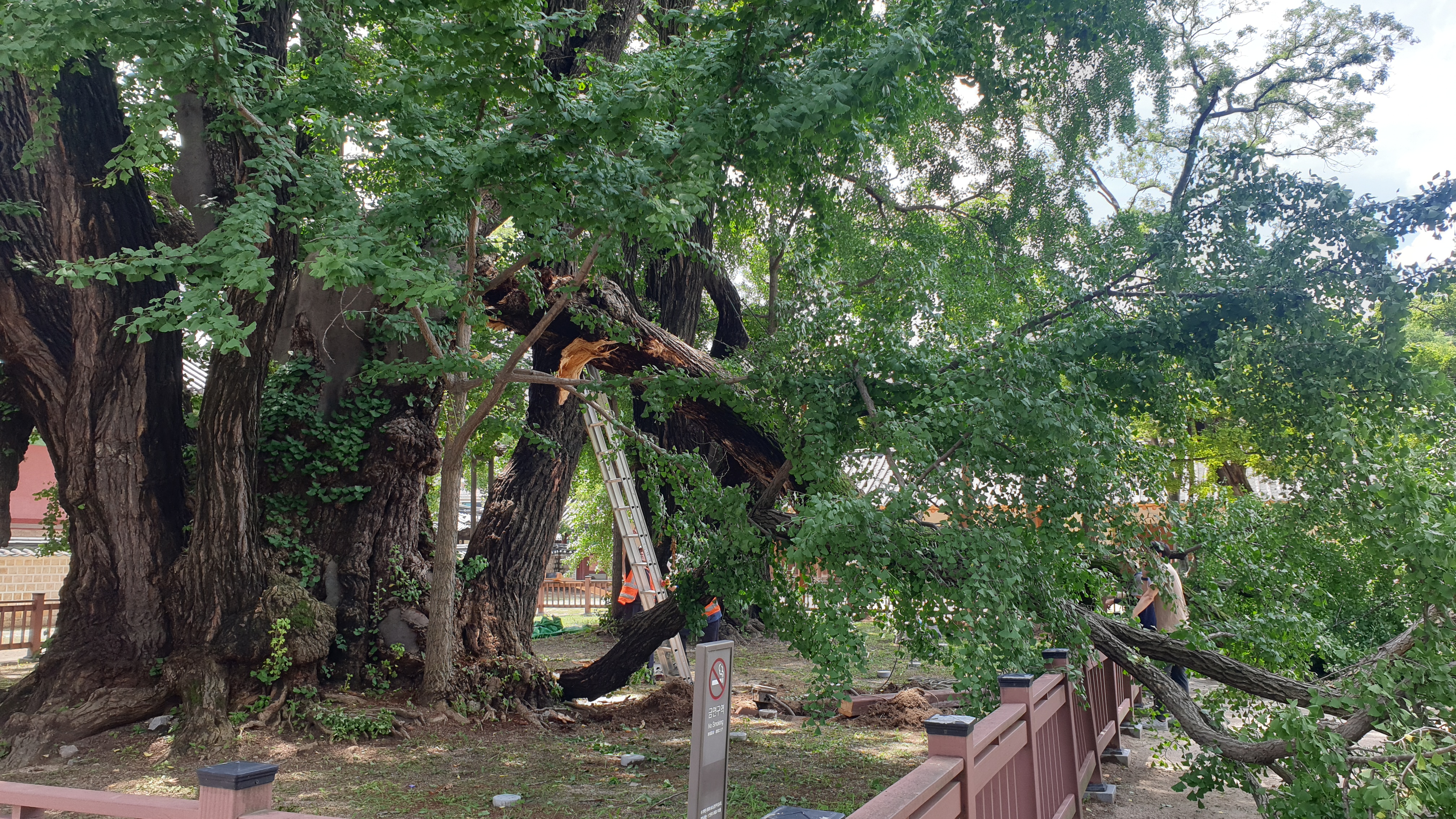 '400살' 천연기념물 은행나무, 지지대 교체하다 가지 부러져