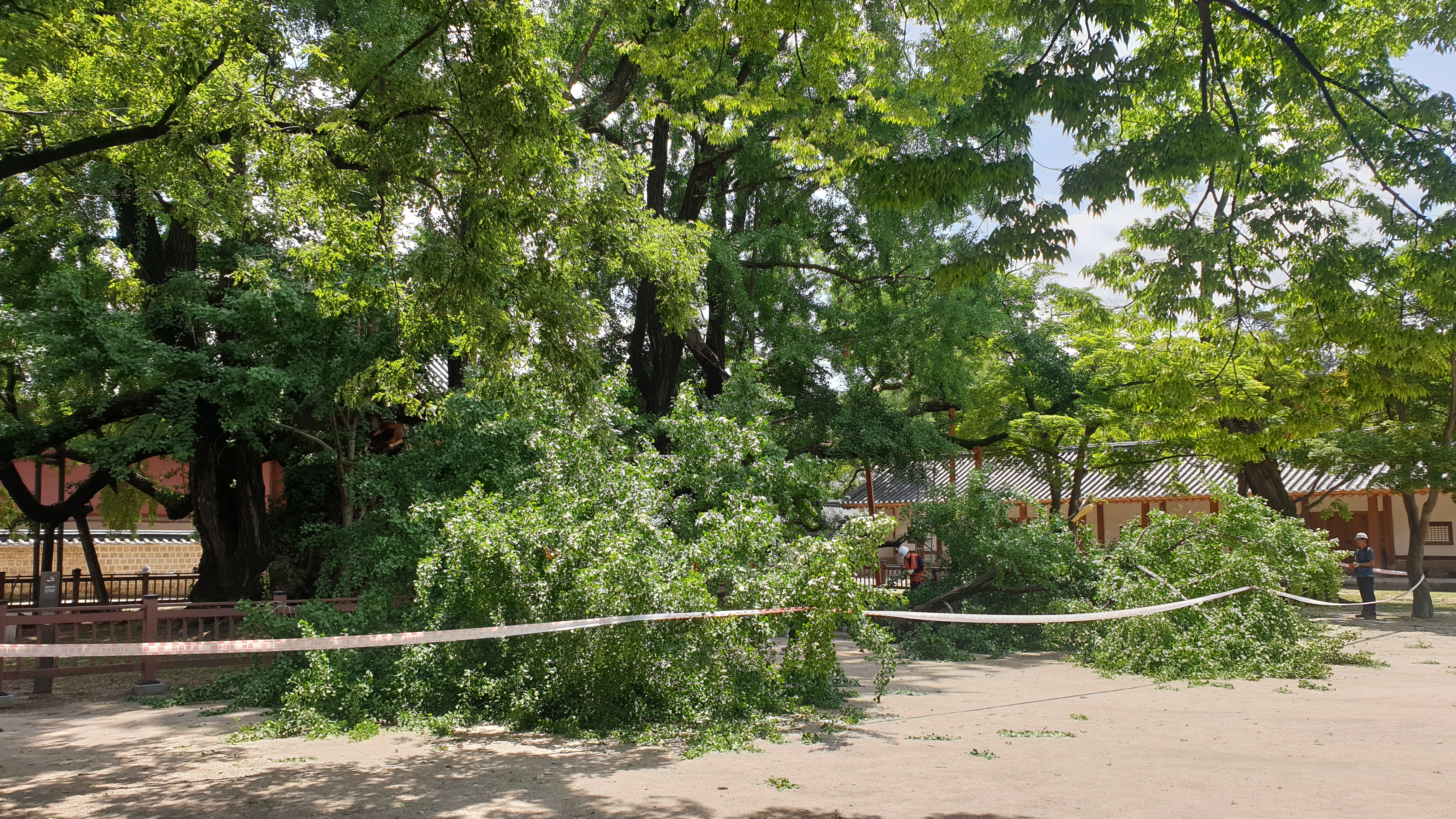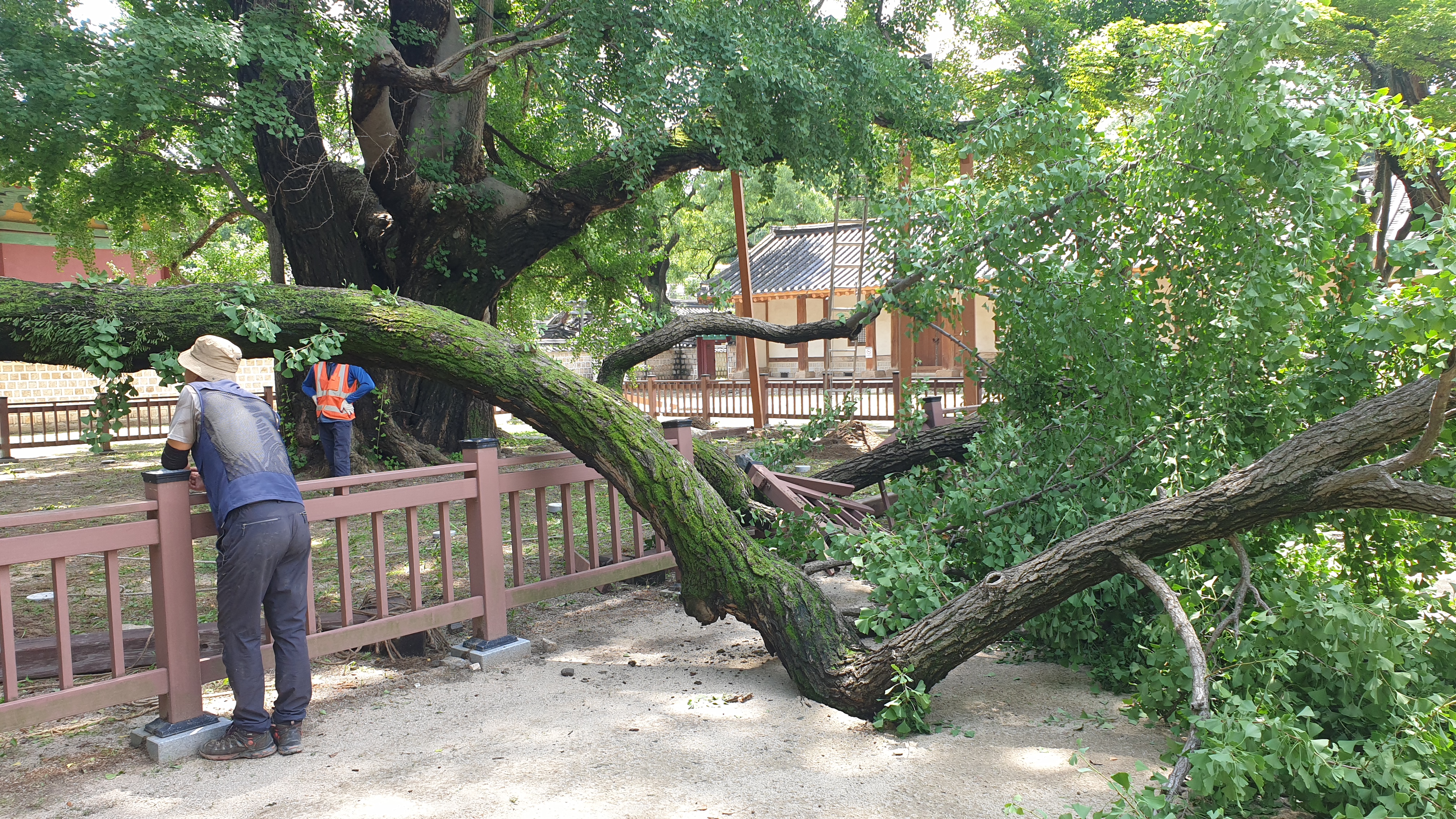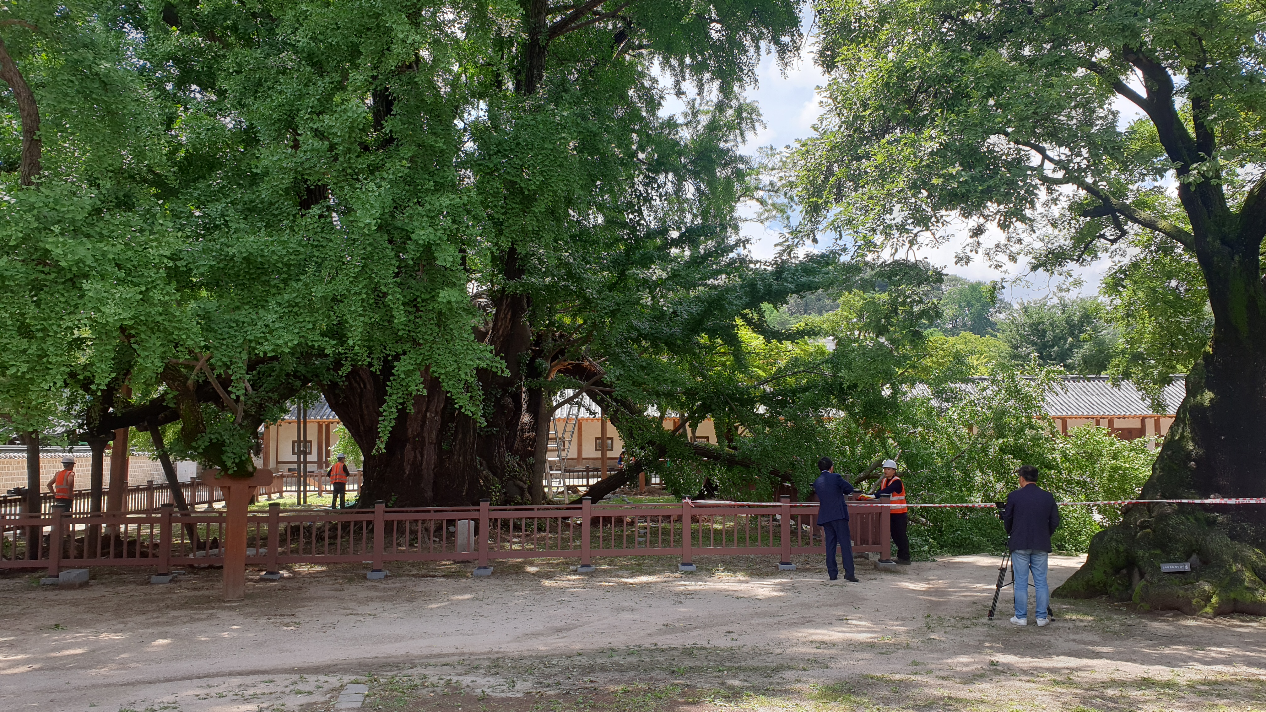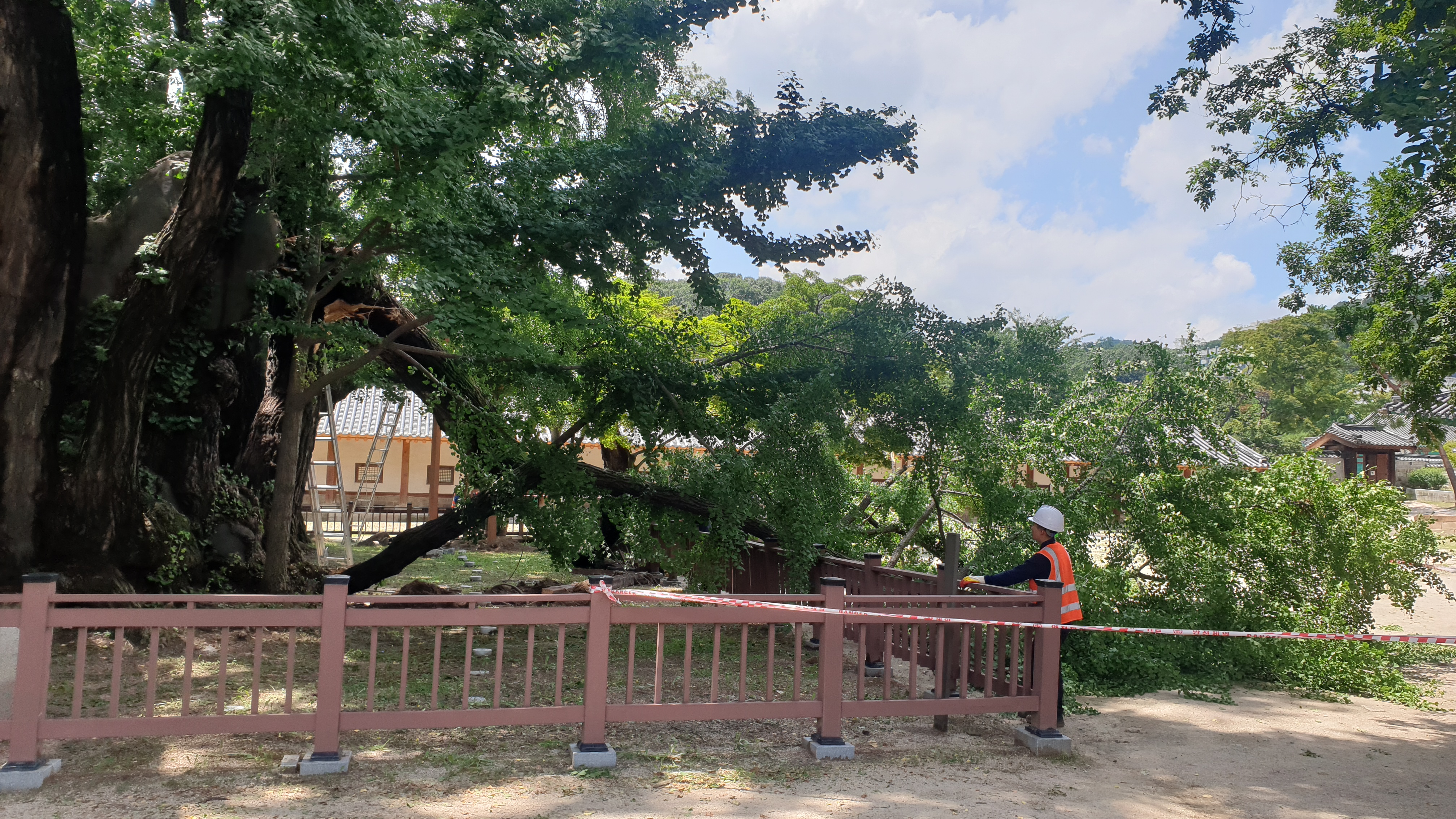 '400살' 천연기념물 은행나무, 지지대 교체하다 가지 부러져