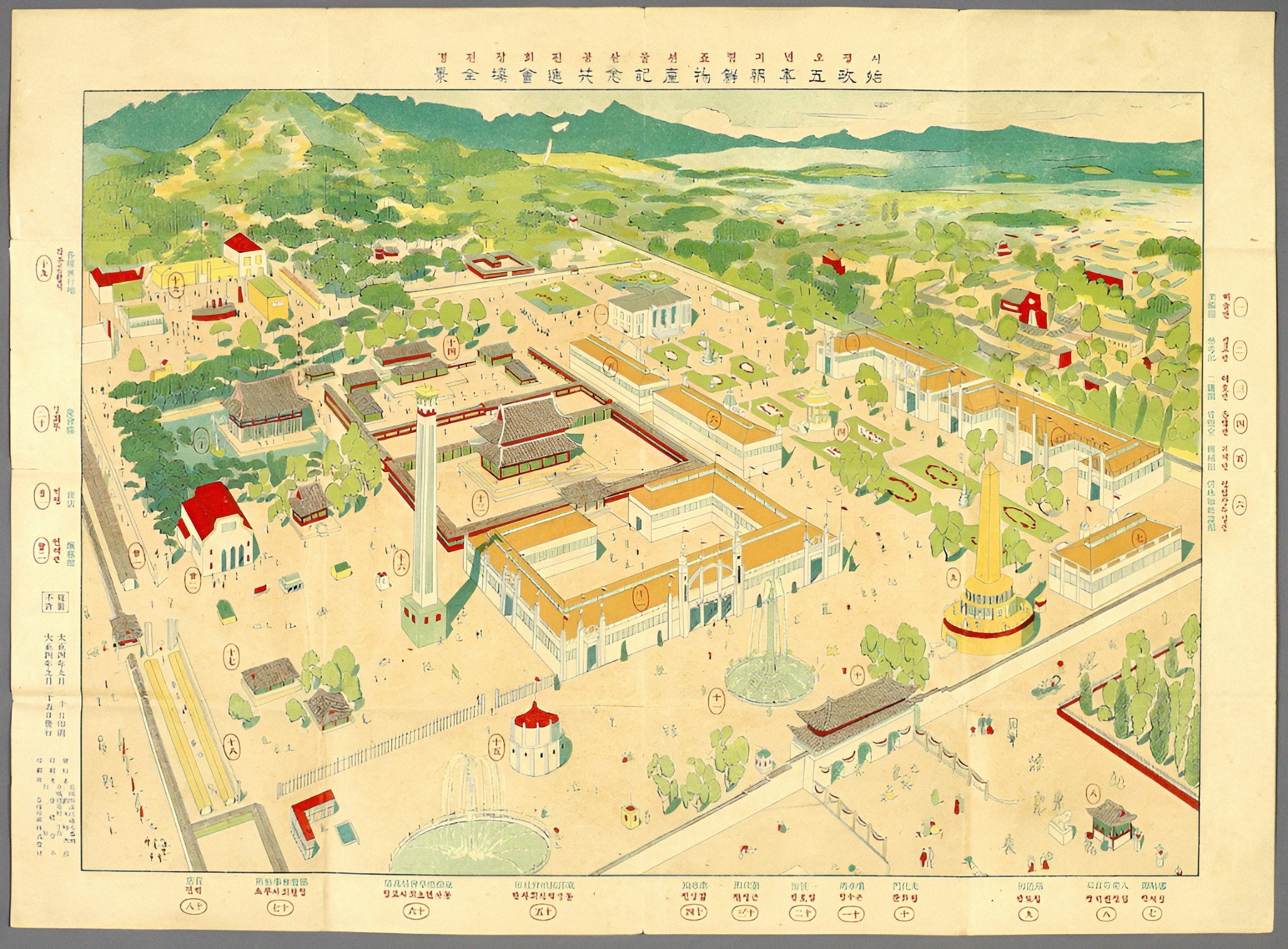 공진회는 구 경복궁 터에 18개소 3,700여 평에 달하는 진열관을 신축하고 근정전 등 구궁궐 건물도 이용하여, 1915년(대정4) 9월 11일부터 10월 31일까지 51일간 개설되었다.