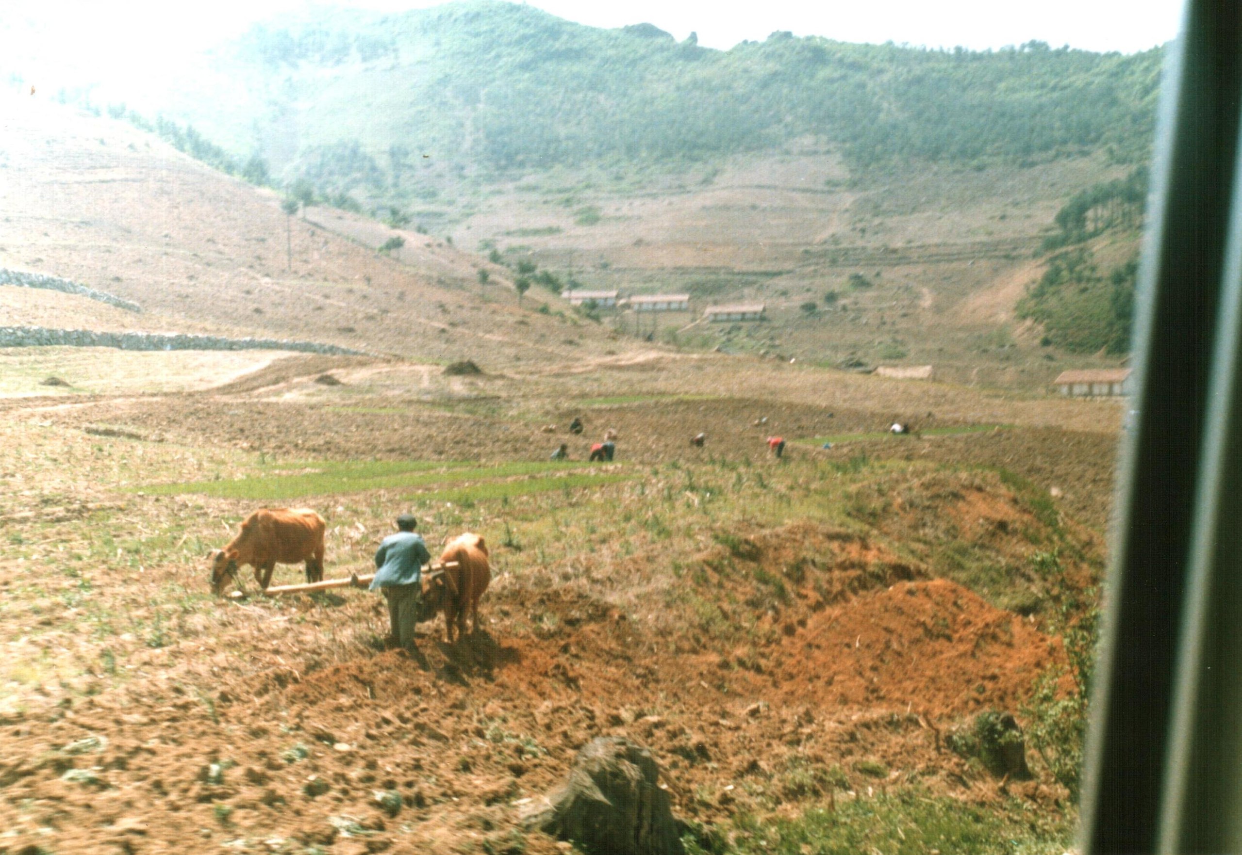 위키피디아의 "고난의 행군" 항목에 나오는 북한 사진. 산에 나무 하나 없이 극도의 개간을 추구한 정경은 조선시대의 연속이다.