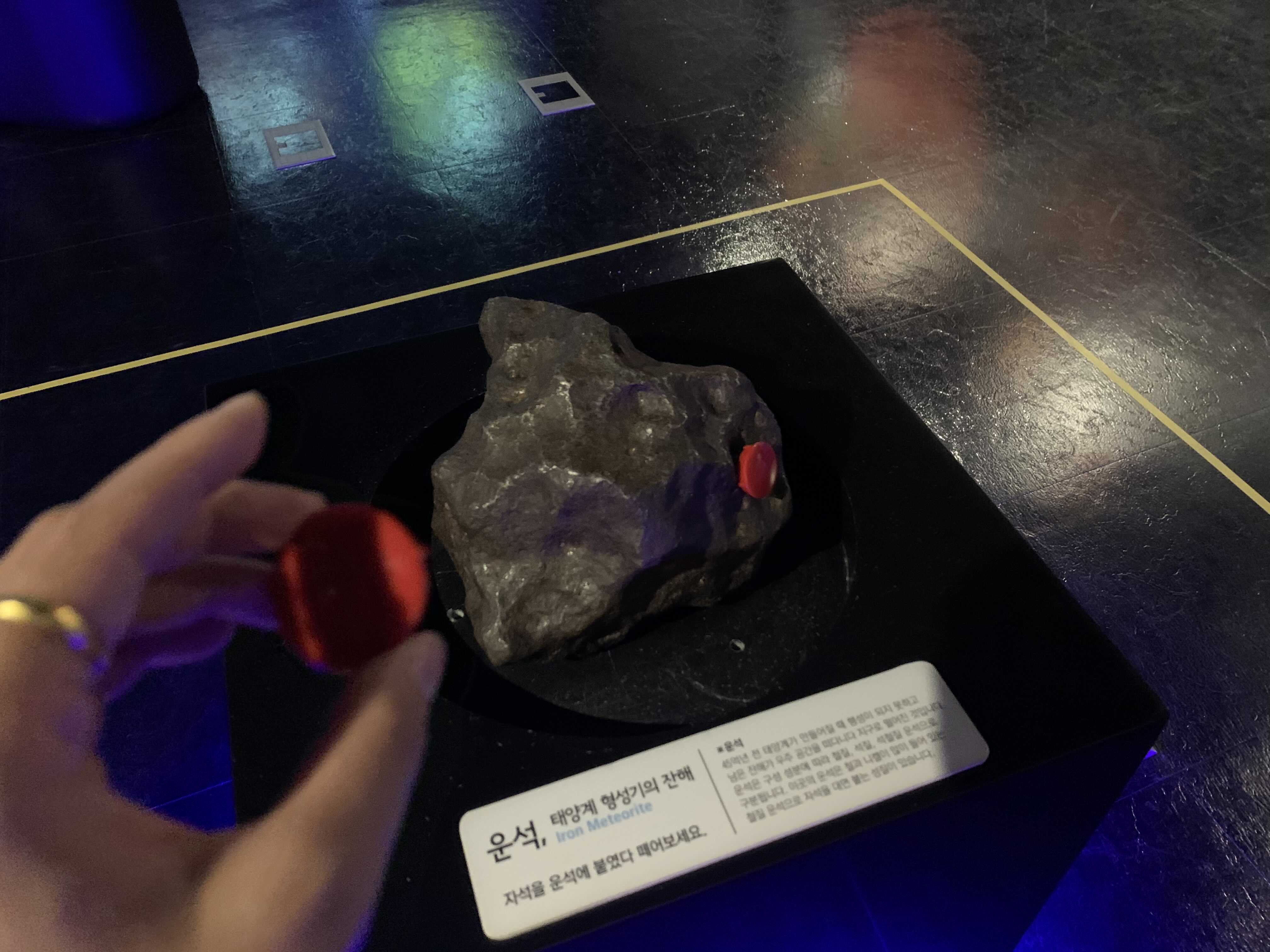저는 컨셉 잡는 걸 아주 좋아하기 때문에 이런 장치 하나하나가 아주 재밌습니다. 사실 유치해 보일 수 있지만 이렇게 입구에서 분위기를 잡아 주면, 전시를 보는 동안 정말 우주탐사대원의 마음으로 임할 수 있거든요!