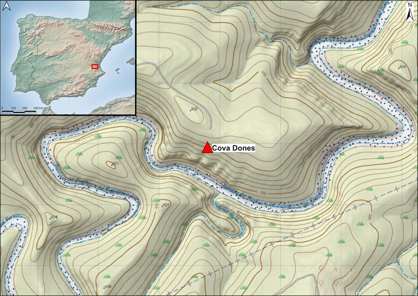 문제의 구석기시대 동굴은 이베리아 반도 동단 스페인 발렌시아 말레라스 Millares 라는 데 있는 코바 도네스 동굴 Cova Dones Cave 라는 데라
