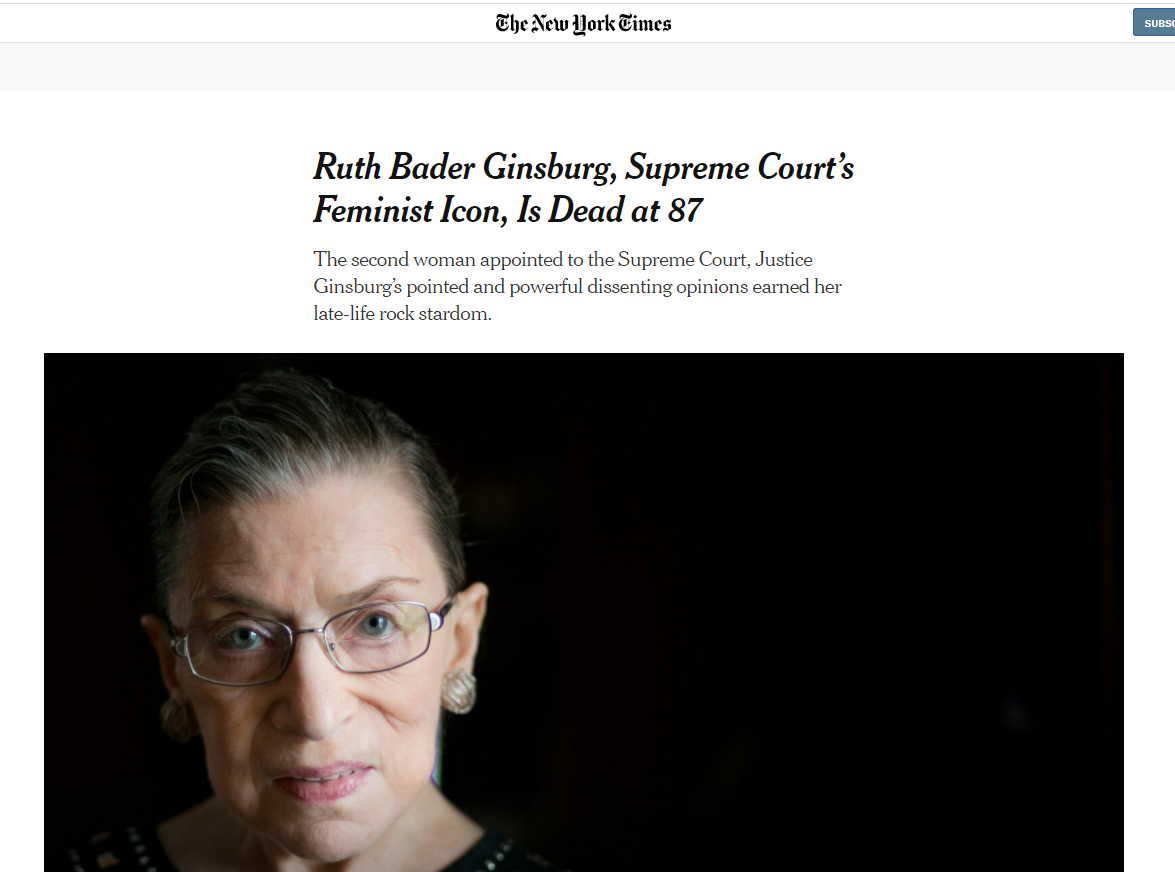 Ruth Bader Ginsburg, Supreme Court’s Feminist Icon, Is Dead at 87 The second woman appointed to the Supreme Court, Justice Ginsburg’s pointed and powerful dissenting opinions earned her late-life..