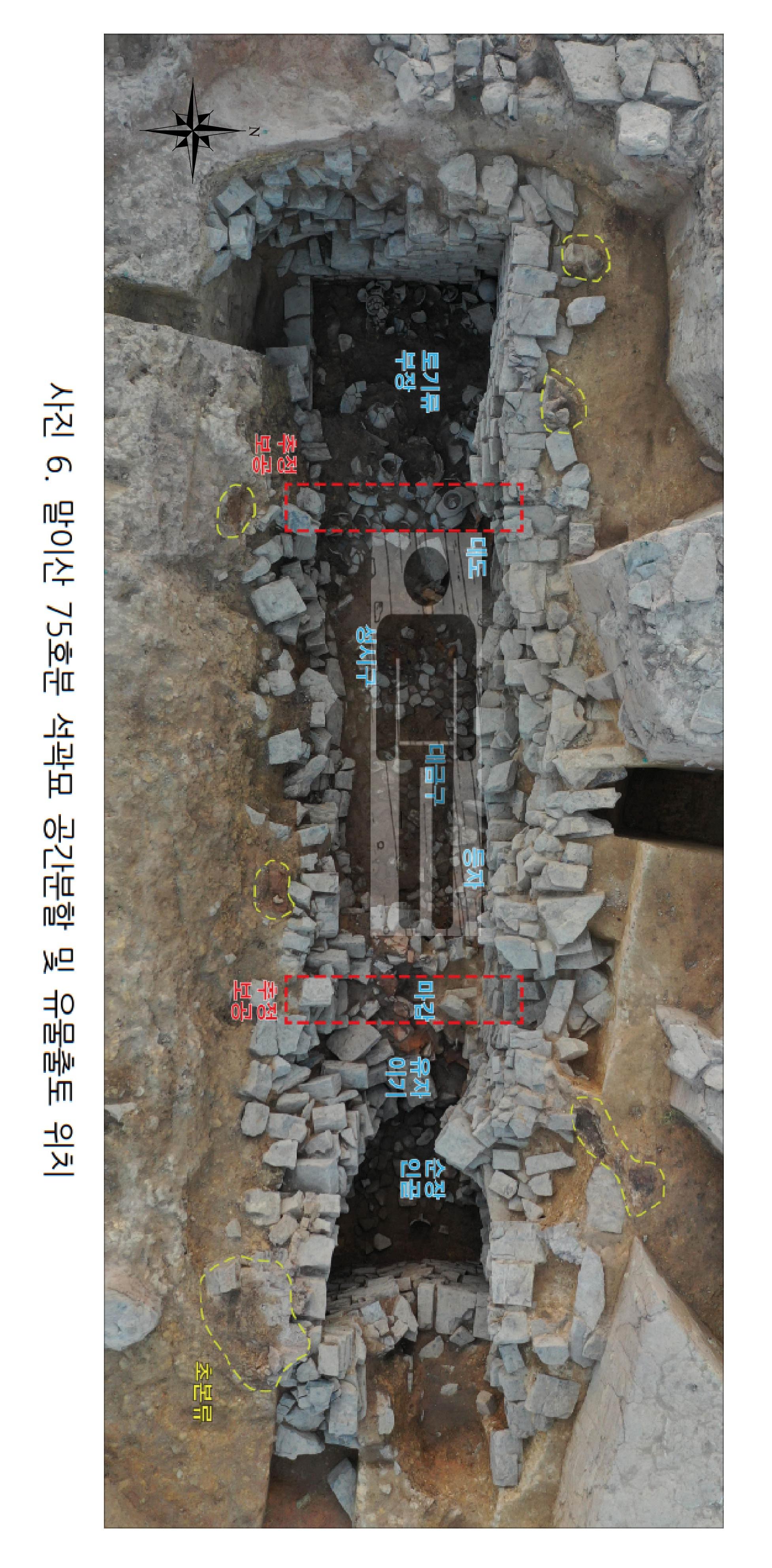 다만 다른 무덤 대부분이 장축을 남북으로 삼고 머리는 북쪽에 두는 데 반해 이 무덤은 동서방향으로 돌려놨다.