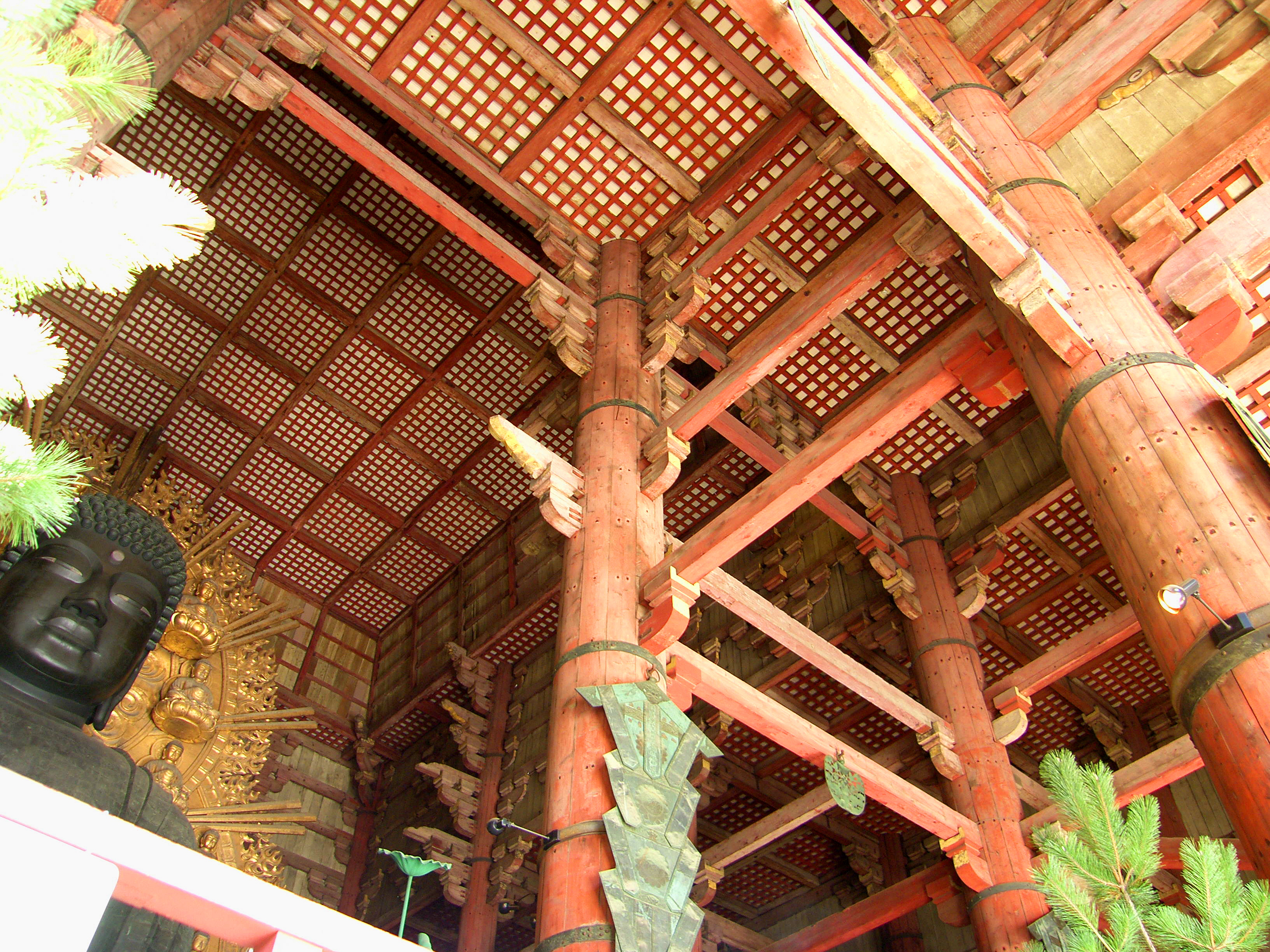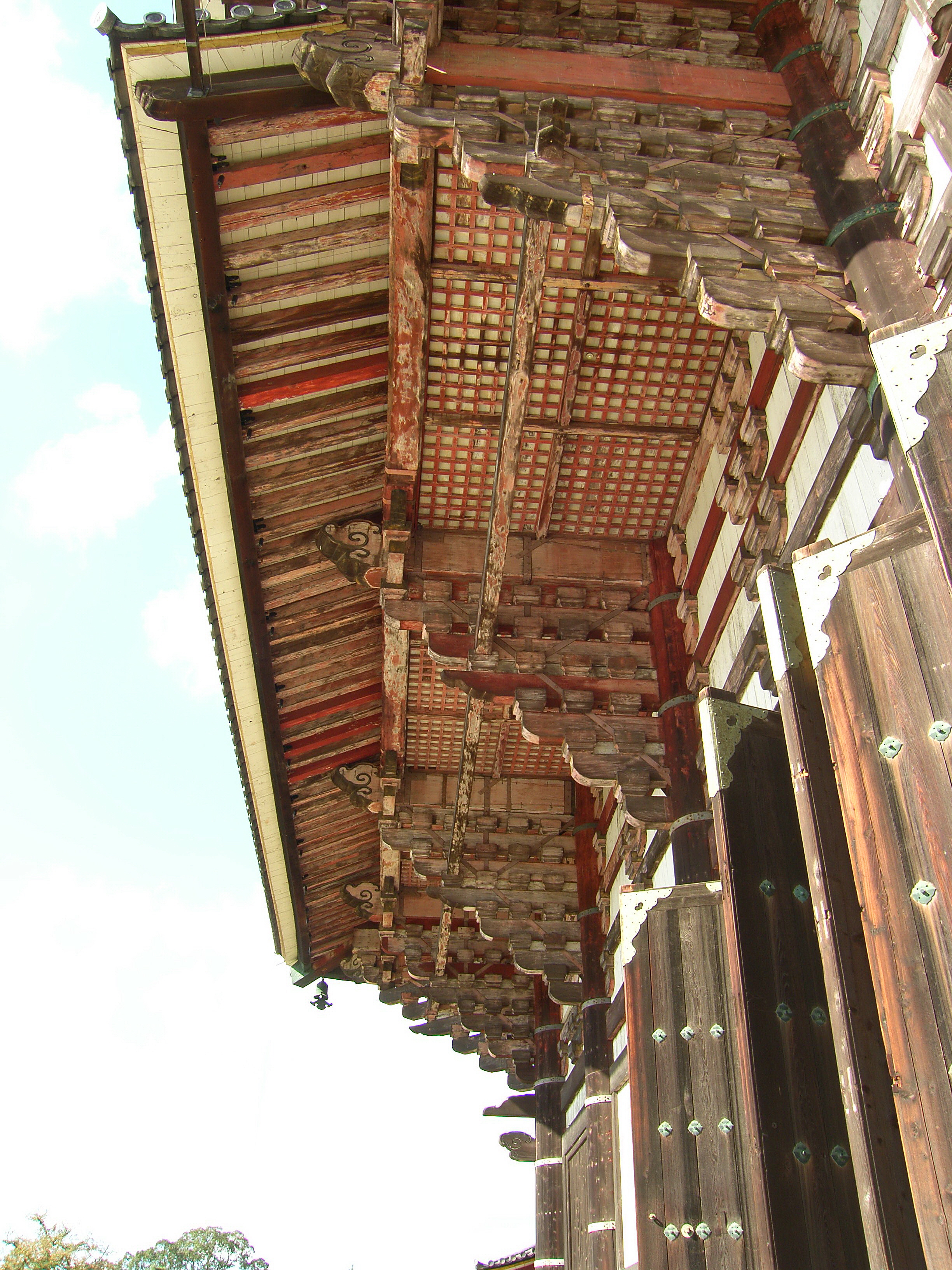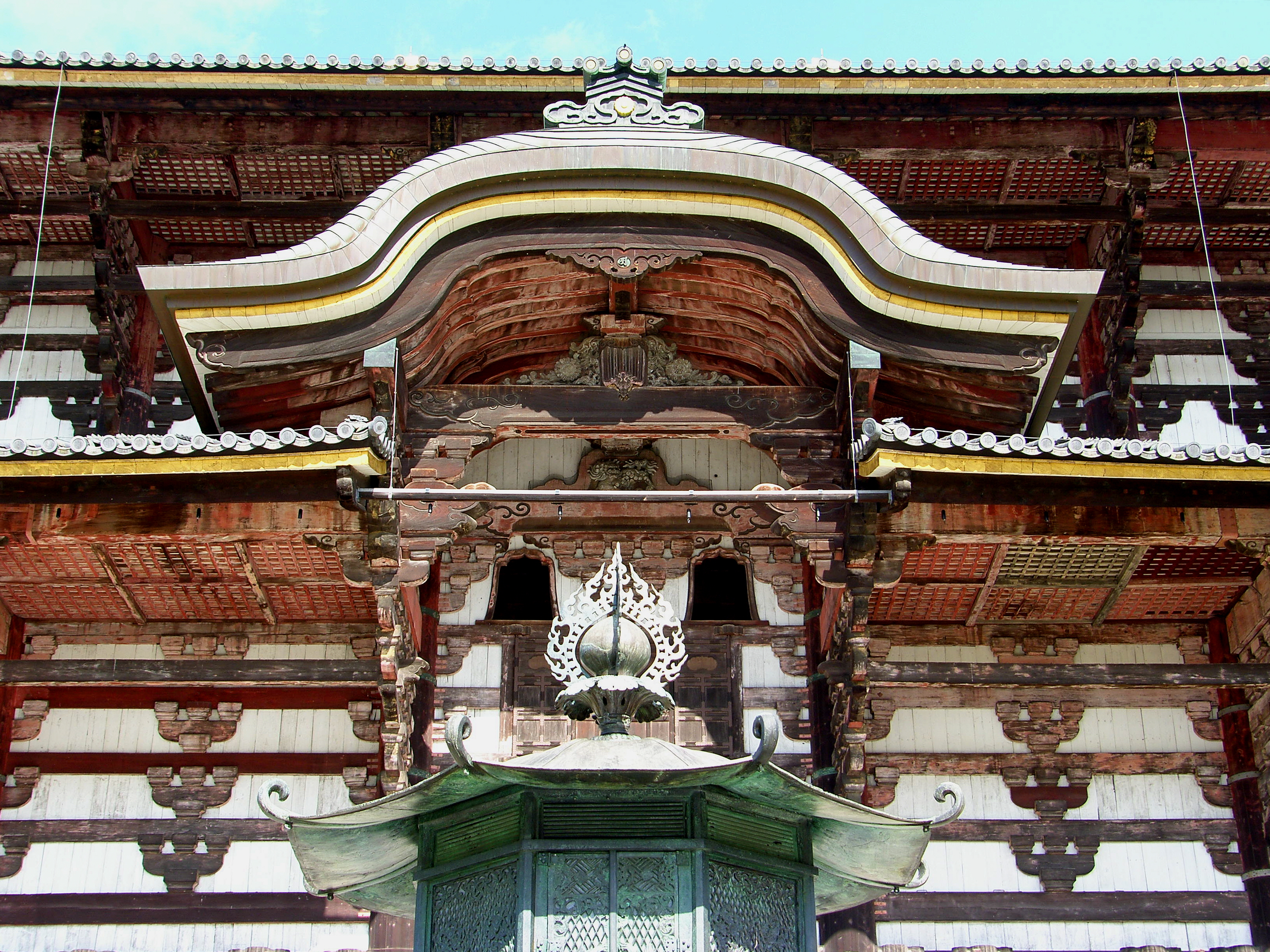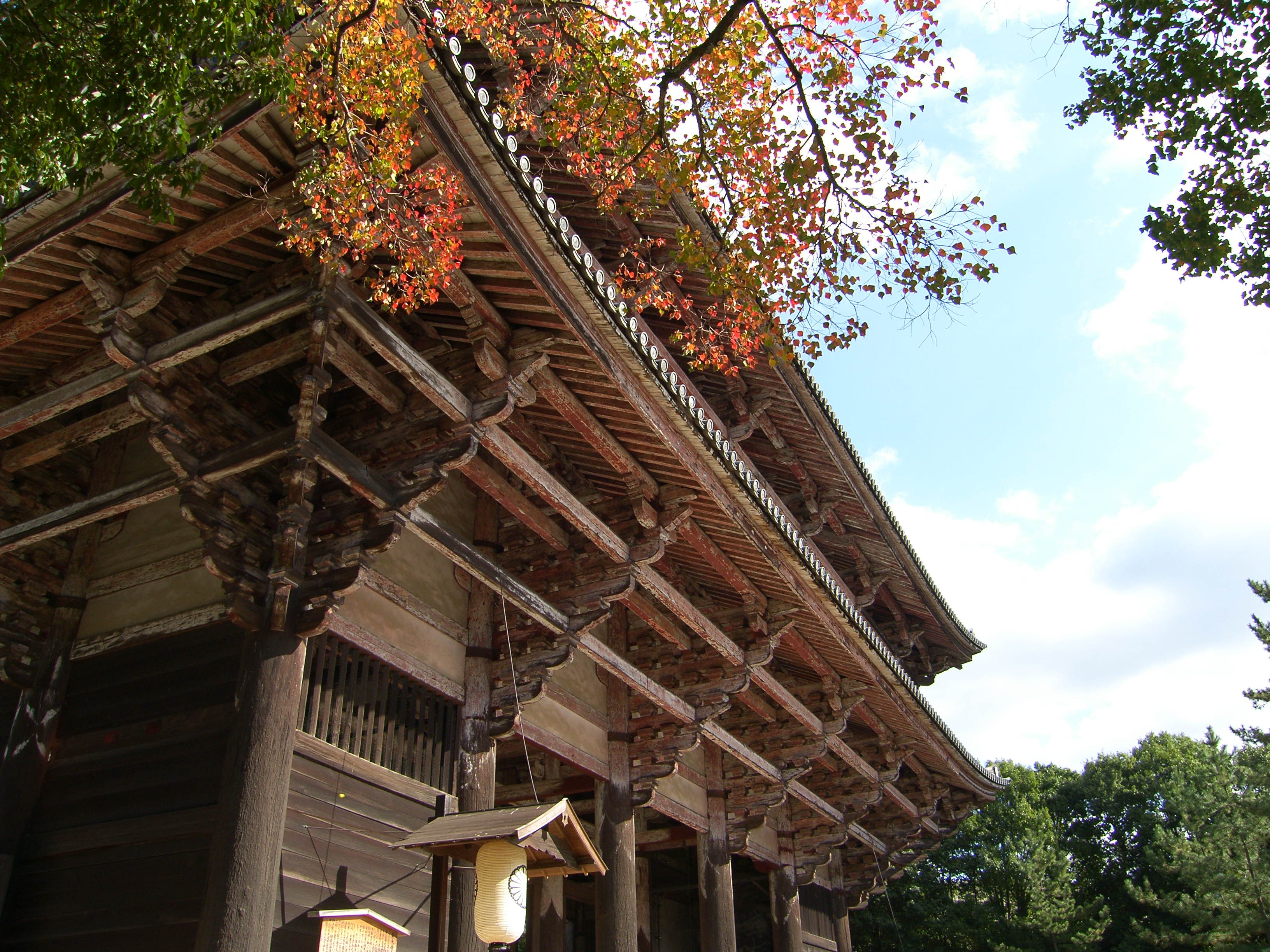 이 대불전 남쪽 마당에 금동 팔각 등롱 金銅八角燈籠이라 일컫는 등이 있습니다. 높이 4.64미터. 나중에 잦은 보수를 하기는 했지만 나라시대에 이 절을 지을 적에 만든 그것입니다. 사방에 문을 만들었고 그 문에는 구름을 노니는 4마리 사자를 새겼으며, 기타 각종 화려한 장식을 넣었으니 하나하나 다 살피면 좋습니다.