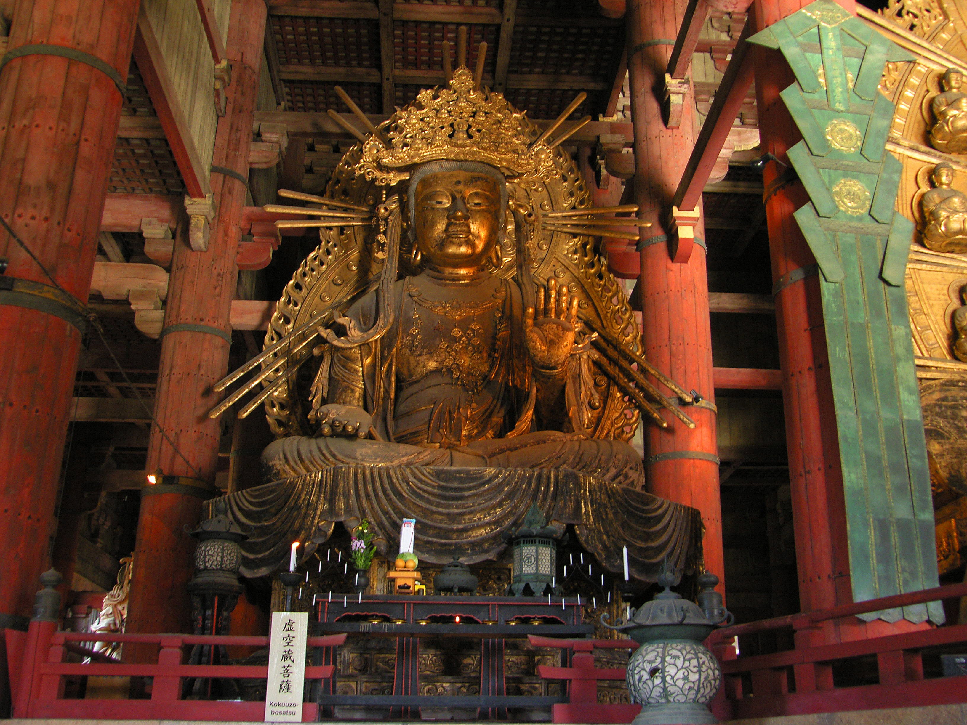 이 대불 부처님 협시는 앉은 모습의 여의륜관음如意輪観音과 같은 앉은 자세인 허공장보살虚空蔵菩薩입니다.