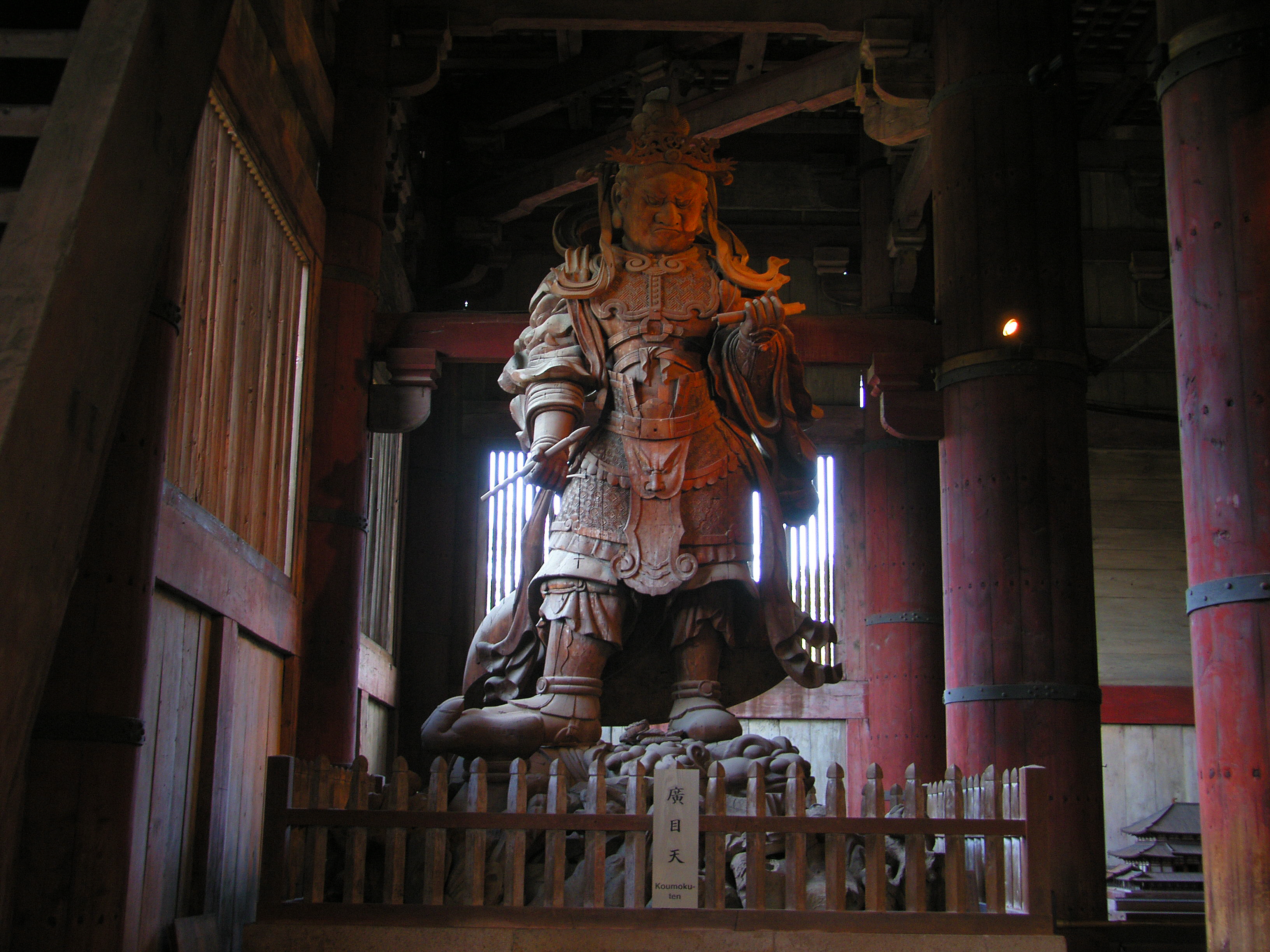 대불전 안 북서쪽과 북동쪽 귀퉁이에 사천왕四天王 중에서도 서쪽을 담당하는 광목천왕広目天像과 북쪽을 담당하는 다문천왕多聞天像을 모셔놨습니다. 사방을 수호한다는 뜻입니다.