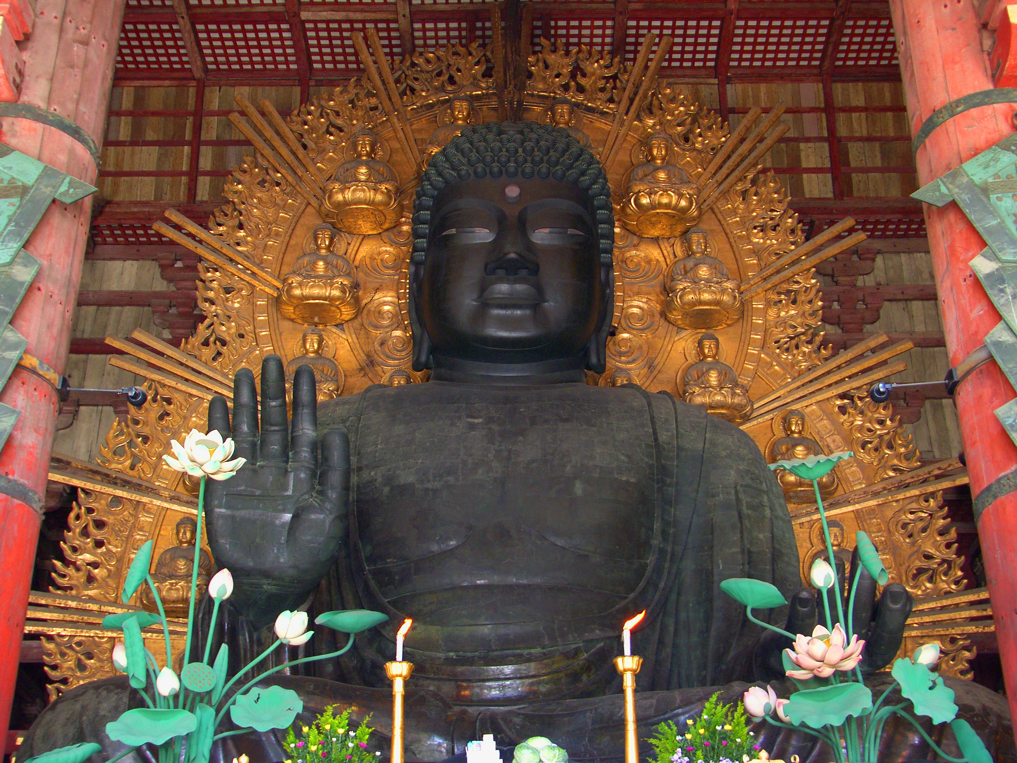 대불은 성무천황이 천평天平 15년, 743년에 만들라는 명령을 내려 만들기 시작해 천평승보天平勝宝 4년, 752년에 개안식을 함으로써 완공을 보게 됩니다. 이후 화재와 전란에 대불전이 파괴되고 대불 역시 피해를 보기는 했지만 그 모습은 유지한 채 현재에 이릅니다.