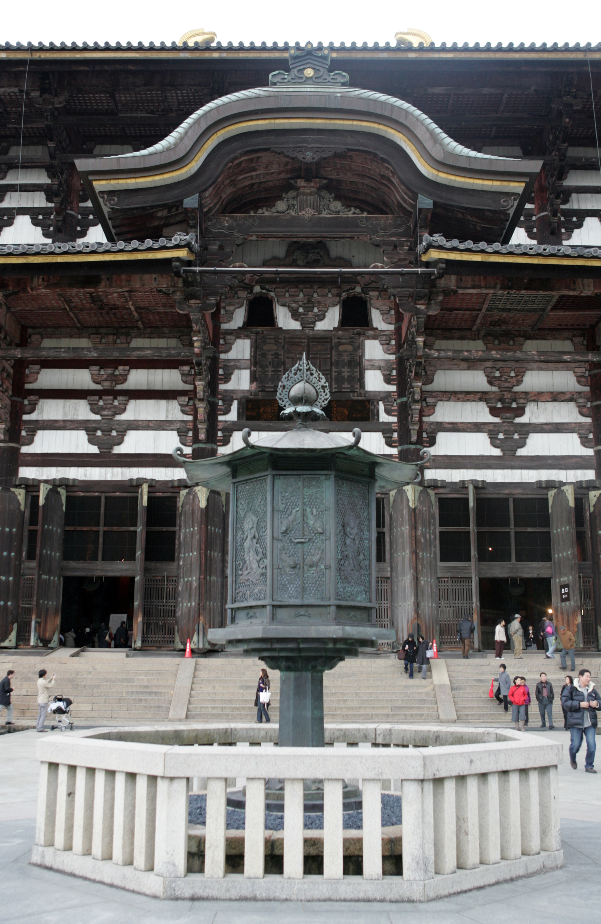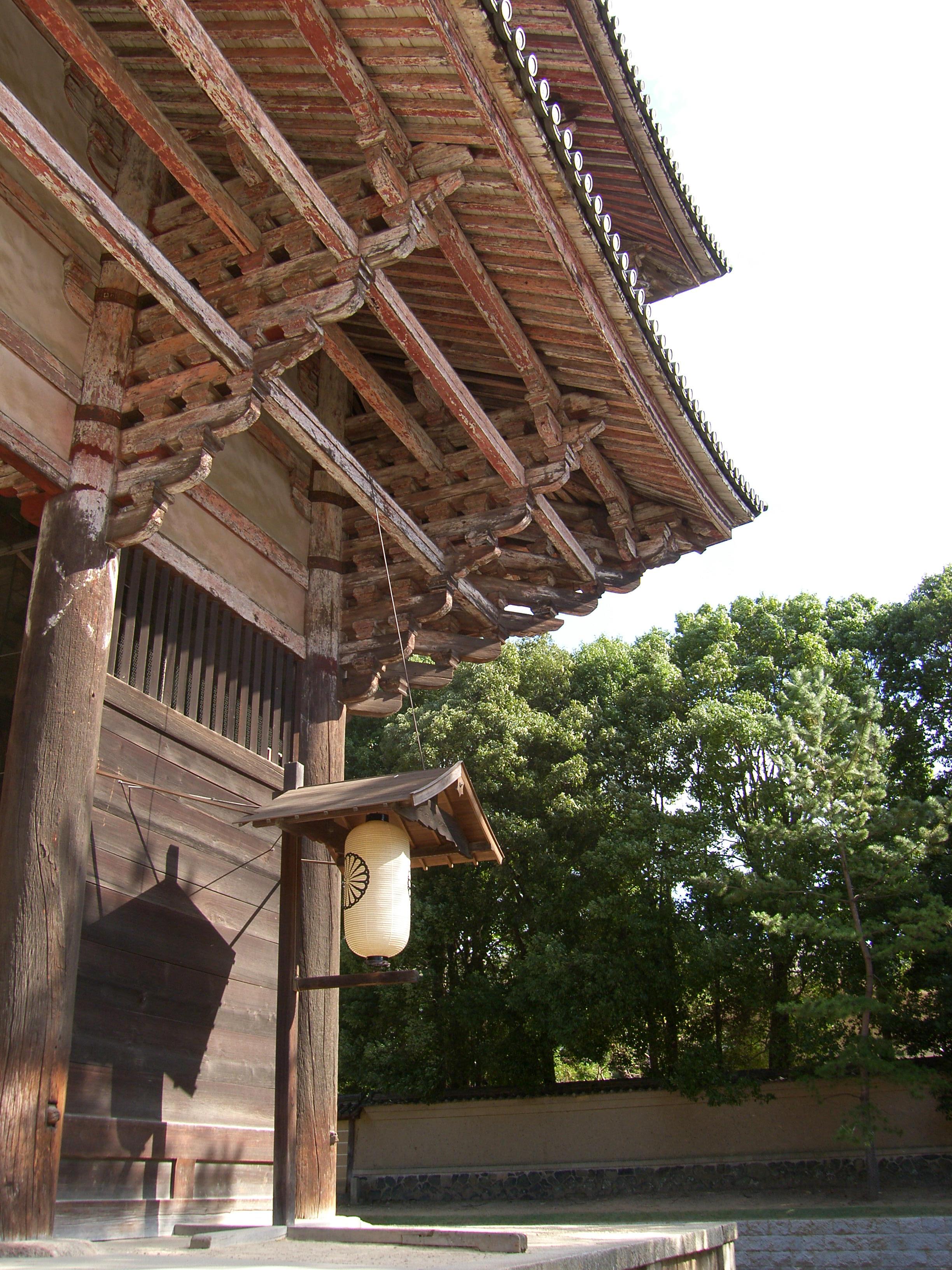 이 대불전 남쪽 마당에 금동 팔각 등롱 金銅八角燈籠이라 일컫는 등이 있습니다. 높이 4.64미터. 나중에 잦은 보수를 하기는 했지만 나라시대에 이 절을 지을 적에 만든 그것입니다. 사방에 문을 만들었고 그 문에는 구름을 노니는 4마리 사자를 새겼으며, 기타 각종 화려한 장식을 넣었으니 하나하나 다 살피면 좋습니다.